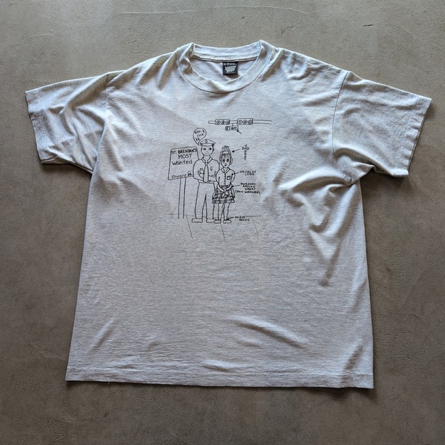 "1990s Vintage Grey Color Graphic Design S/S T-shirt" 1990年代のグレーカラーのTシャツです 手書き風のイラストが目を引くデザインの1枚です バックに描かれている「ST. BRENDAN FALL FOLLIES」は秋のイベントを指しているのではないかと思われます ゆる〜く、ユーモアのあるデザインで、サラッと1枚できてもなんだかサマになりそうなTシャツですね Made in USA 袖裾シングルステッチ 《ner上越店》 こちらはner上越店の取り扱い商品となります 下北沢店の商品と同時に注文された場合、別々の発送となります 送料は変わりありませんのでご安心ください。 表記サイズ:XL 実寸サイズ 肩幅:約58cm 身幅:約62cm 着丈:約69cm ※多少の誤差はご了承ください 商品状態:B A:新品または状態良好 B:使用感はあるが目立ったダメージ等は無く、商品の雰囲気を損なわない程度の汚れや穴のみ見られる(通常の古着) C:使用感が強い、大きなダメージや汚れ等がある 状態の感じ方には個人差がある場合がございますので、あくまで参考程度にお考えください。 お客様がご利用の画面の設定や特性により、実際の商品と比較し色味に若干の誤差が生じる場合があります。予めご了承下さい。 ご購入前にショップ情報(ABOUT)に掲載しているご注文ガイドを必ずお読みください。 当店の商品は一部を除き全て古着となっており、返品交換はお断りさせて頂きます。 古着特有のダメージ、汚れ等ある場合がございますが、それらを含めた商品価値として判断させていただいております。 ノークレーム・ノーリターンでお願い致します。 出来るだけ迅速に連動させておりますが、店頭での販売を優先させていただくため購入後に在庫が無い場合があり、取引をキャンセルさせていただく場合がありますのでご了承ください。