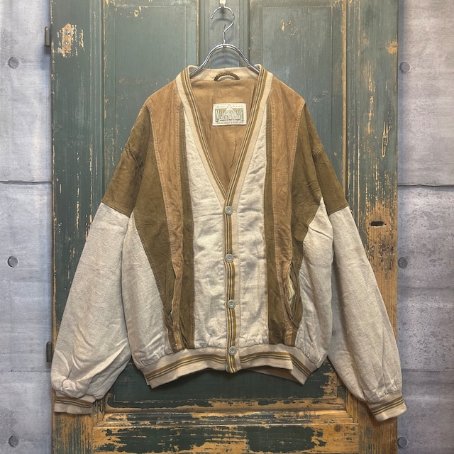 "Swicthing design suede cardigan jacket"