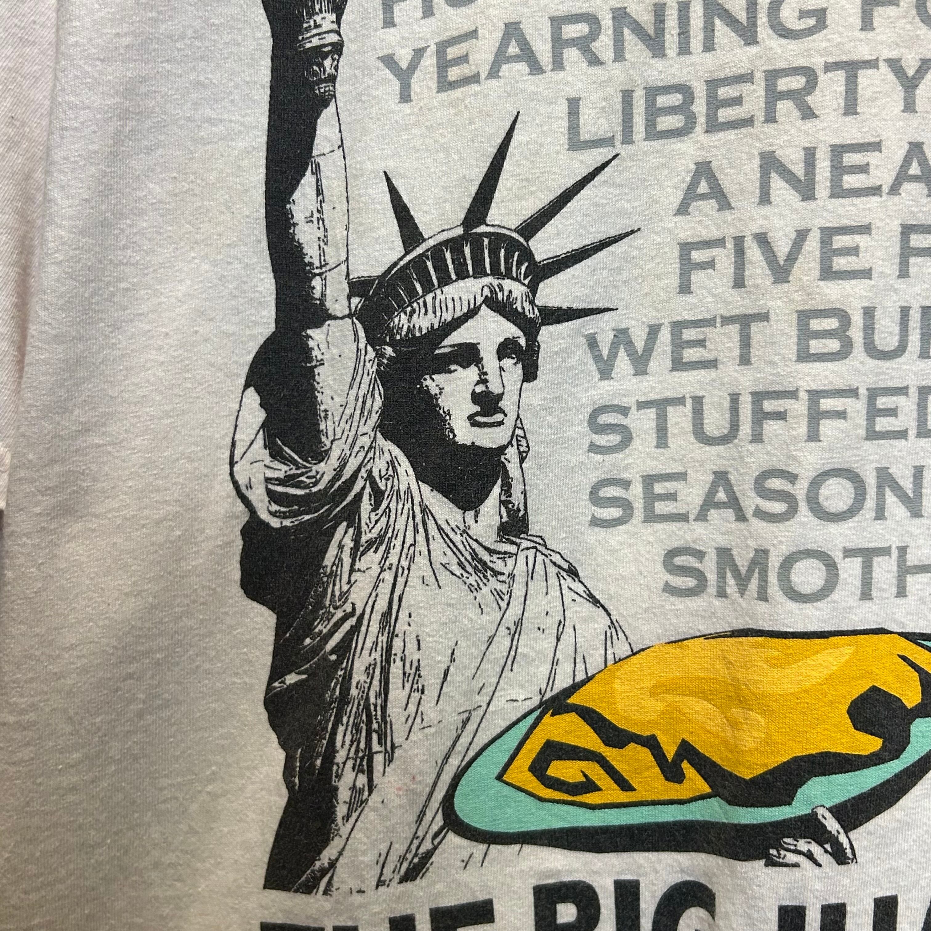 文を翻訳すると、「5ポンド近いウェット・ブリトーに味付けした牛肉を詰め、チーズをたっぷりかけたものを食べる自由を渇望している、飢えた大衆をわれわれに与えよ」だそうです。