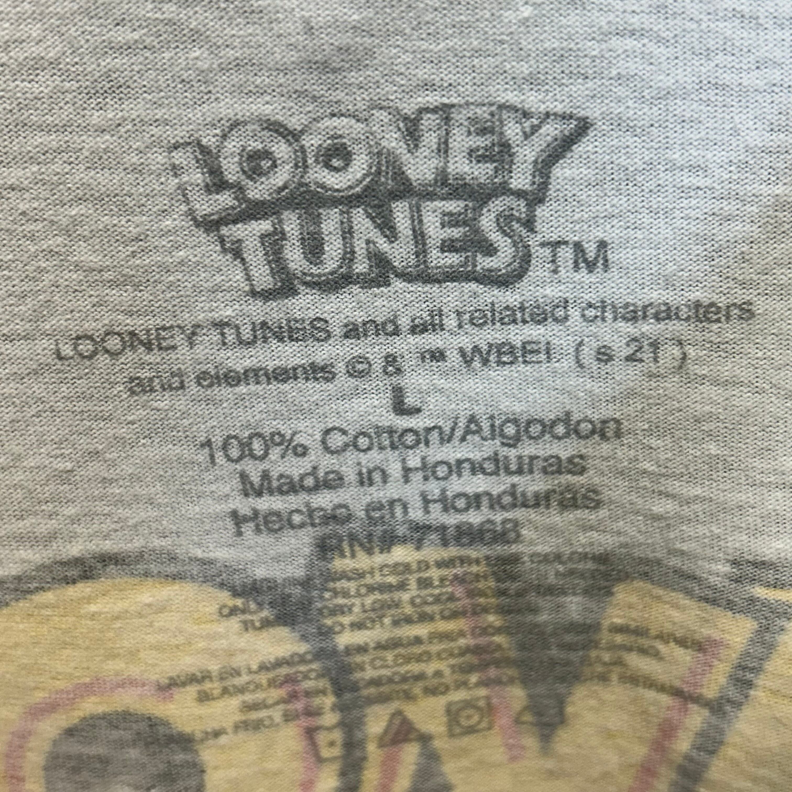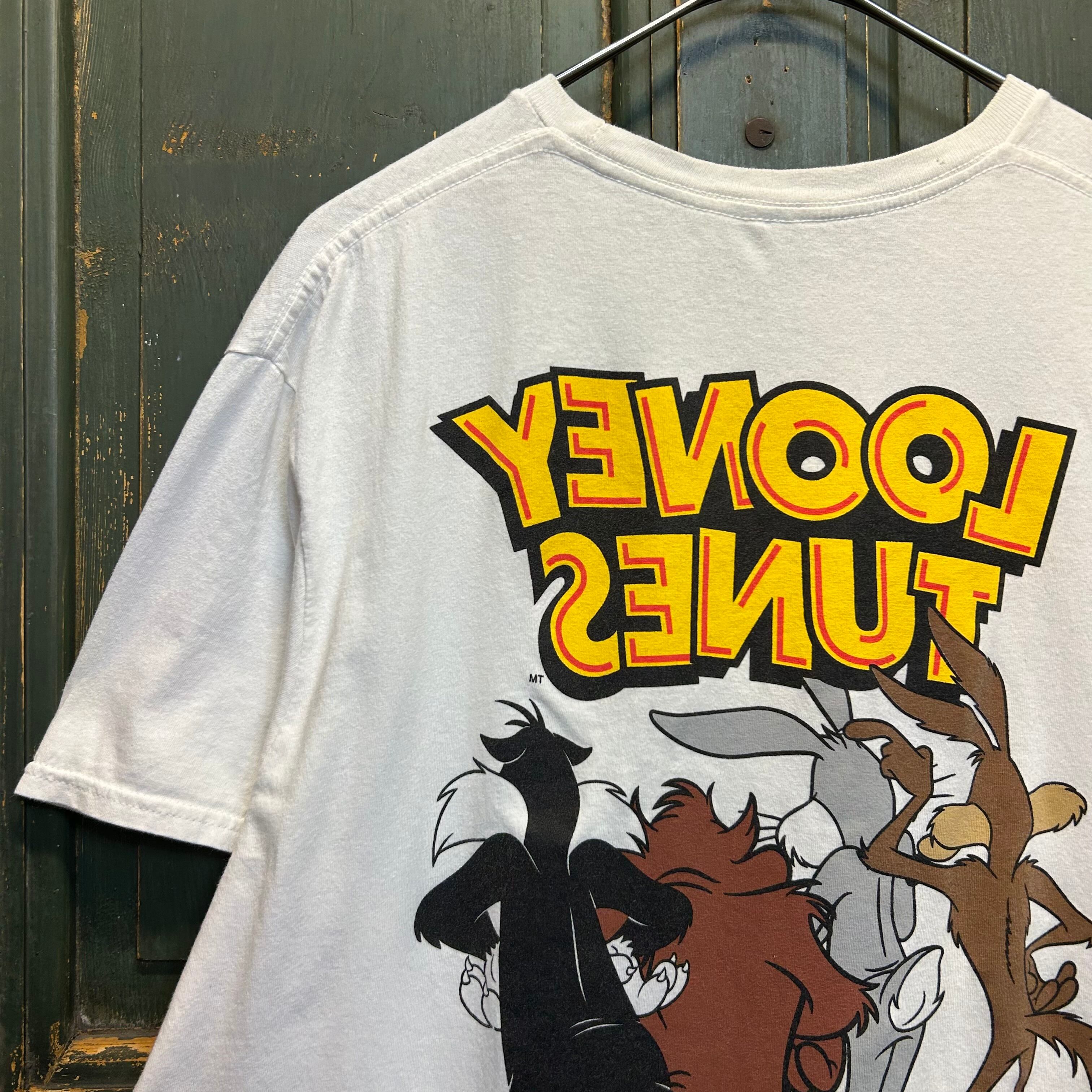 ワーナー・ブラザースのアニメーションシリーズ「ルーニー・テューンズ」のキャラクターがプリントされたTシャツです。
