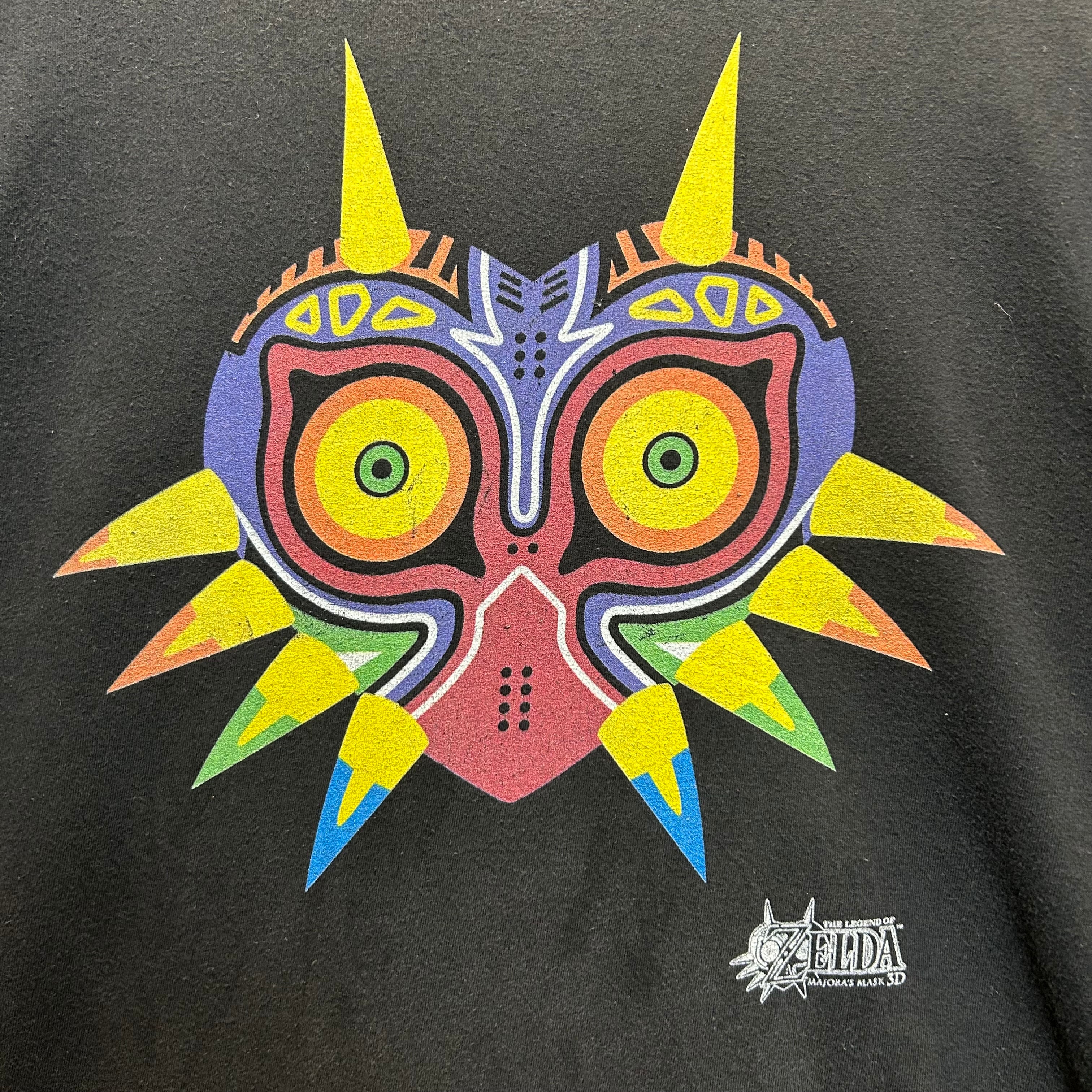 ゼルダの伝説ムジュラの仮面3Dのムジュラの仮面がフロントにプリントされたTシャツです。