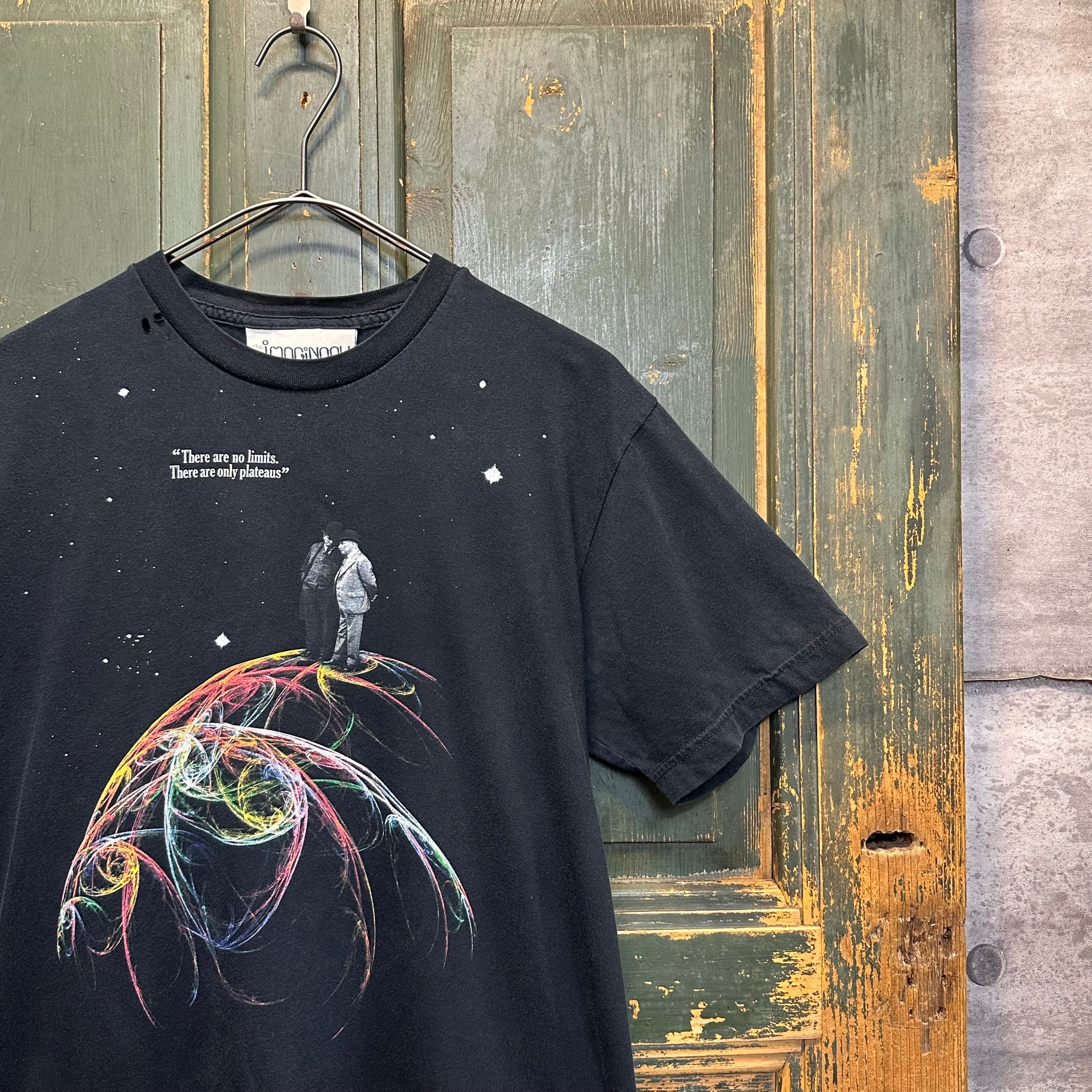星空と光の軌跡、探求者の姿が描かれたTシャツです。幻想的でどこかストーリーを感じさせるデザインが印象的です。アートやグラフィック好きの方にもおすすめの一枚です。