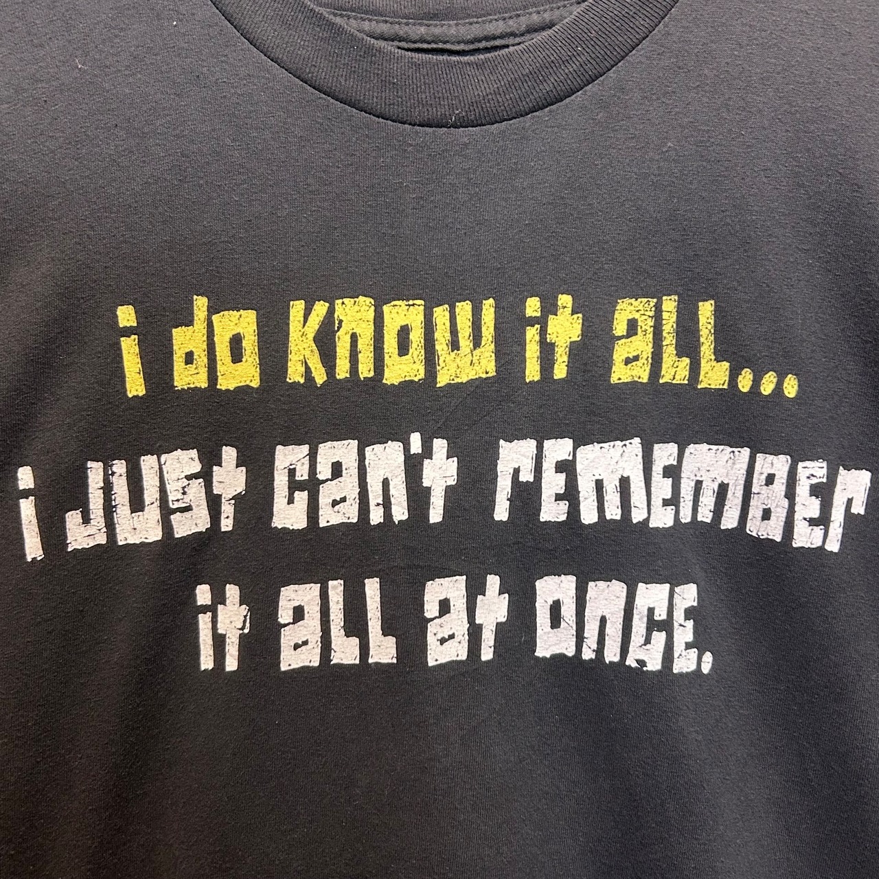 「i do know it all... i just can't remember it all at once.」とプリントされたTシャツです。