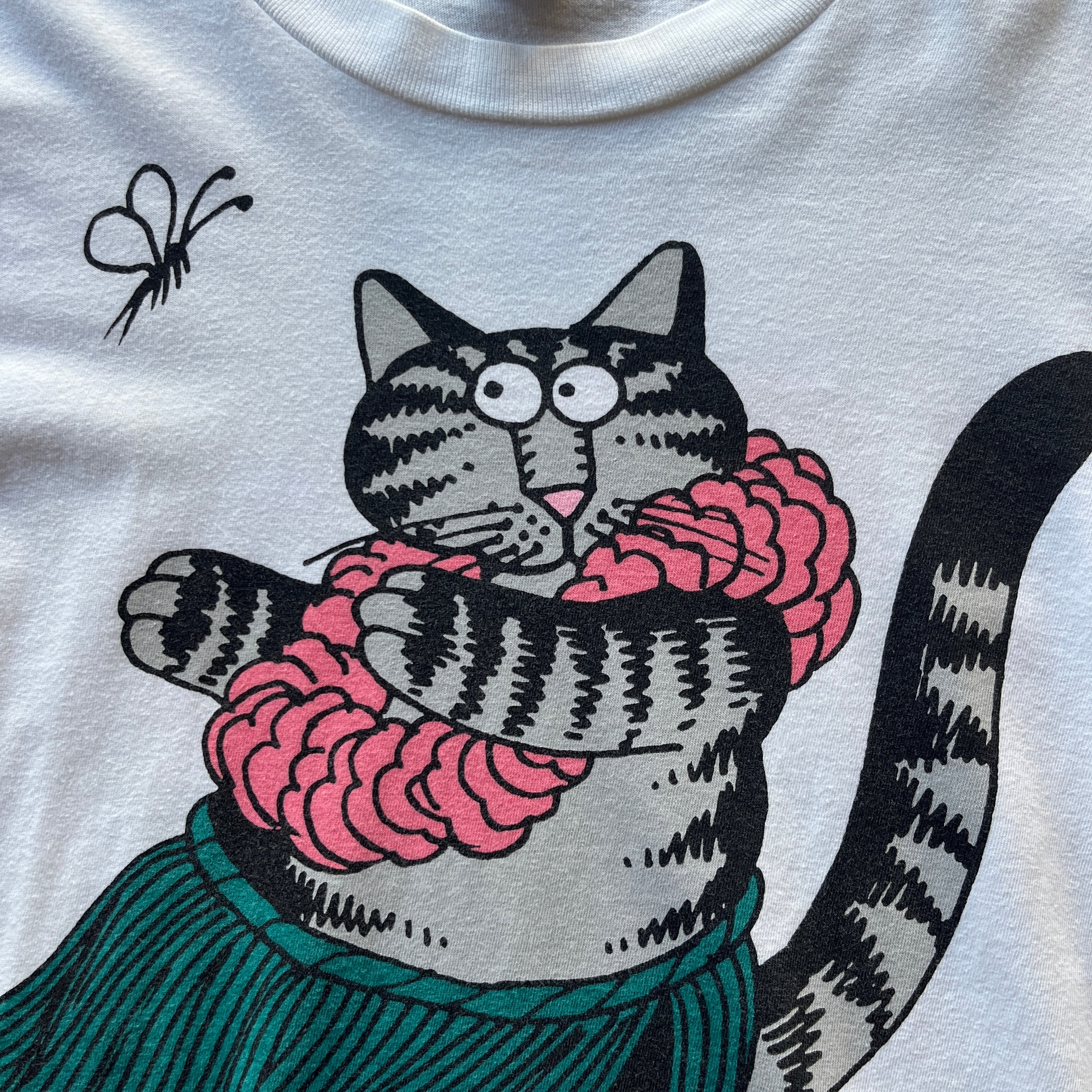 "1990s Vintage Kliban cat bothside print T-shirt"