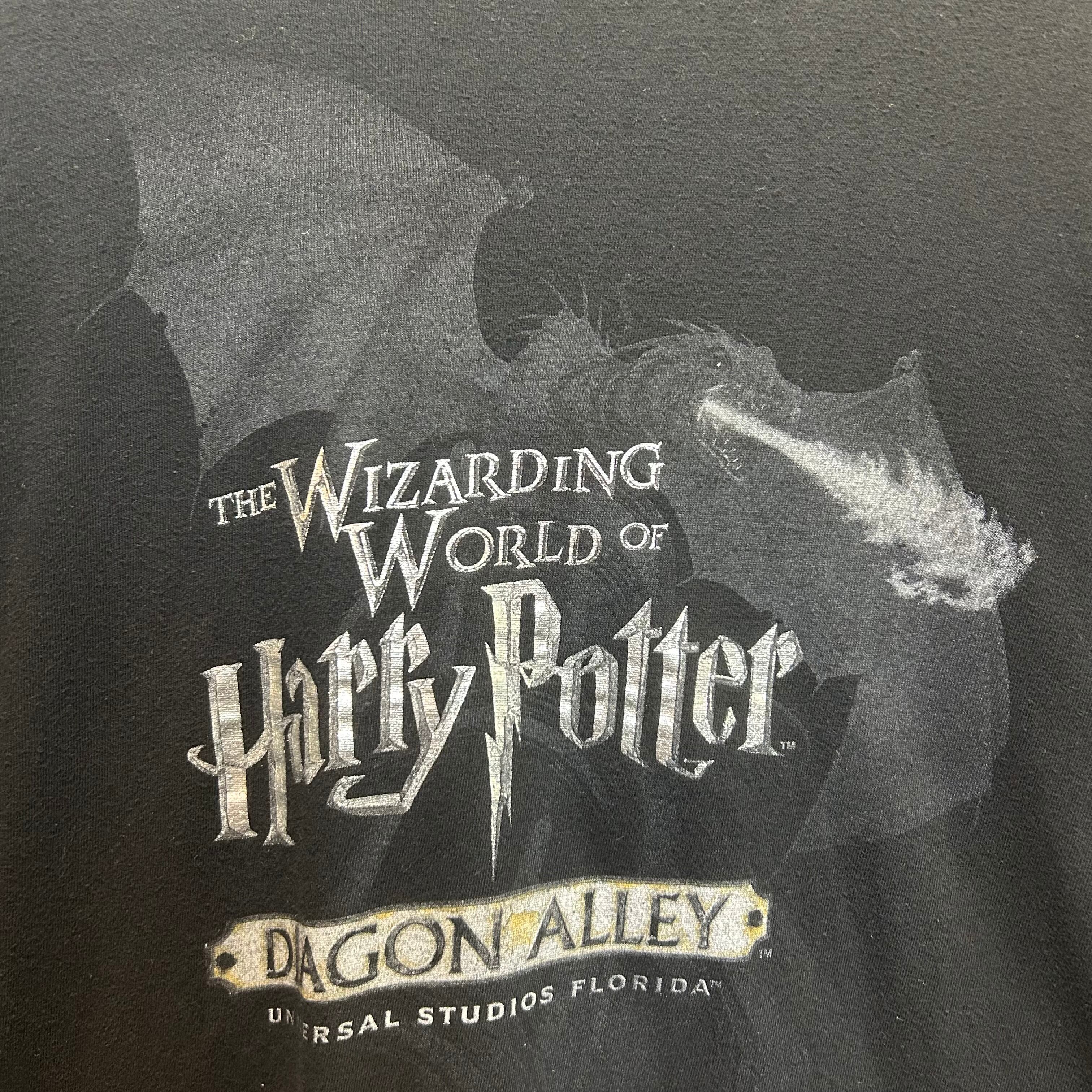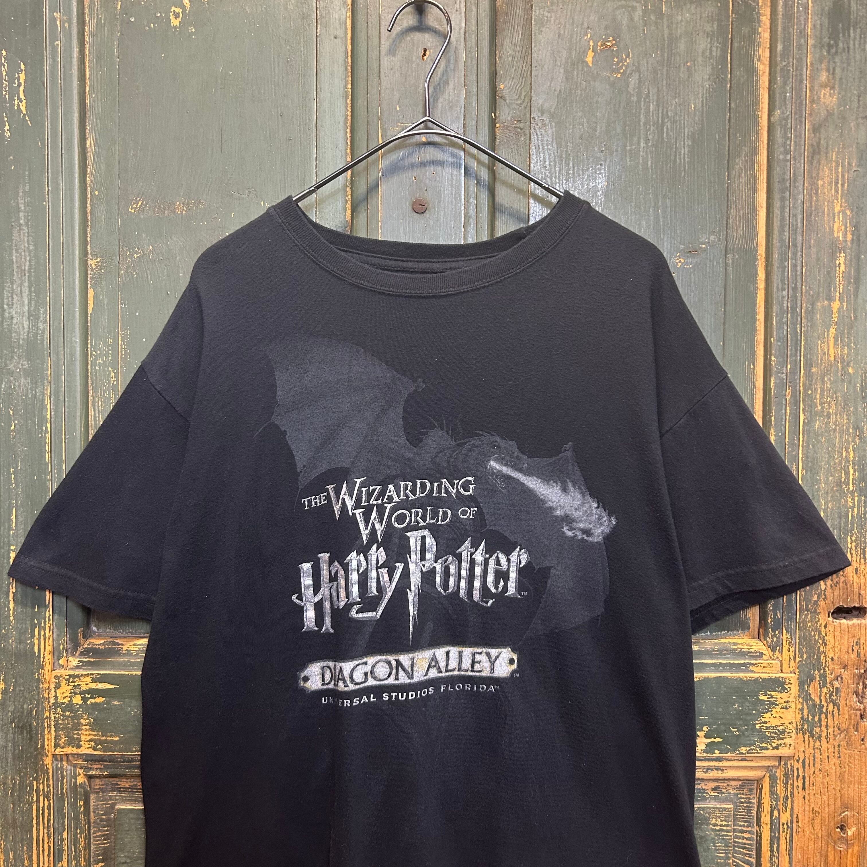 背景にはドラゴンがダークトーンでプリントされていて、ハリーポッターのTシャツの中でも特にクールな印象の一着。