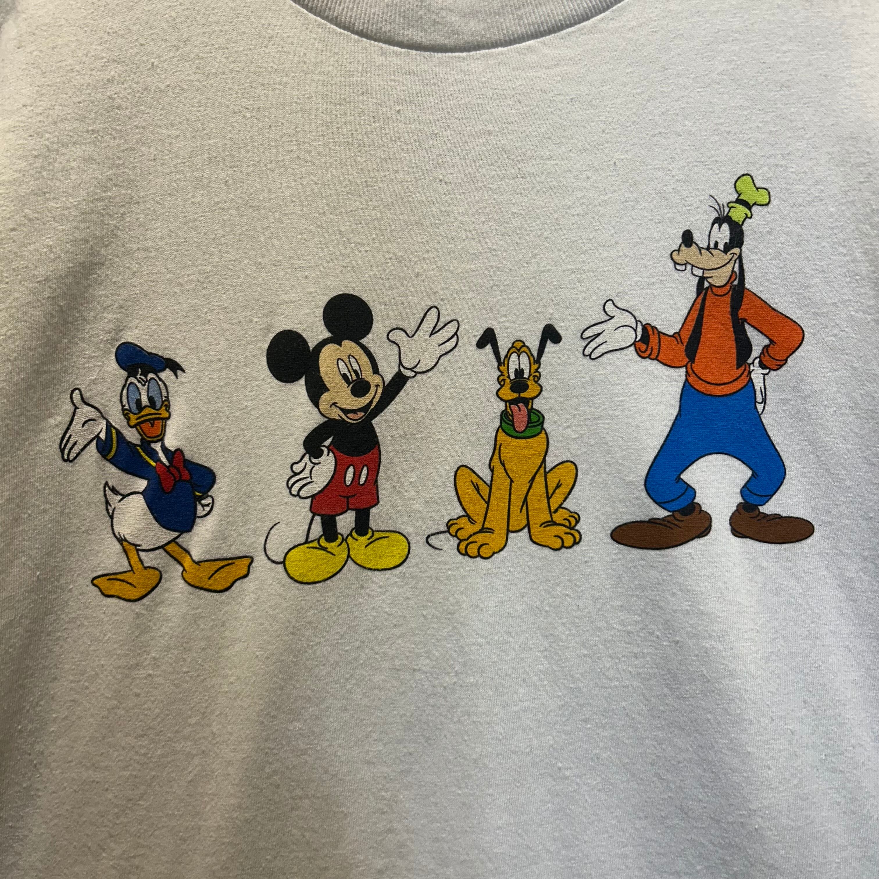 ドナルドダック、ミッキーマウス、プルート、グーフィがプリントされたTシャツです。