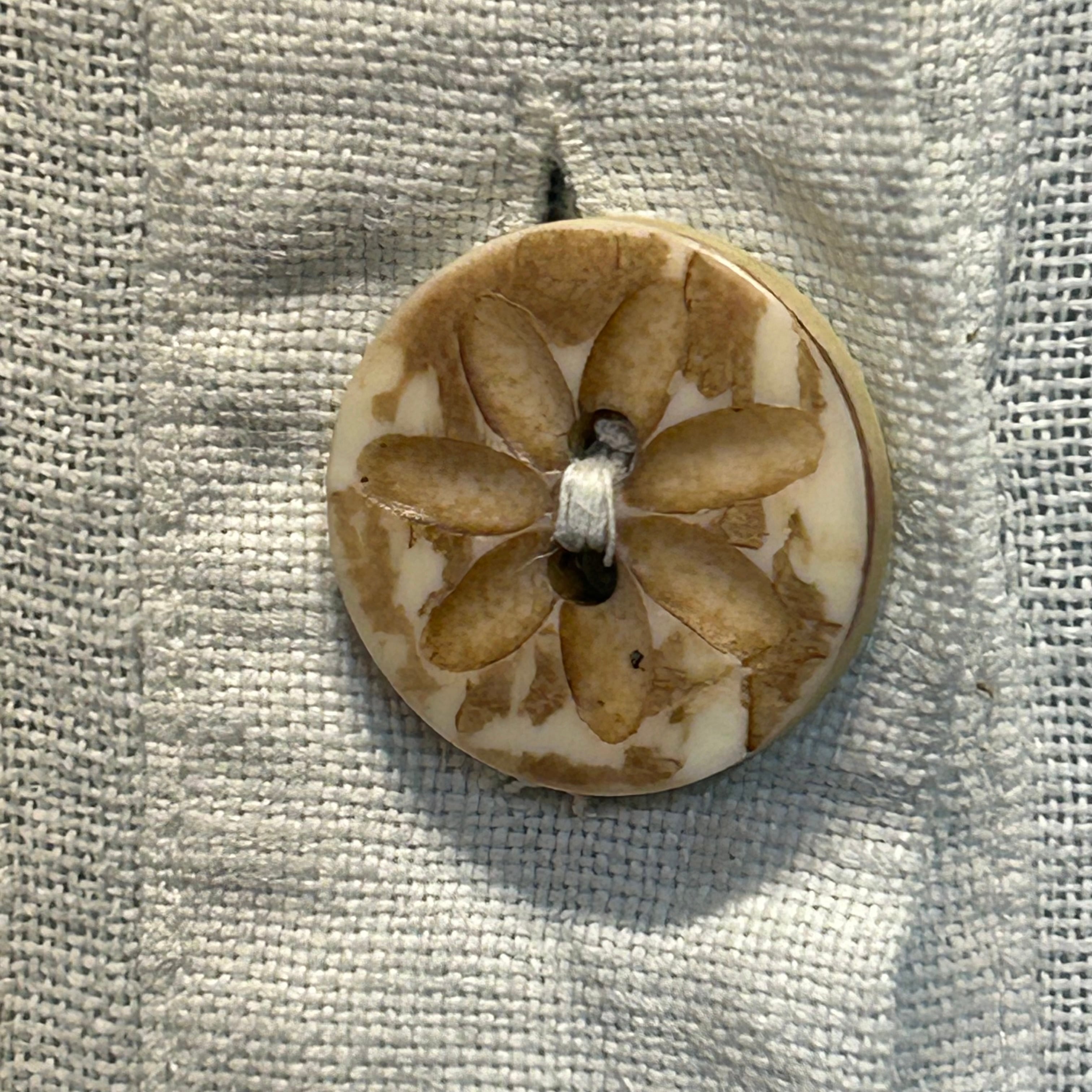 刺繍も同色なので一見シンプルに見えますが、大ぶりのボタンや切り替えデザインなど、単調な着こなしになりずらい一着です。