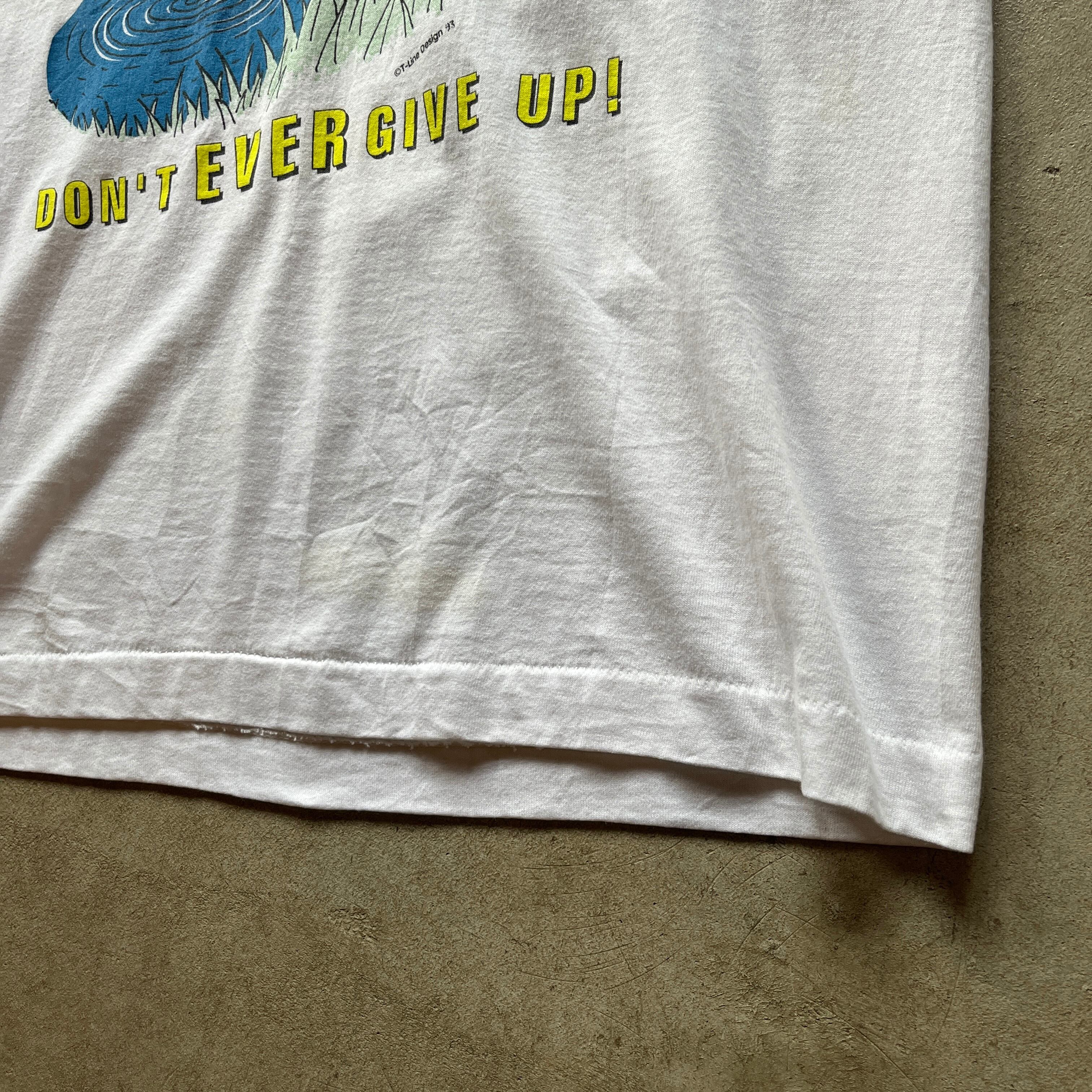 "1990s Vintage Don't ever give up! joke T-shirt"
