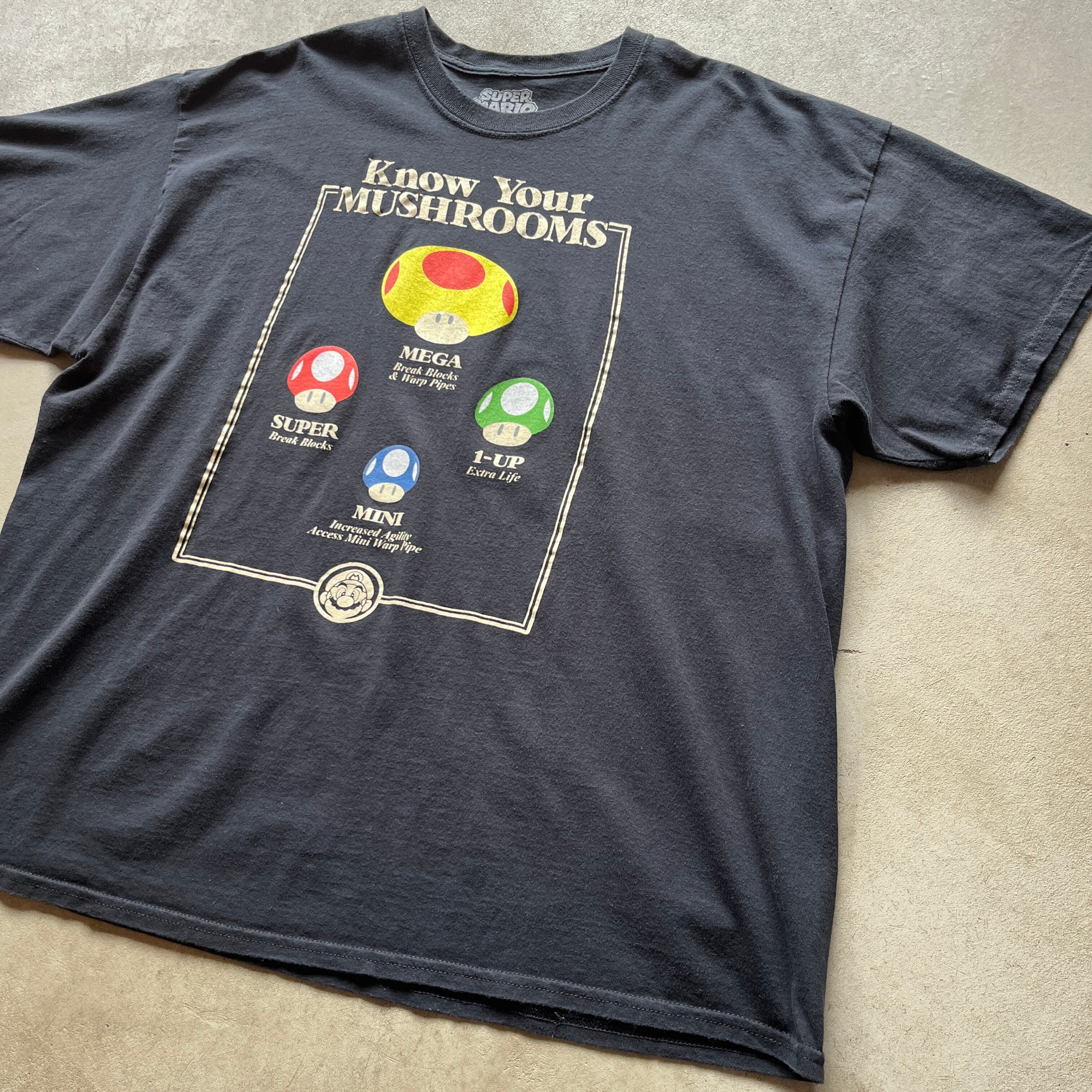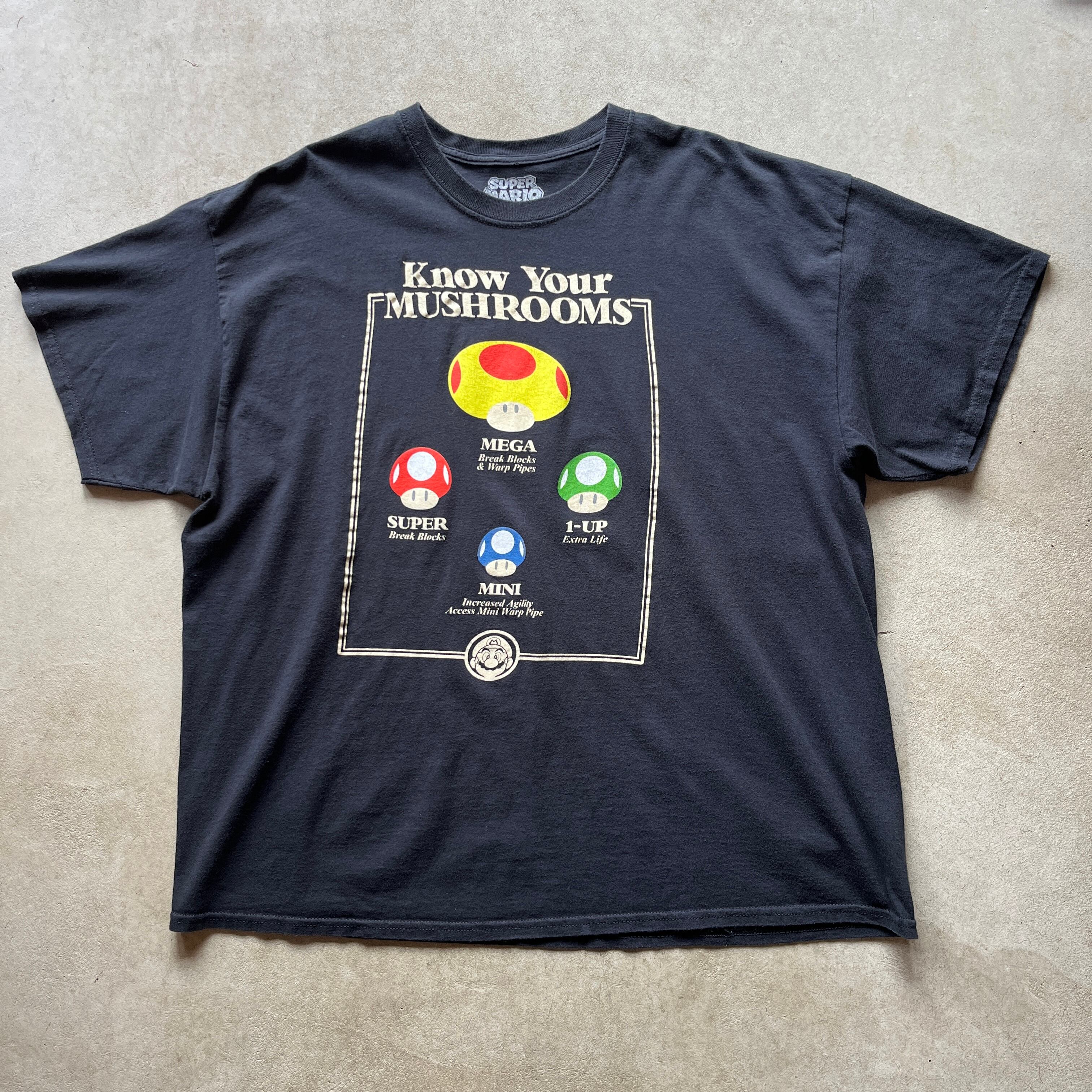 スーパーマリオのキノコの種類が描かれたTシャツです