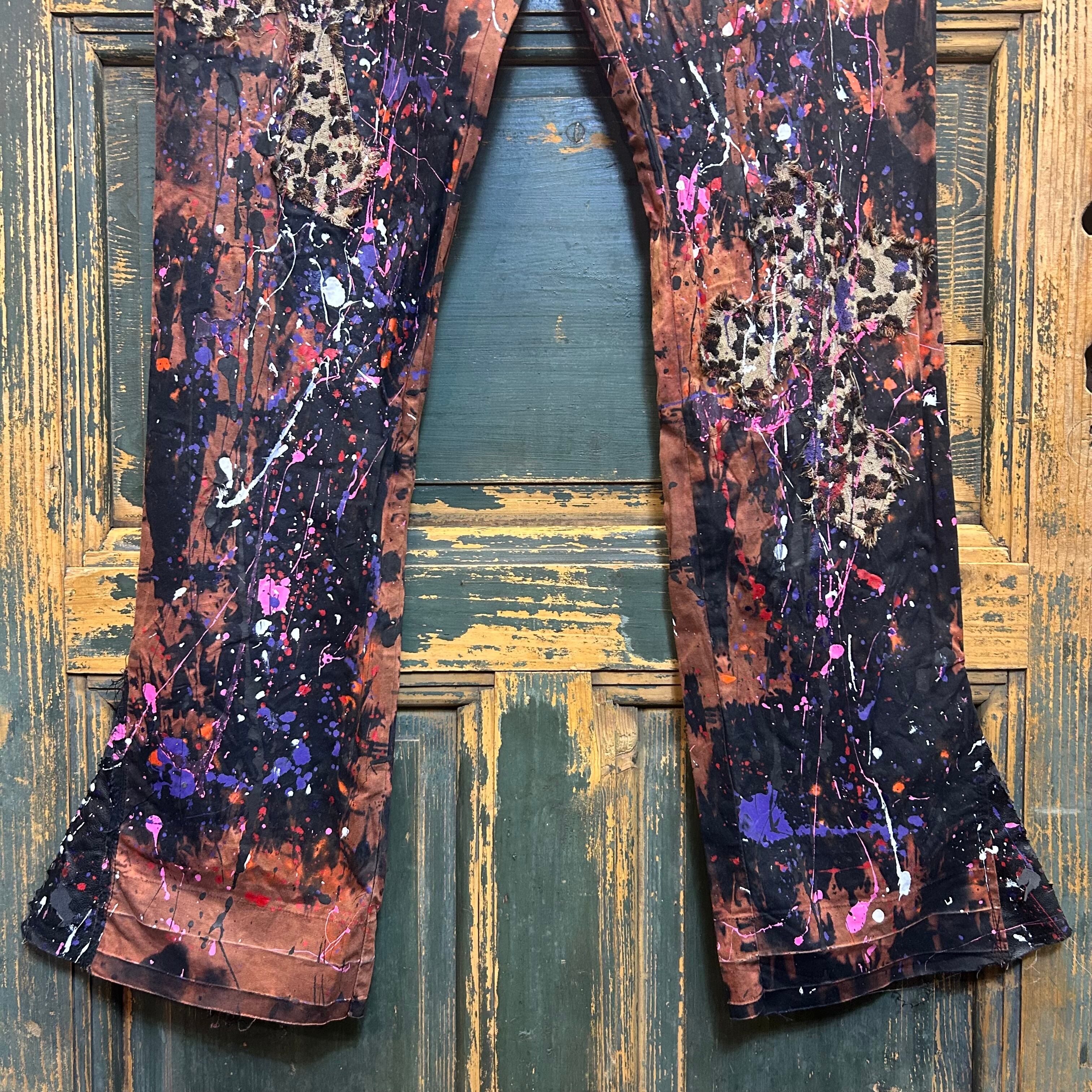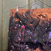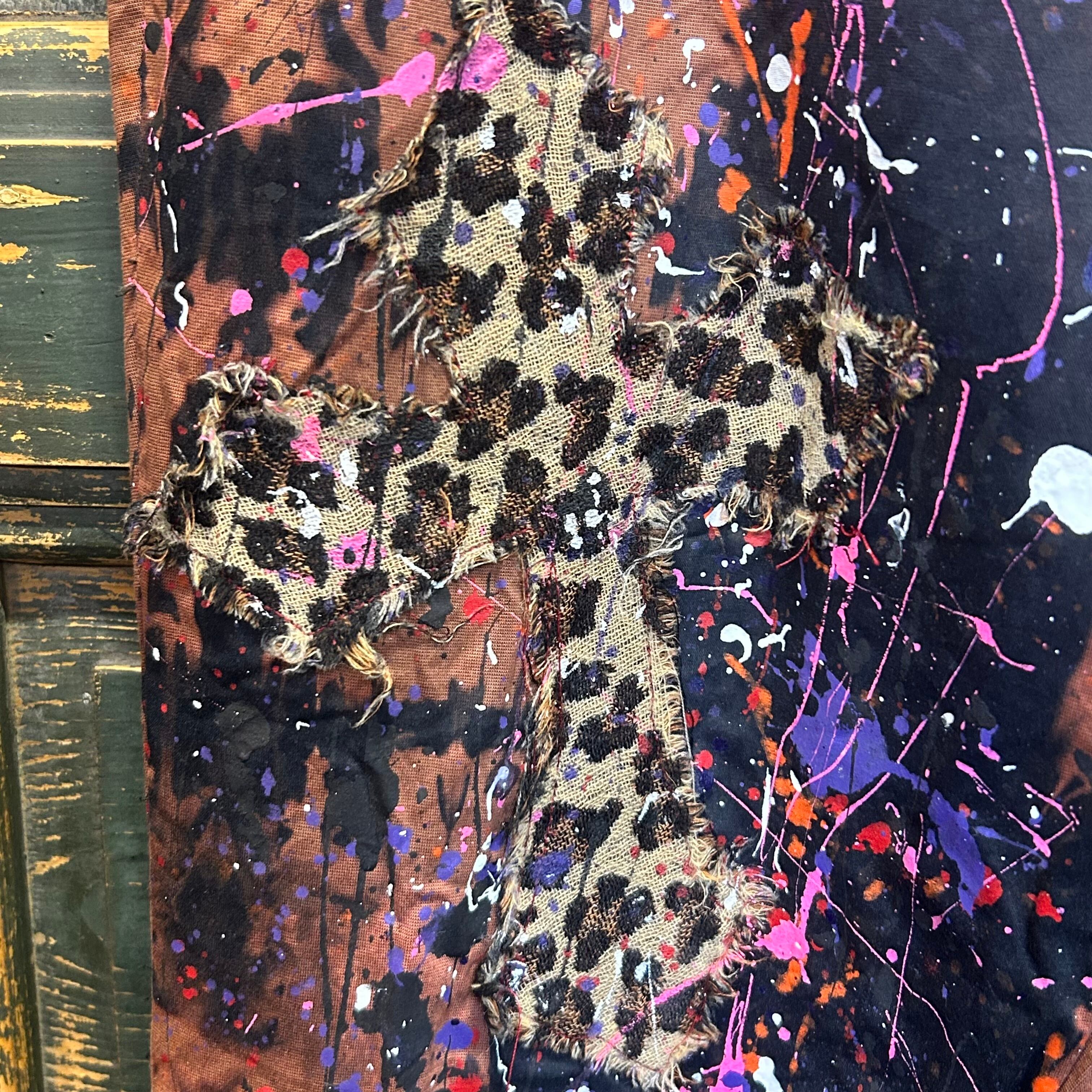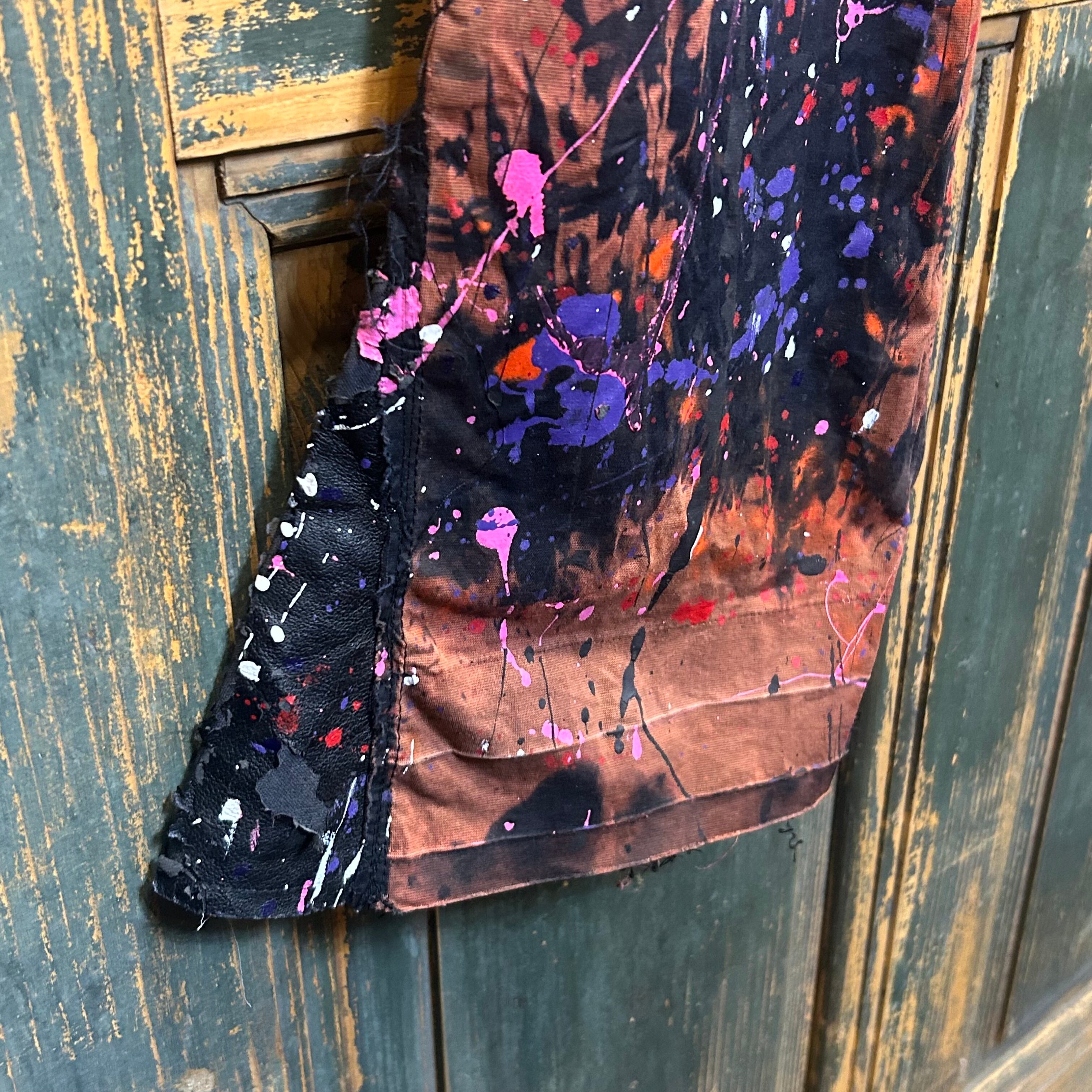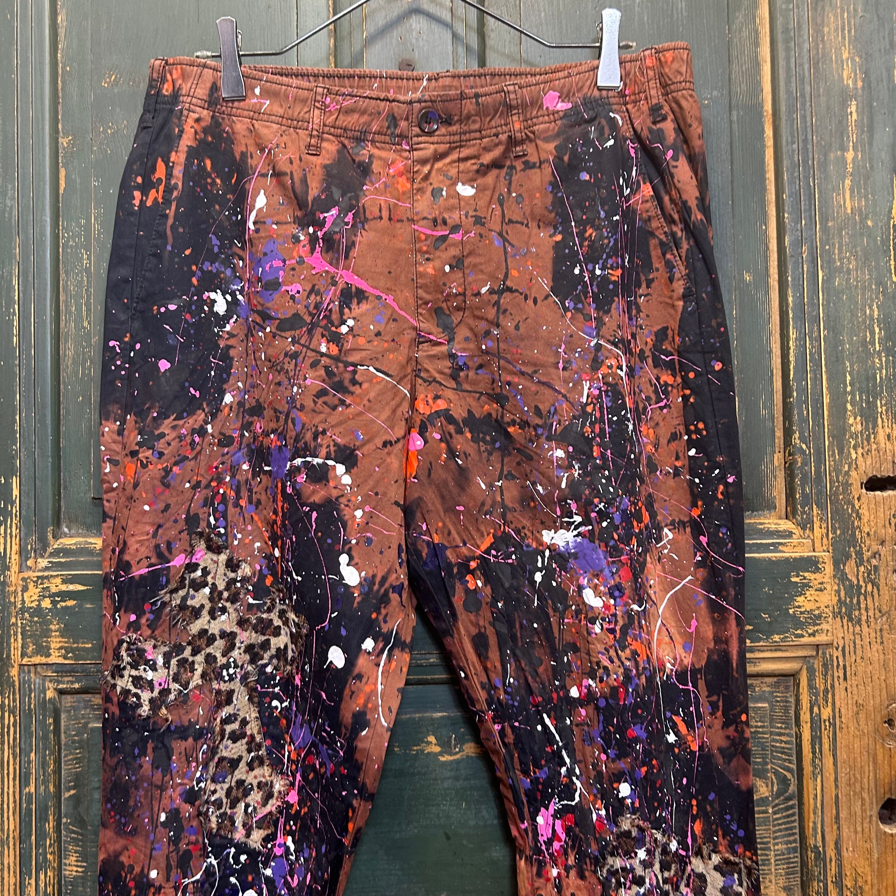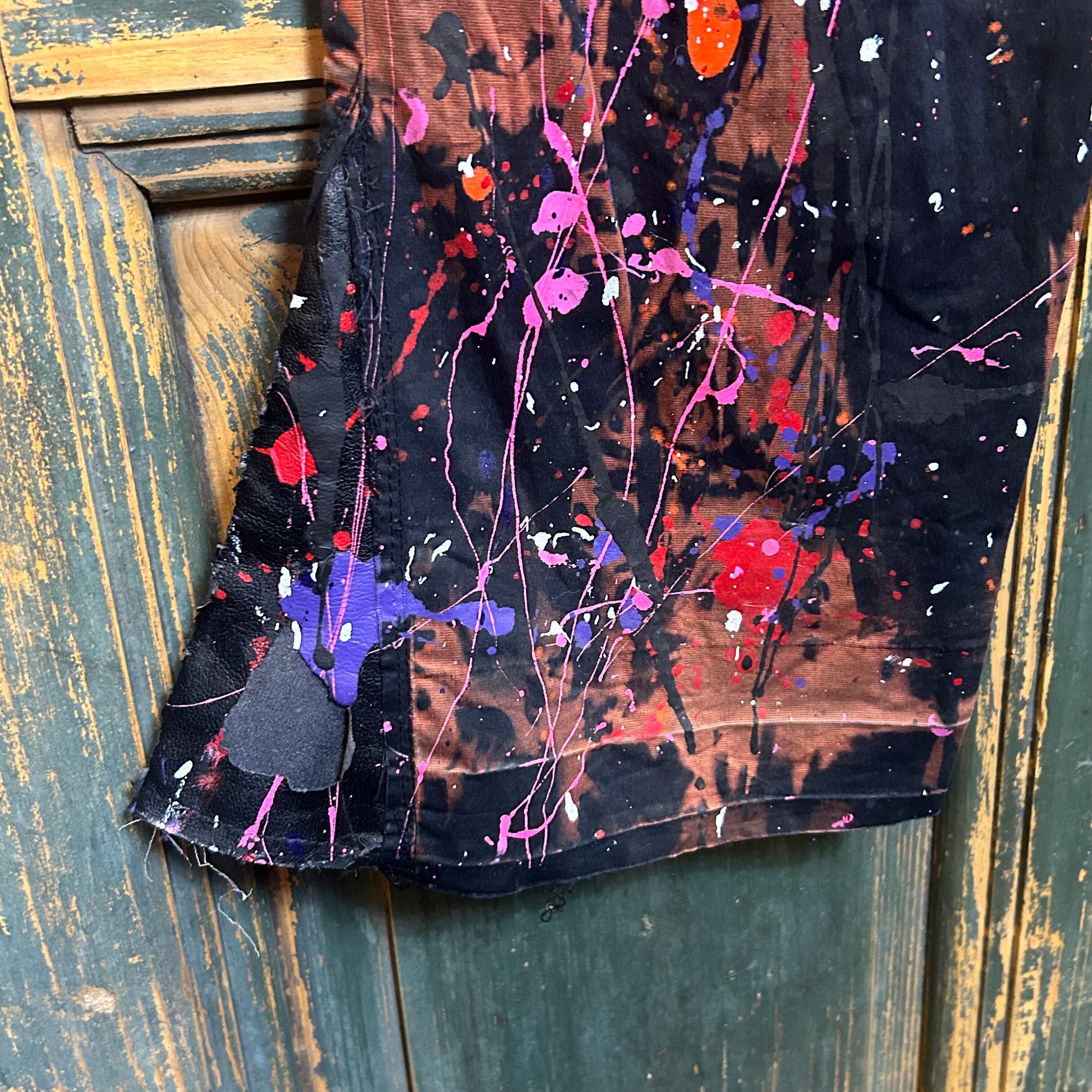 全体にブリーチ加工やペイント、レオパードのパッチなどが貼り付けられた個性的なデザインの一着です。