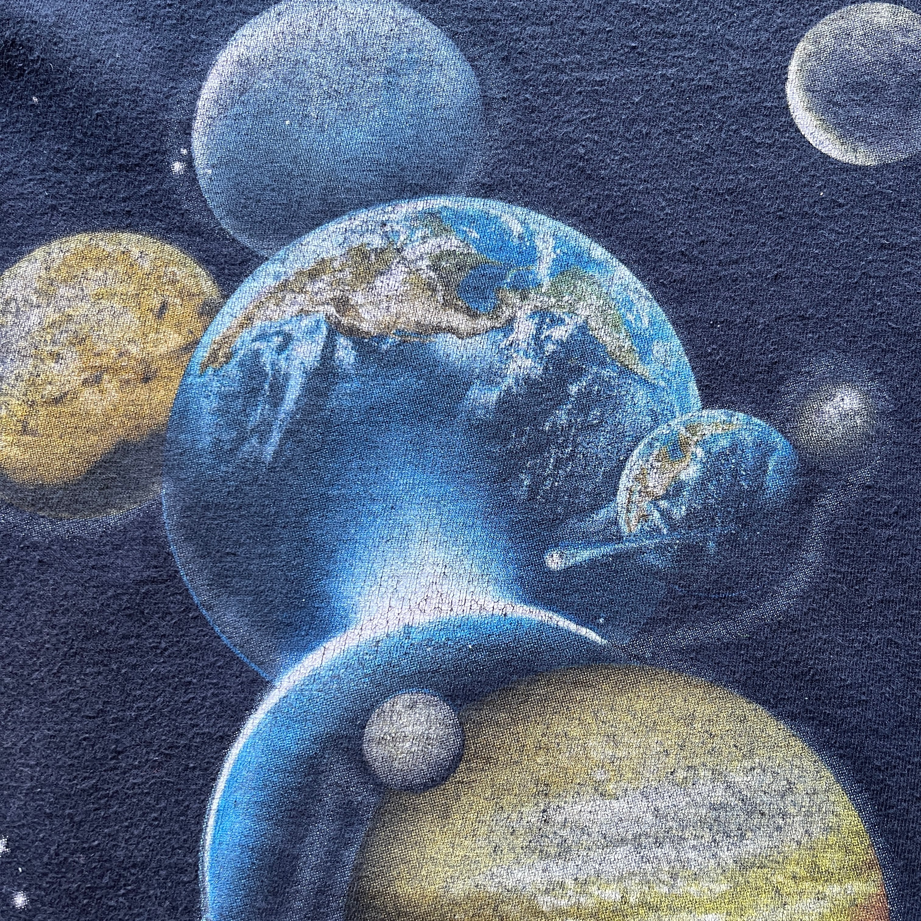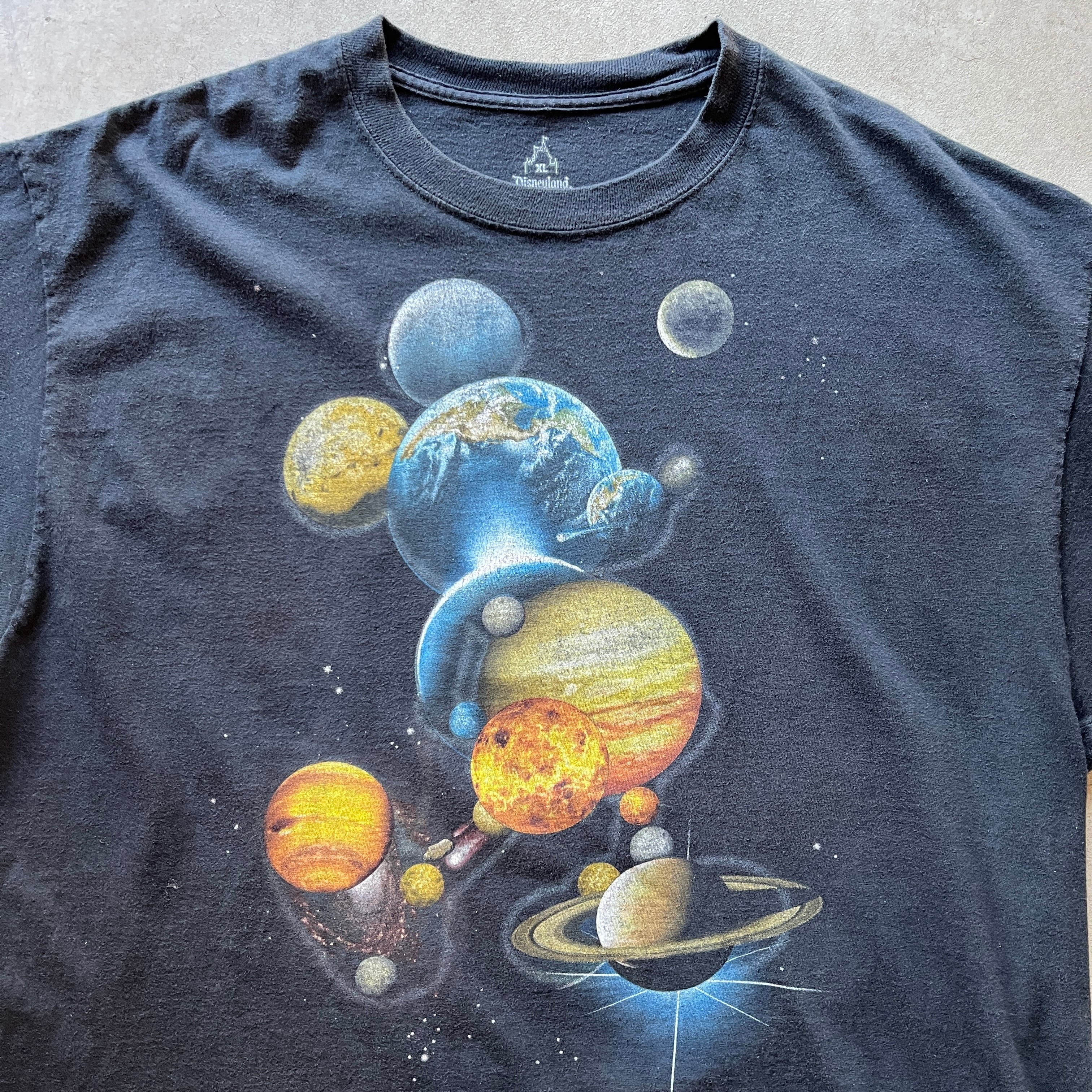惑星が集まってミッキーの形になっているプリントTシャツです