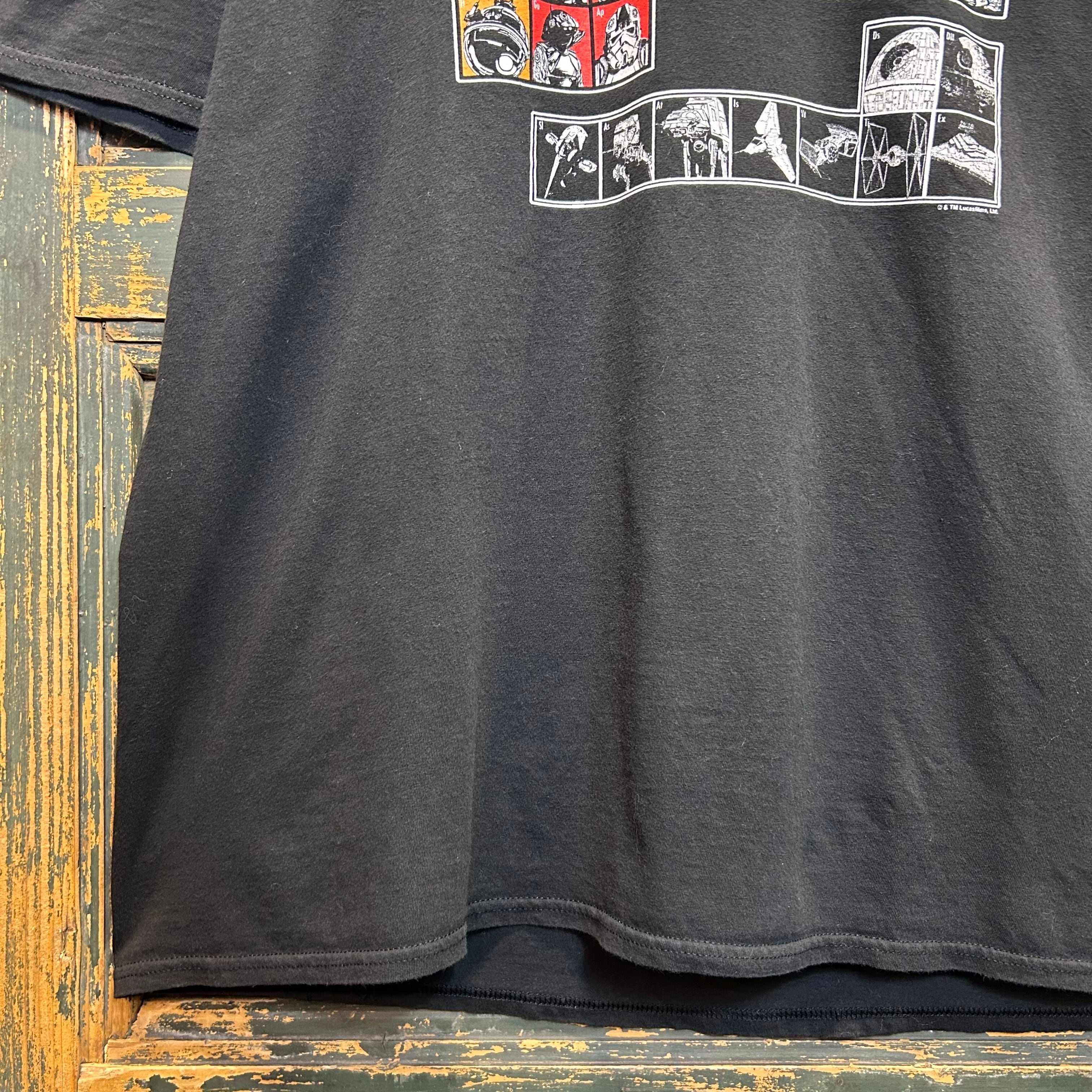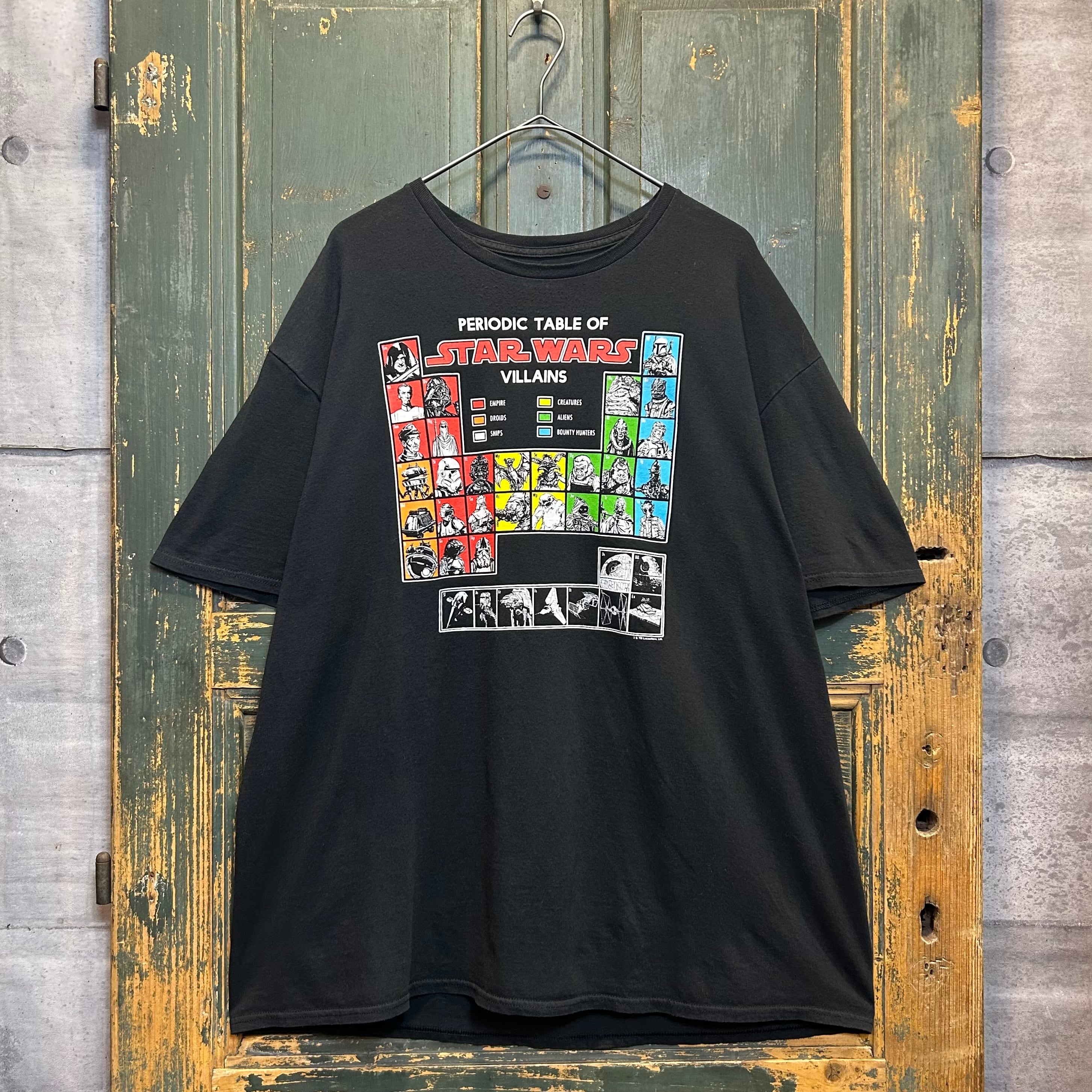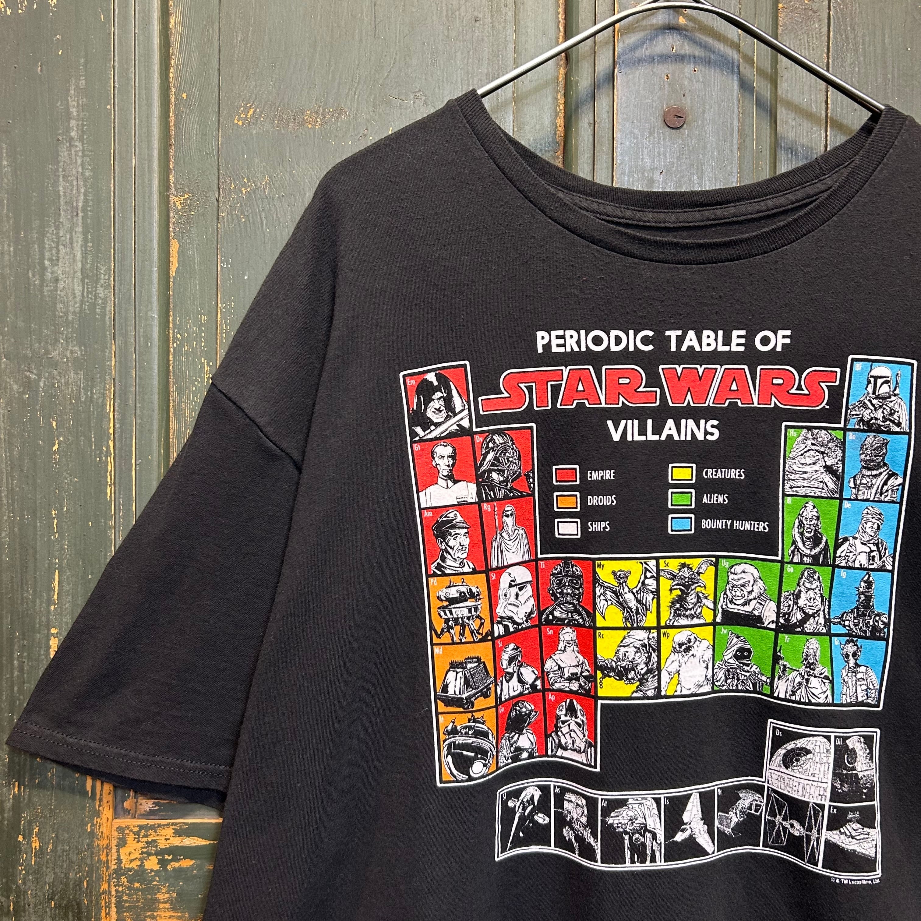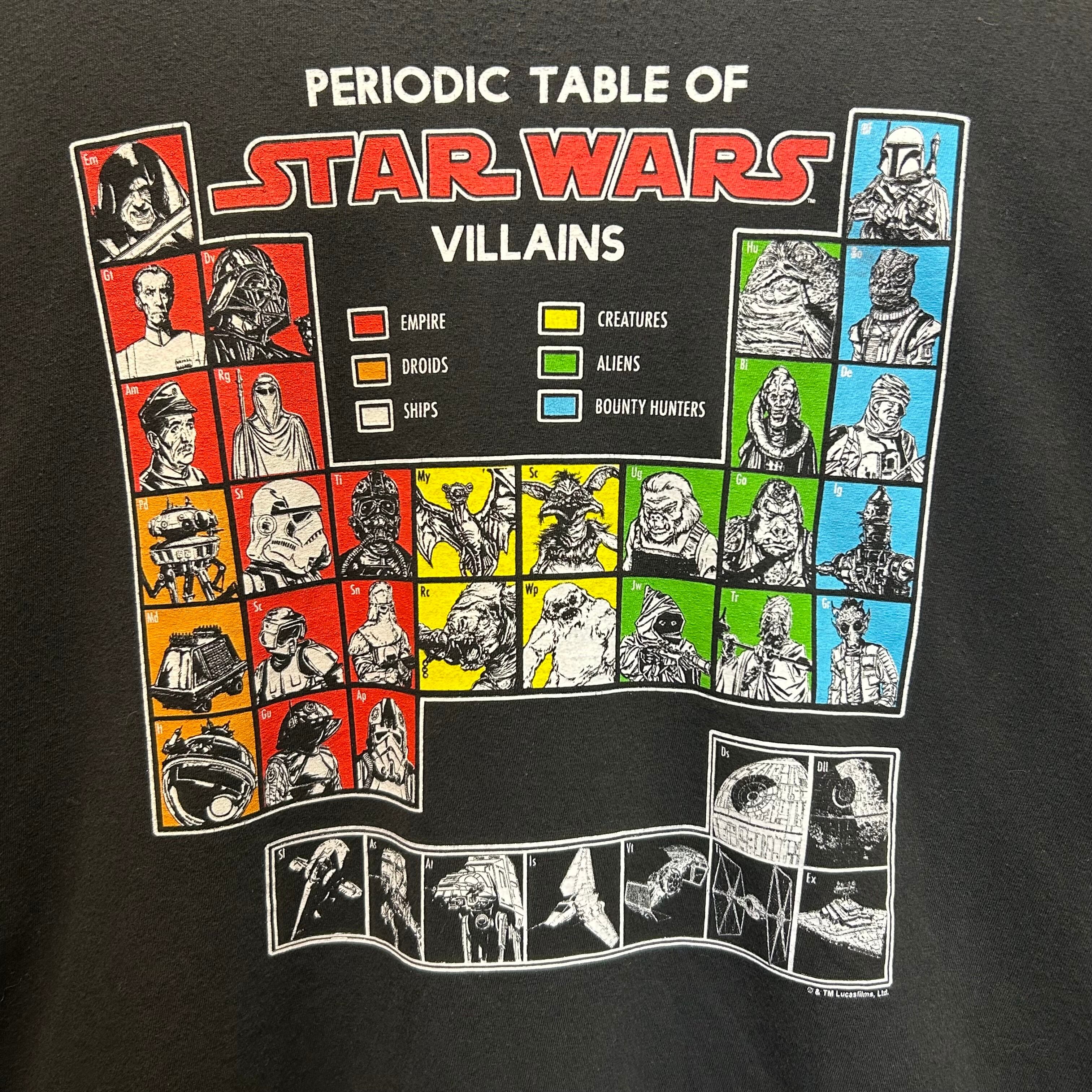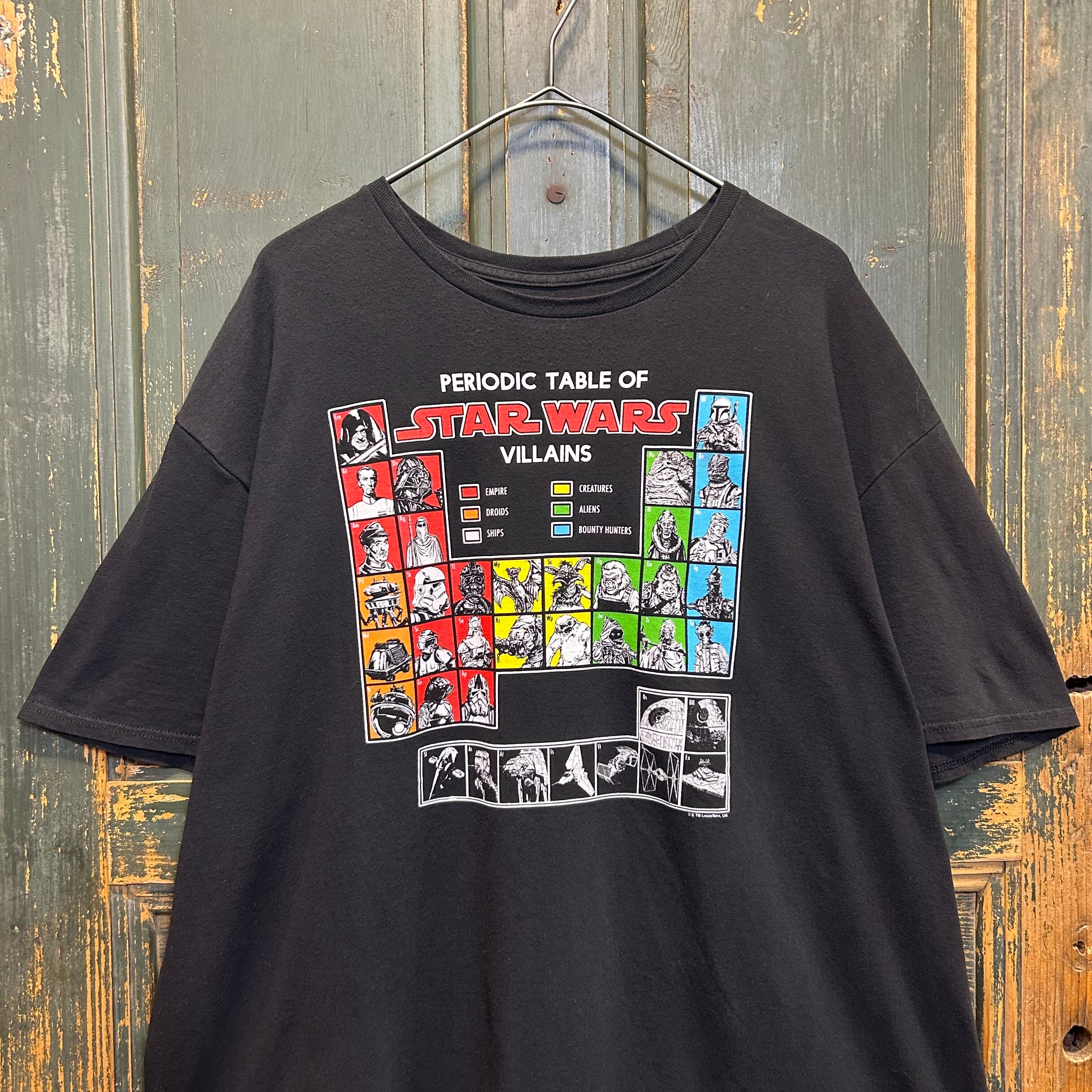 スターウォーズの、元素表のようなパターンでキャラクターが羅列されているムービーTシャツです。