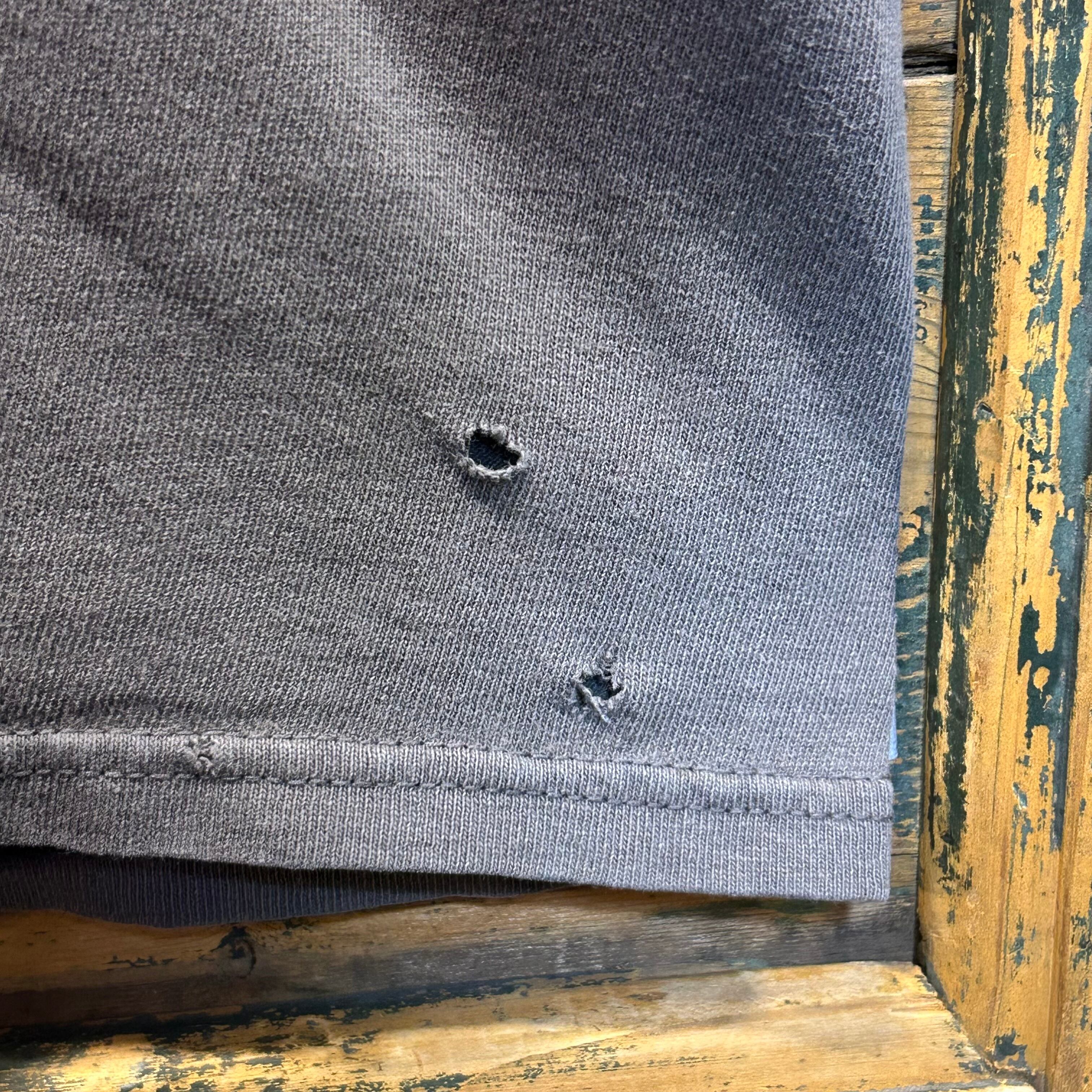 チャコールとグレーの間のようなこなれた雰囲気のあるボディカラーで、ファッションとしても着やすいTシャツだと思います。