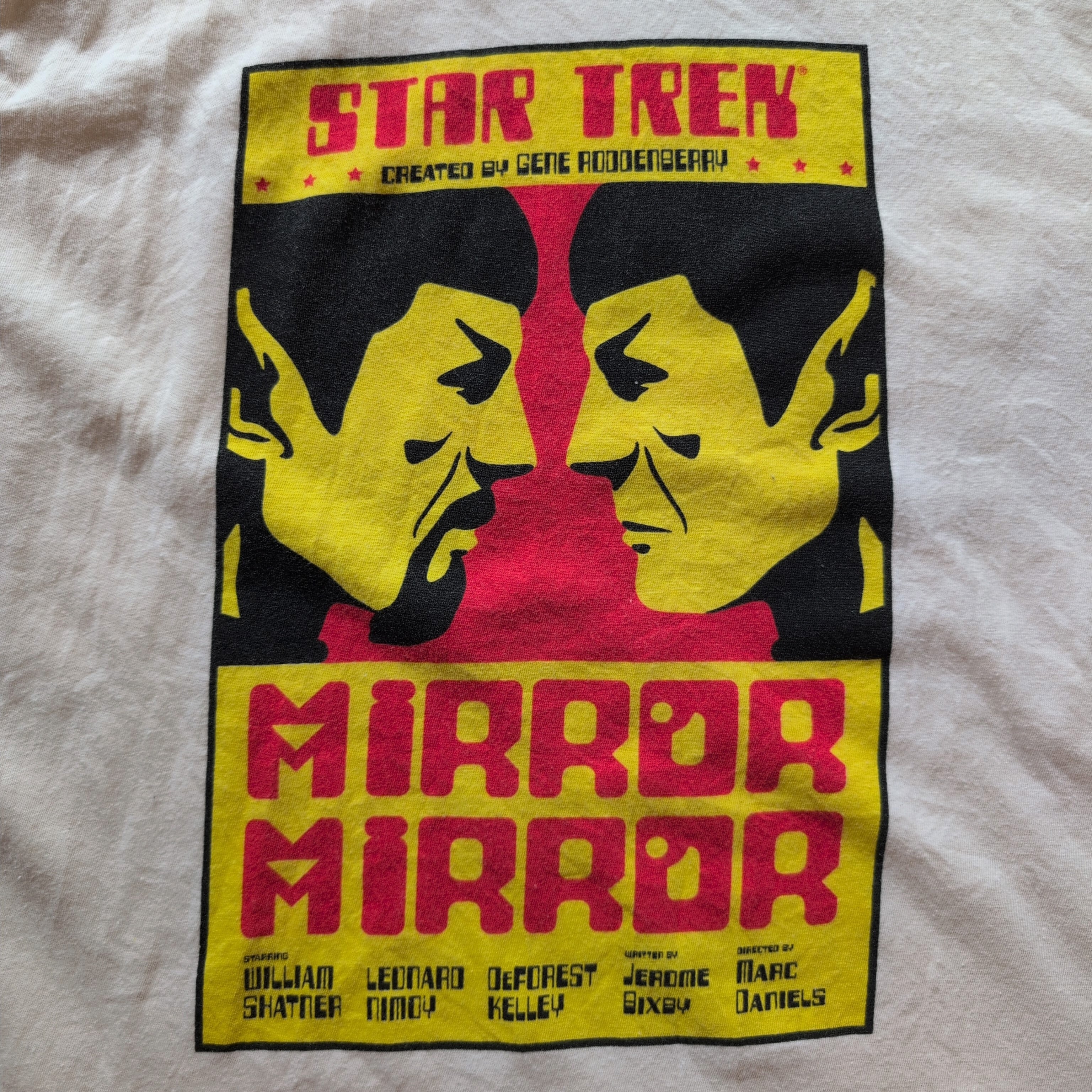 スタートレックシリーズの有名なエピソードの1つ、ミラーミラーがプリントされた1枚です