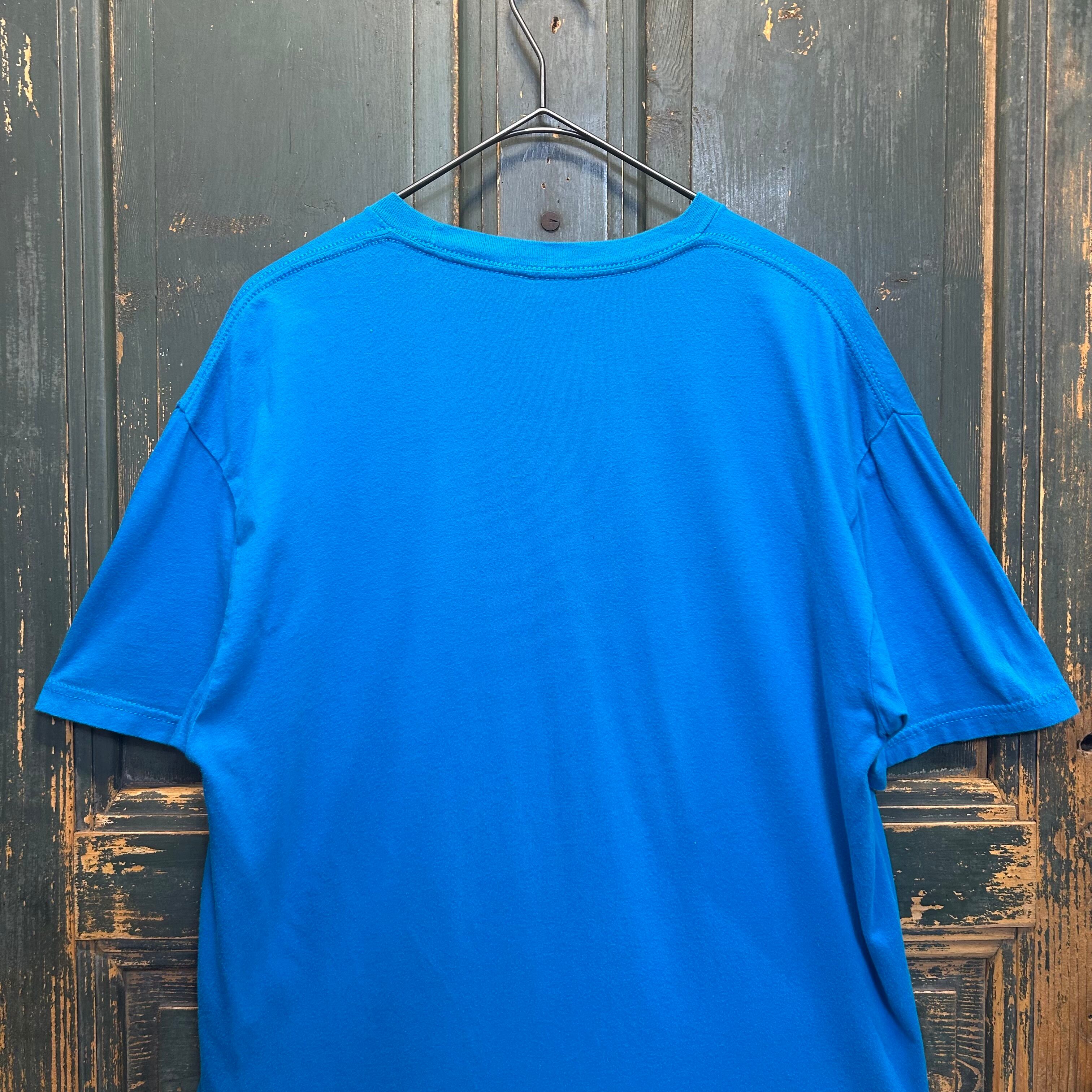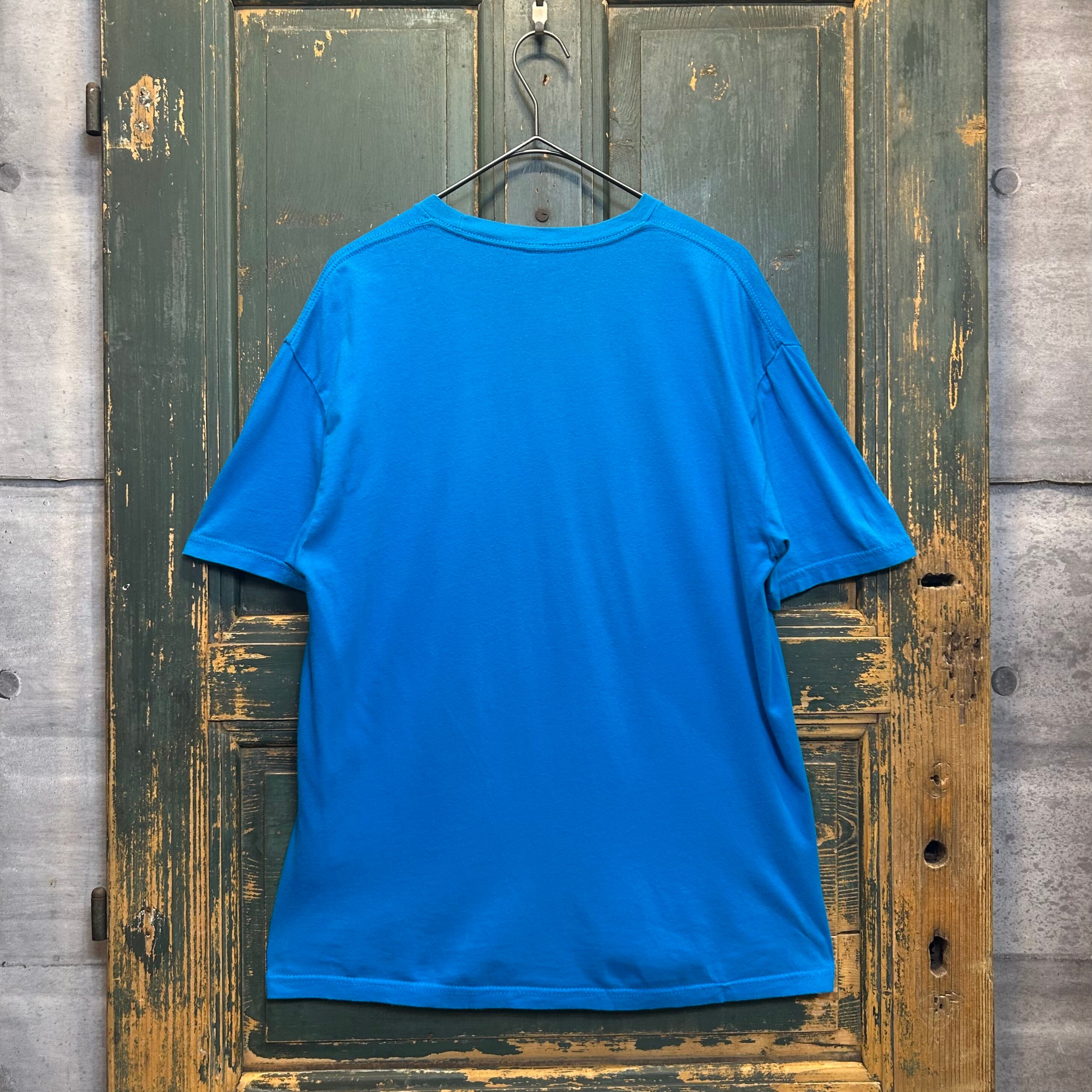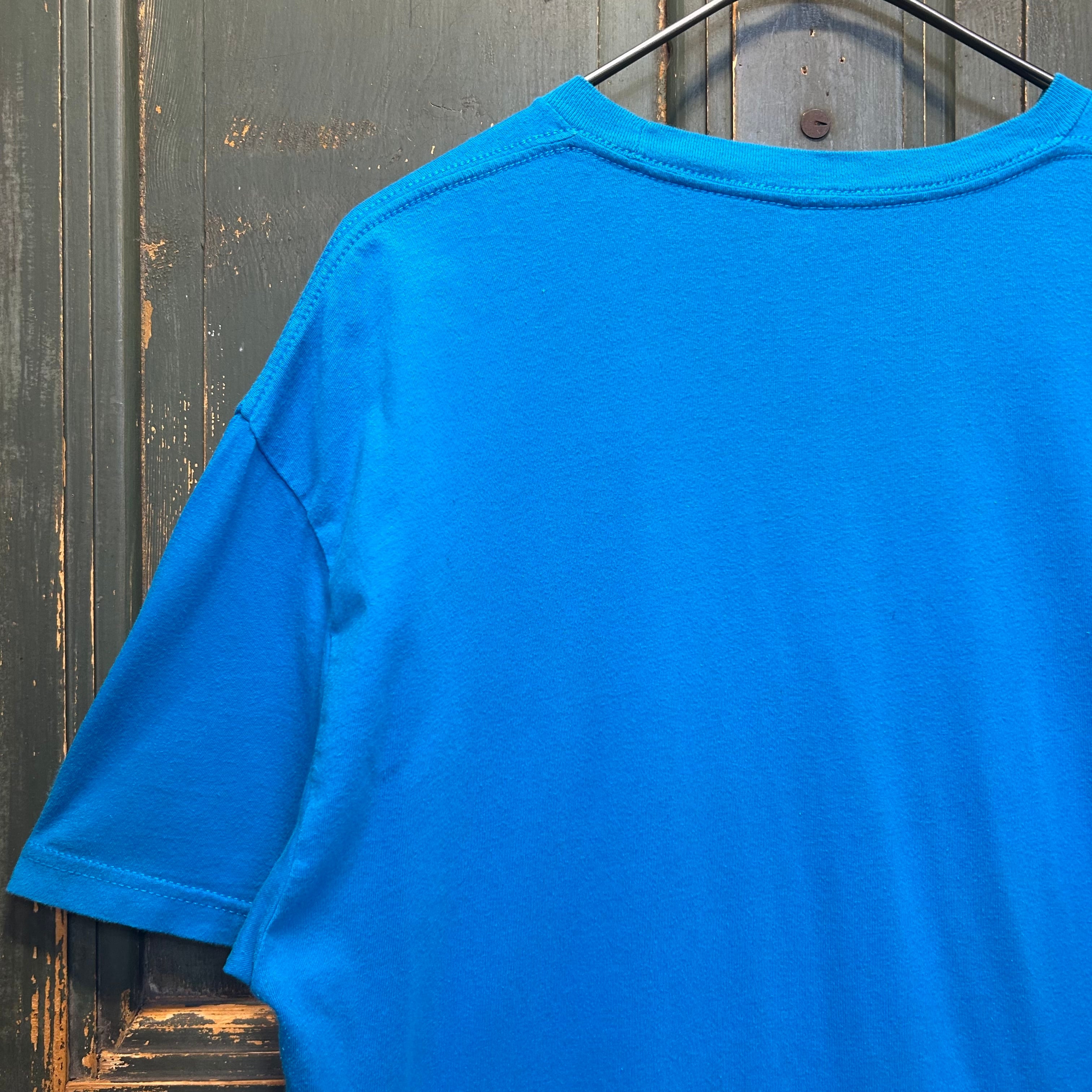 ボディカラーはブルーで、コーデの差し色や外しとしても活躍するTシャツだと思います。