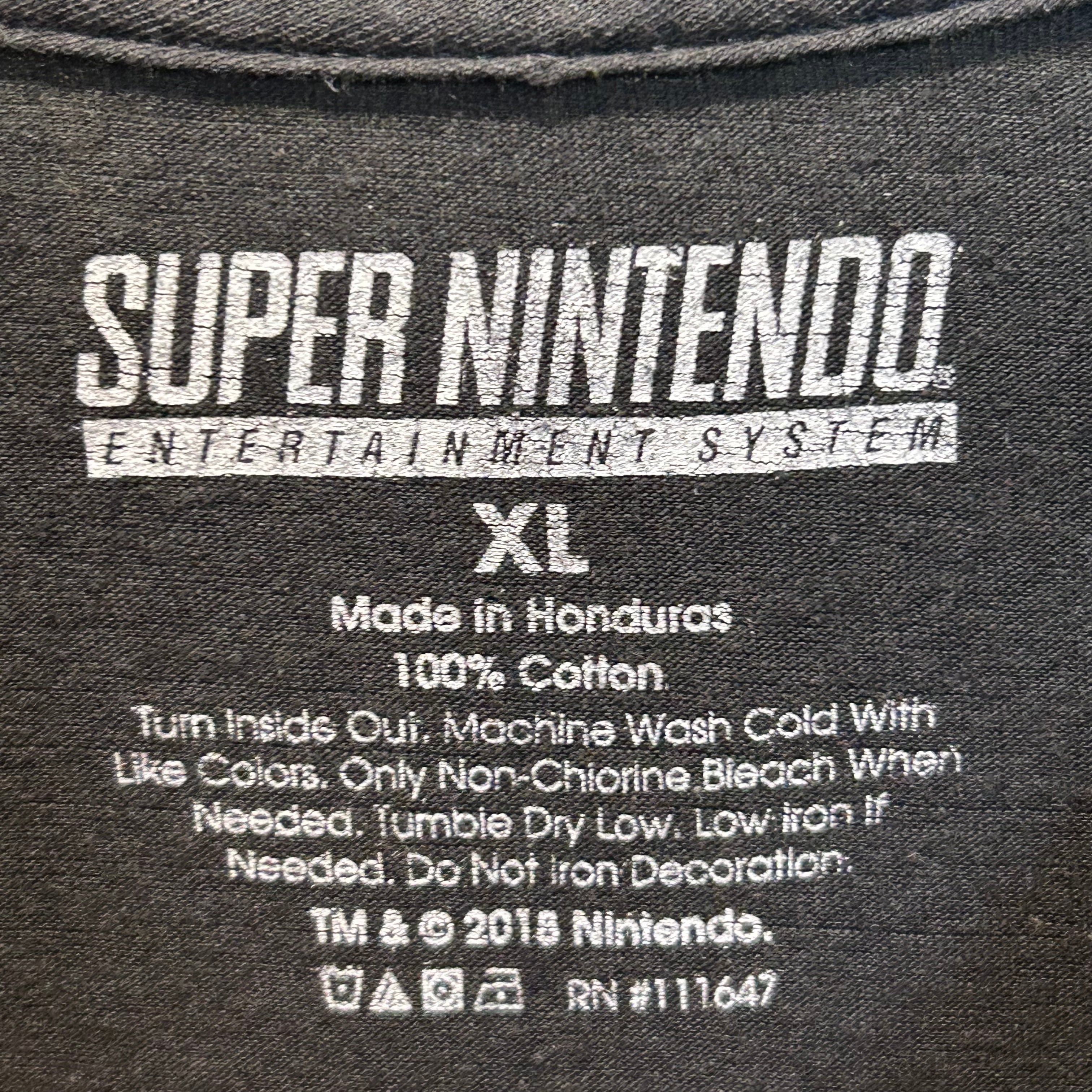 マリオ、ルイージ、ヨッシー、ピーチ姫、ドンキーコング、キノピオ、クッパなどの主要キャラクターたちの集合プリントで、マリカー好きにはたまらない一着です。