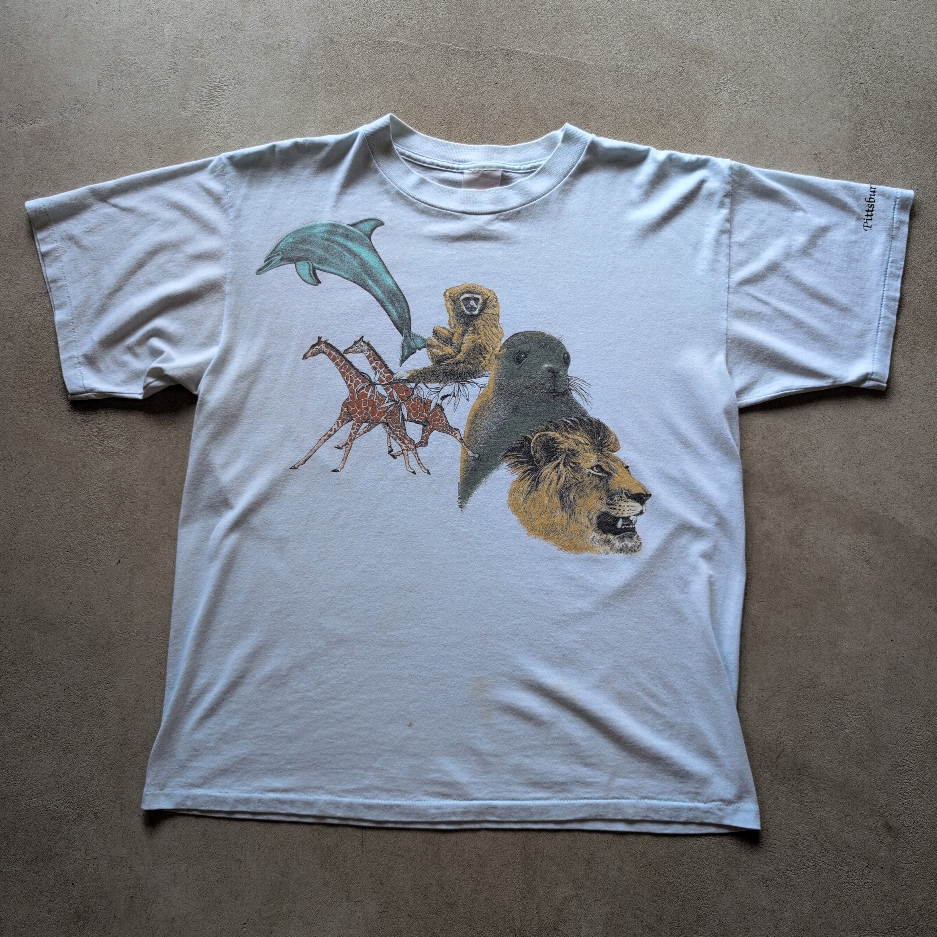 1990年代の動物たちのイラストがプリントされたTシャツです