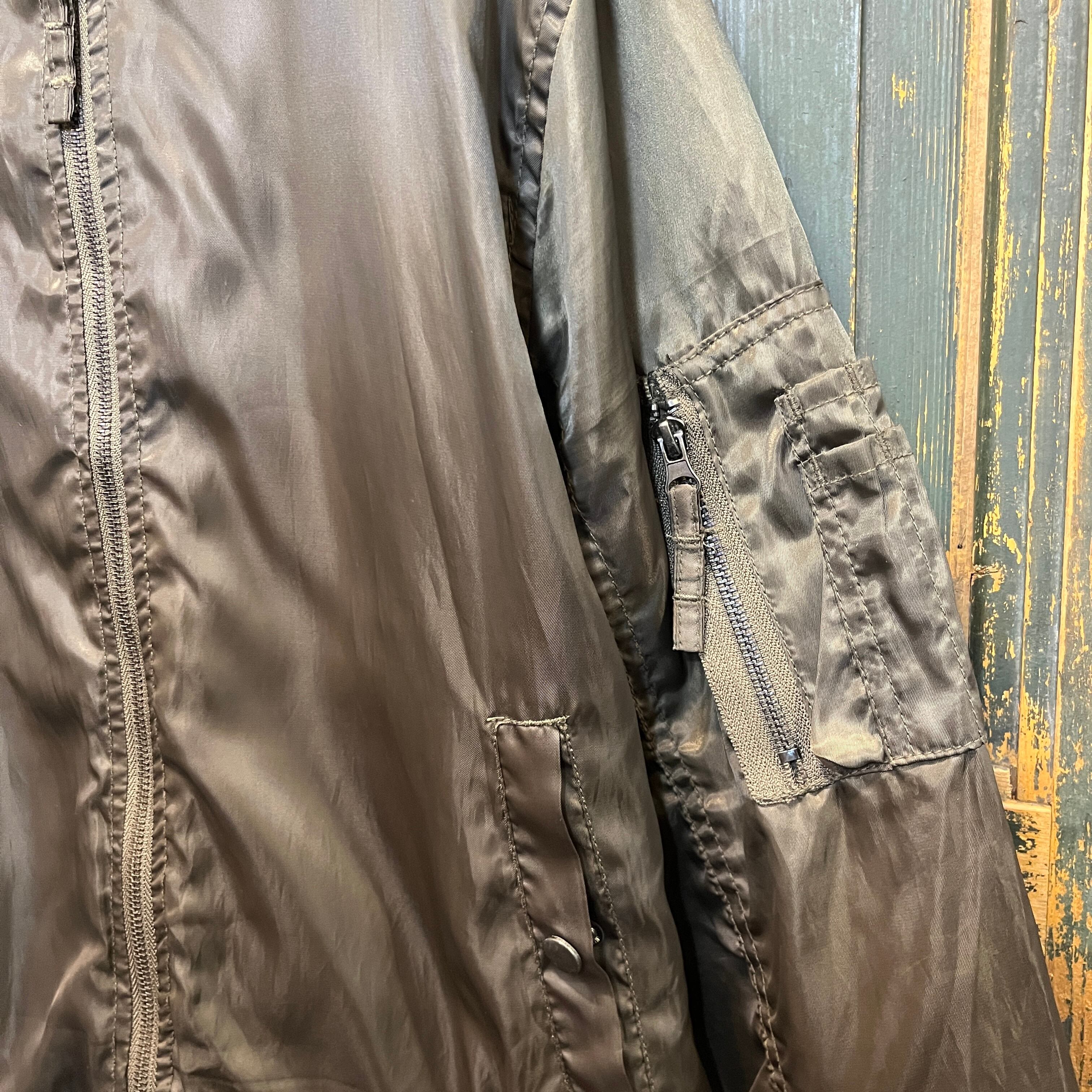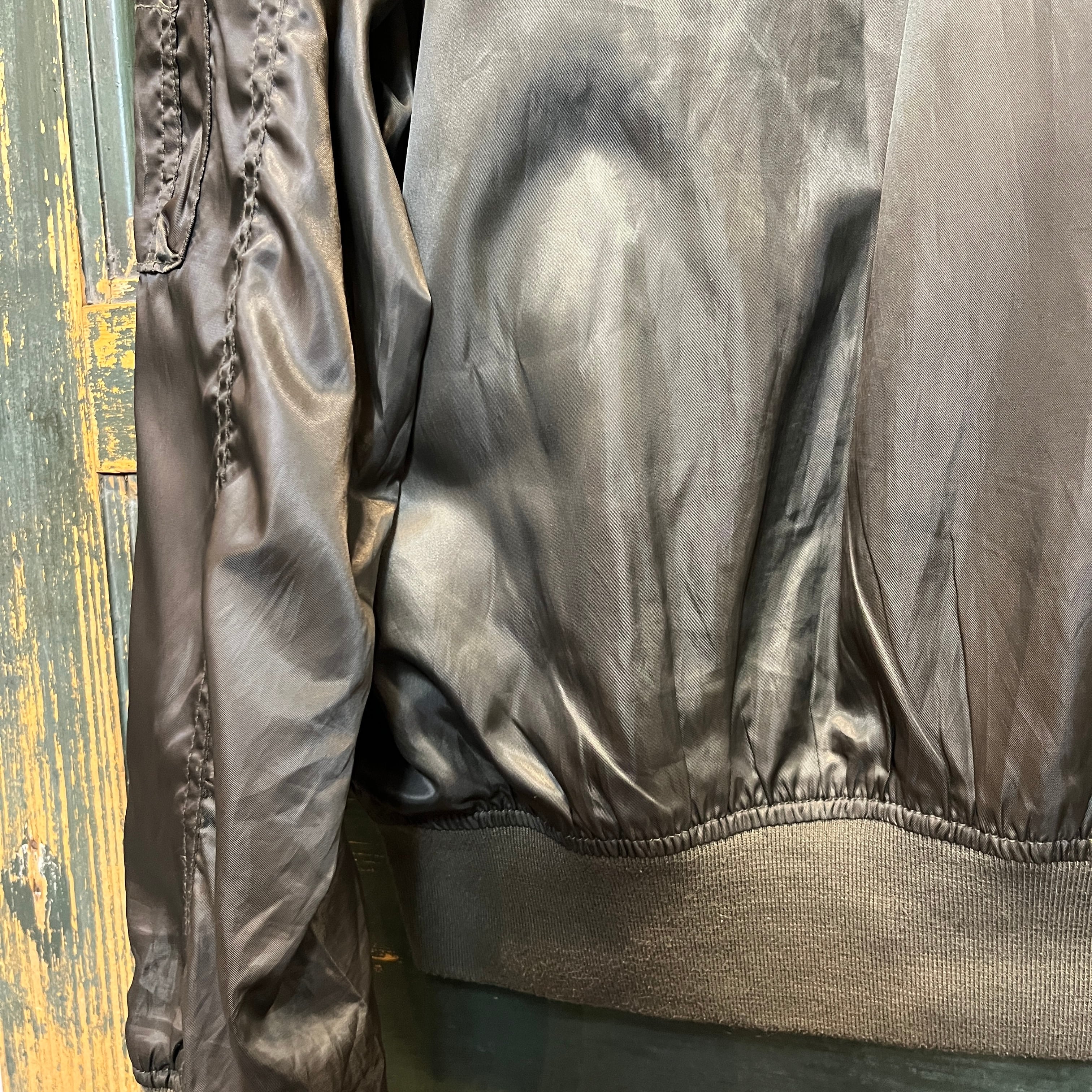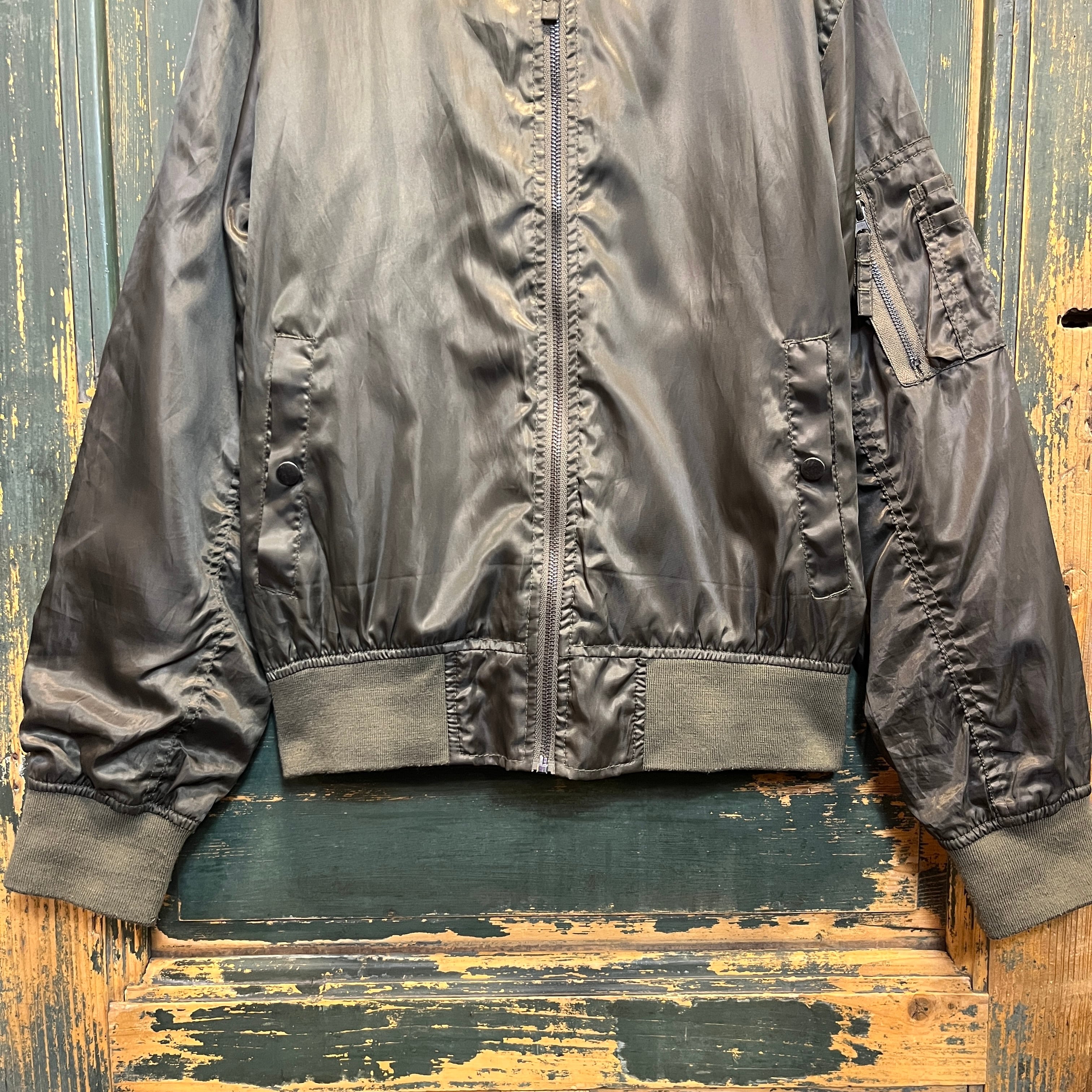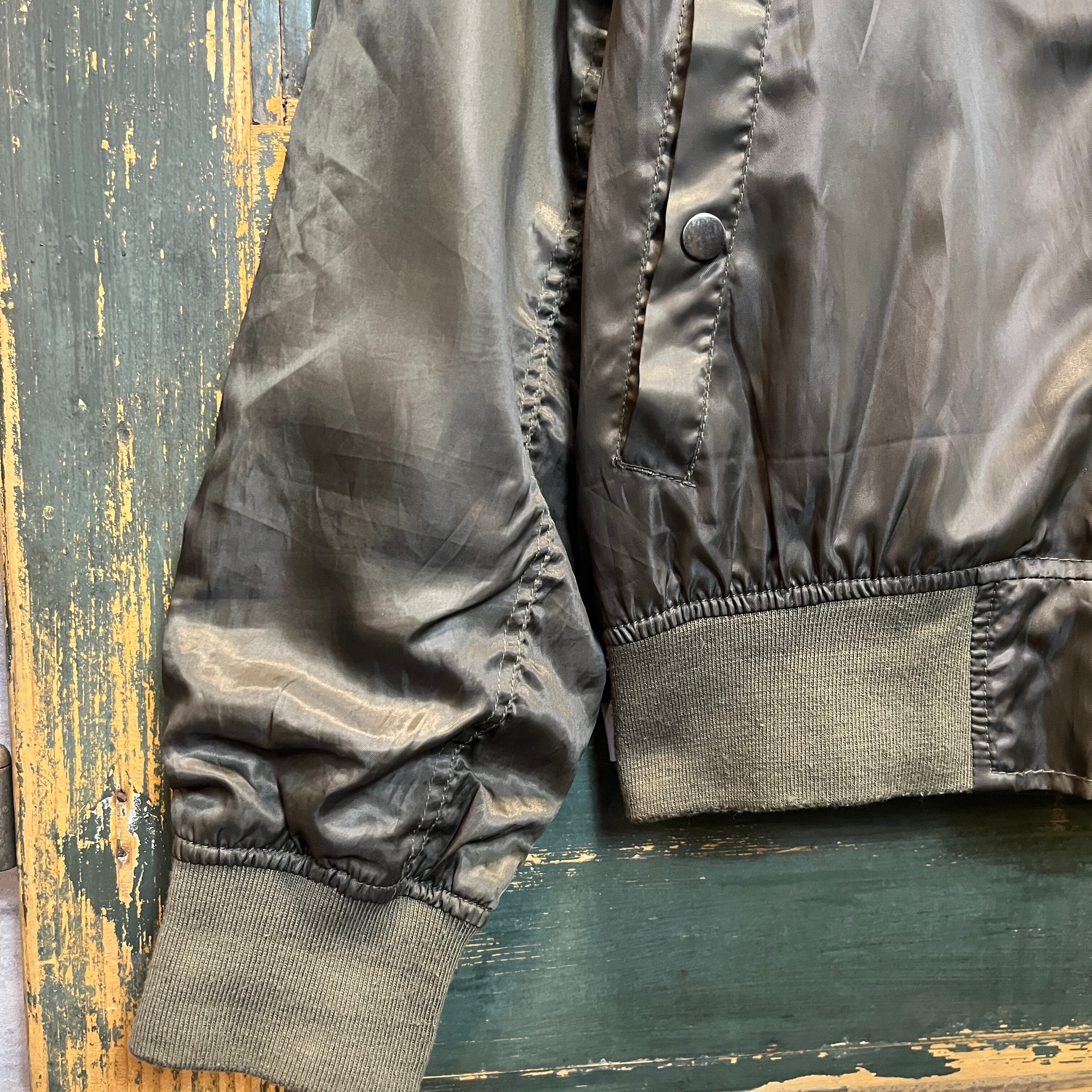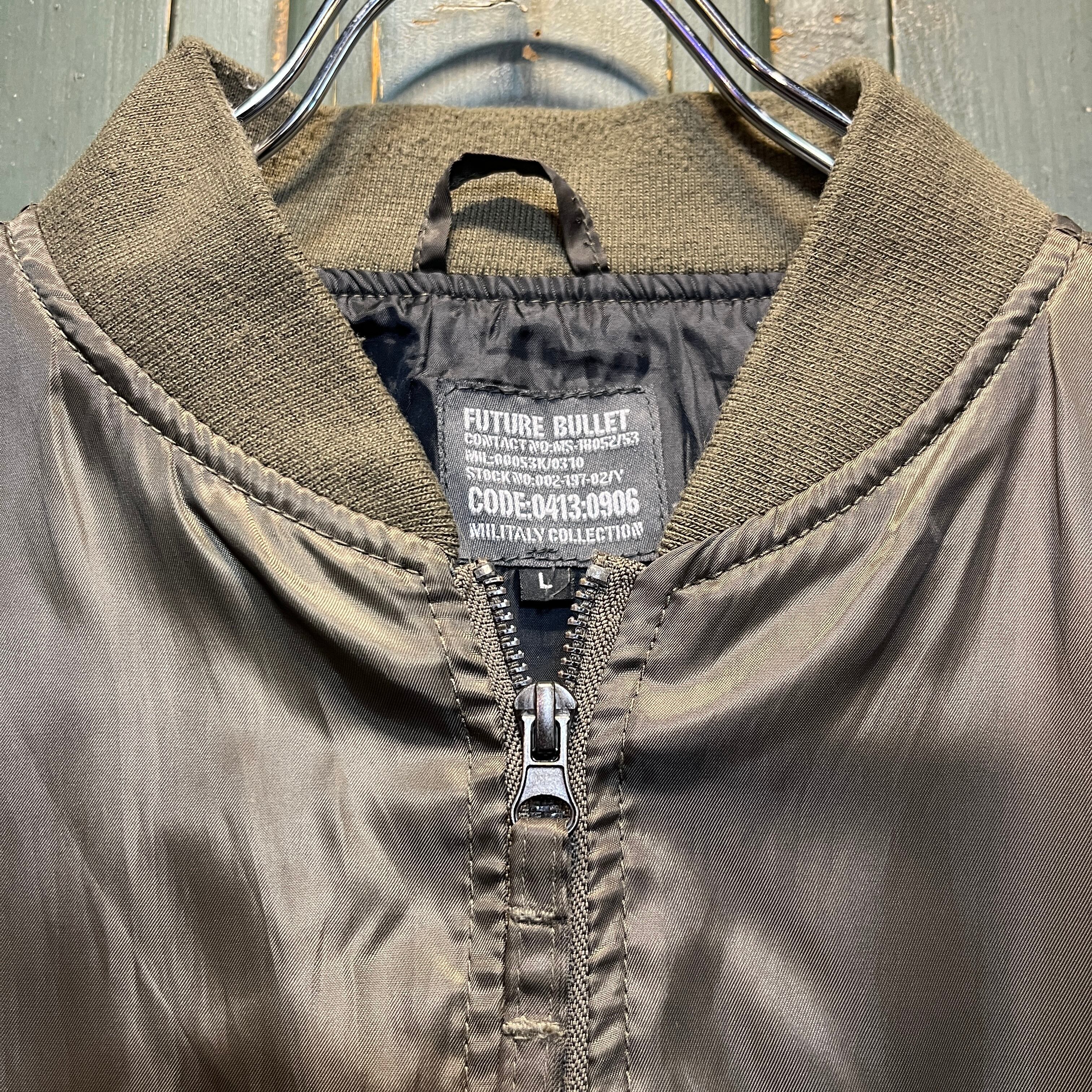 カーキとオリーブの中間ぐらいの色合いのMA-1型のジャケットです