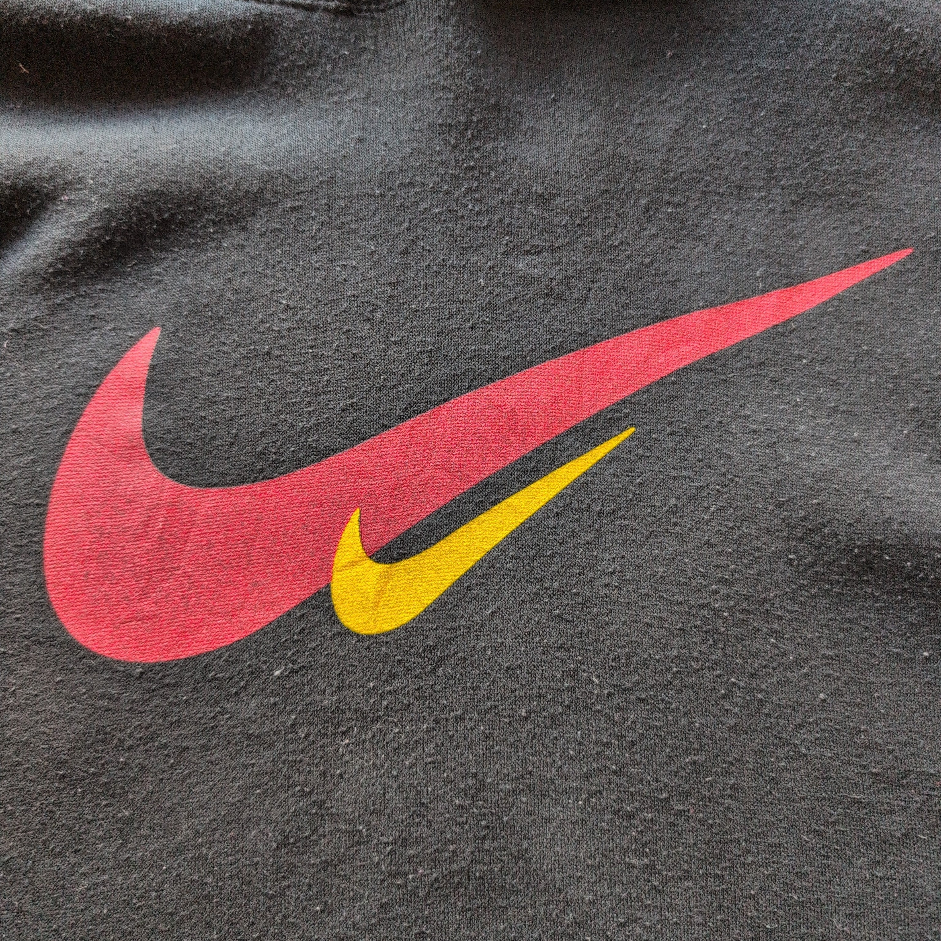 フロントに大きさの異なるナイキのロゴが赤と黄色で描かれていてシンプルながらもどこか遊び心のある1枚です