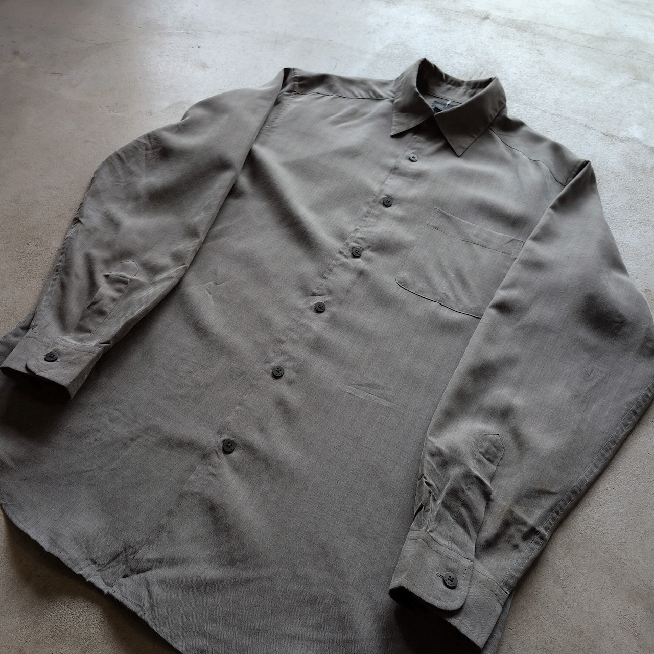カーキっぽい生地をベースに細かいチェック柄のデザインがどこか大人の魅力を感じられる1枚