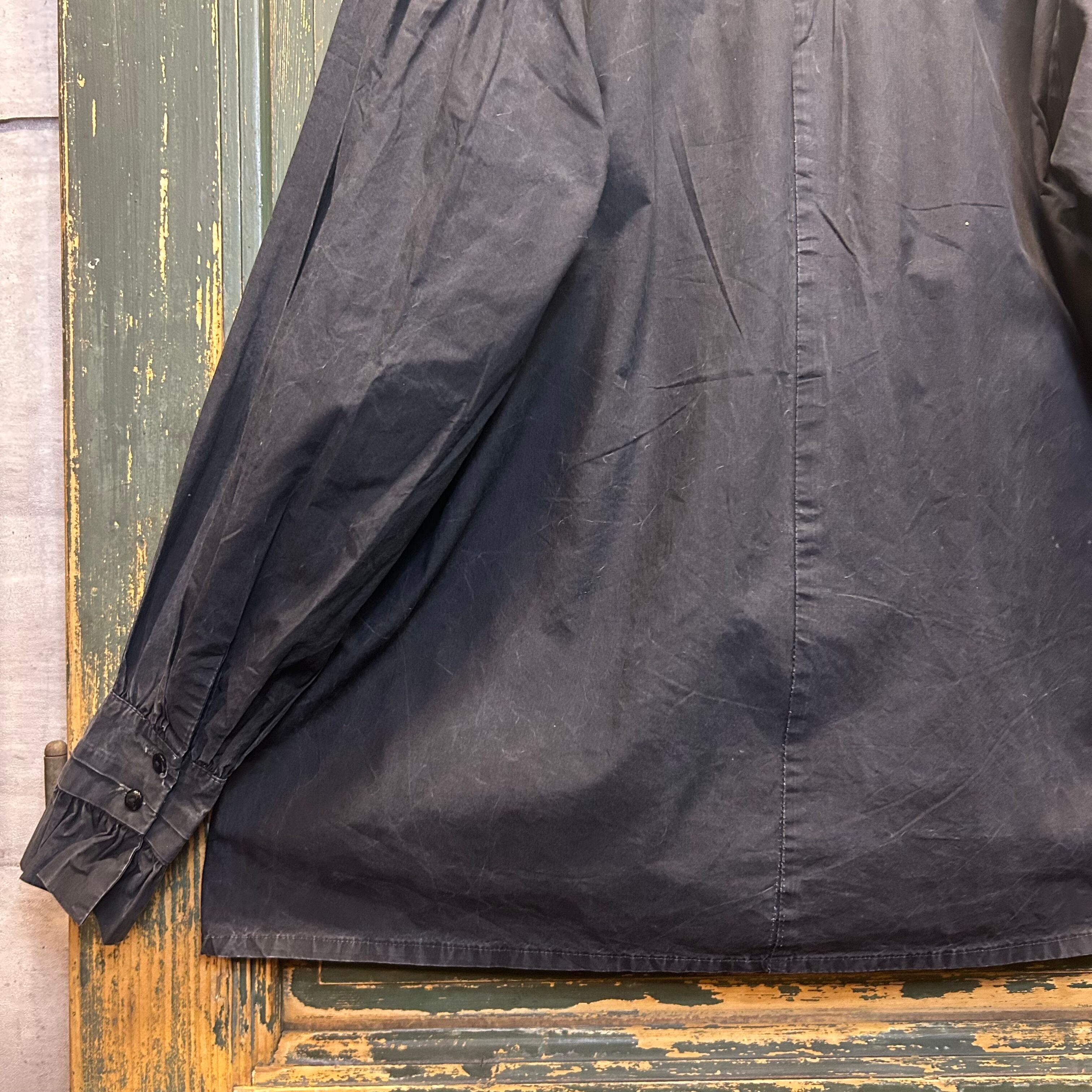 コットン100パーセントの、フリルシャツにしては少しカジュアルな素材で、表面が若干褪色しているのも含めて独特な雰囲気のある一着です。