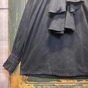 プルオーバーになっているのも他ではあまりみないディテールで、目を引くフリルシャツだと思います。