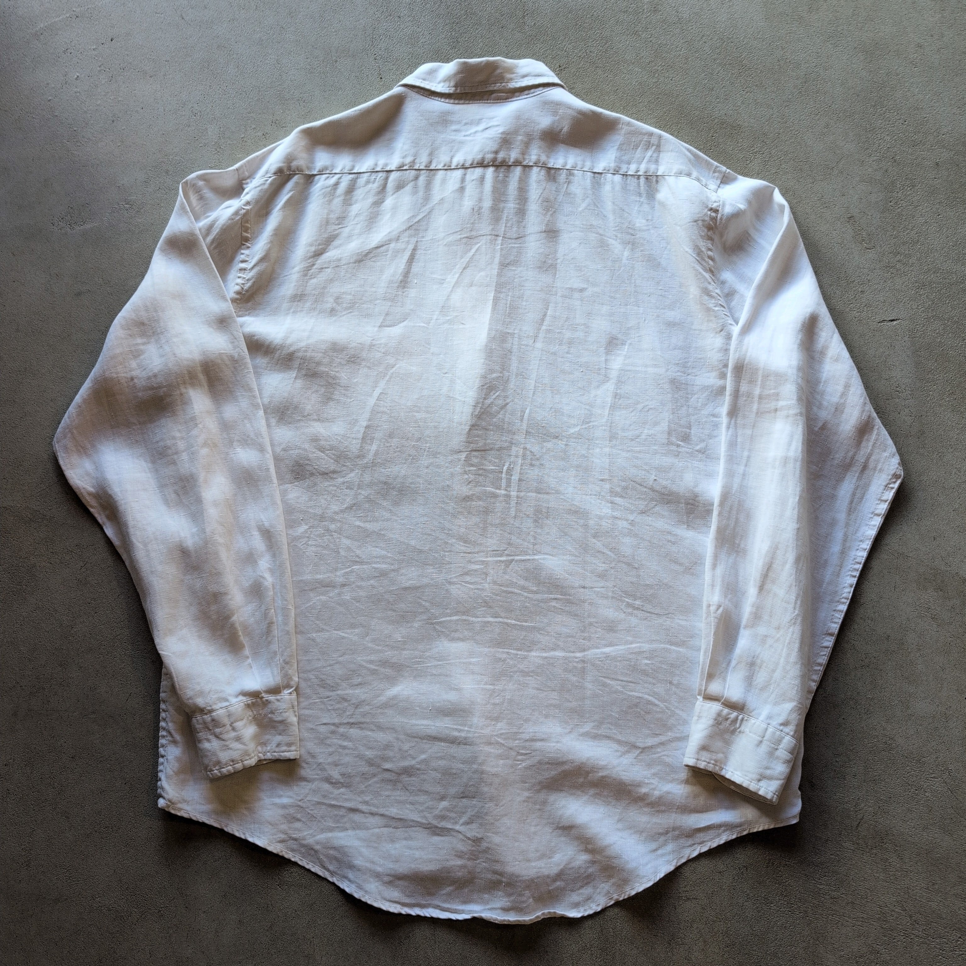 リネンのシャツは通気性がよく春夏は涼しく秋には軽い羽織としても活躍し1枚で着てもインナーとして重ねても様になる万能アイテムだと思います