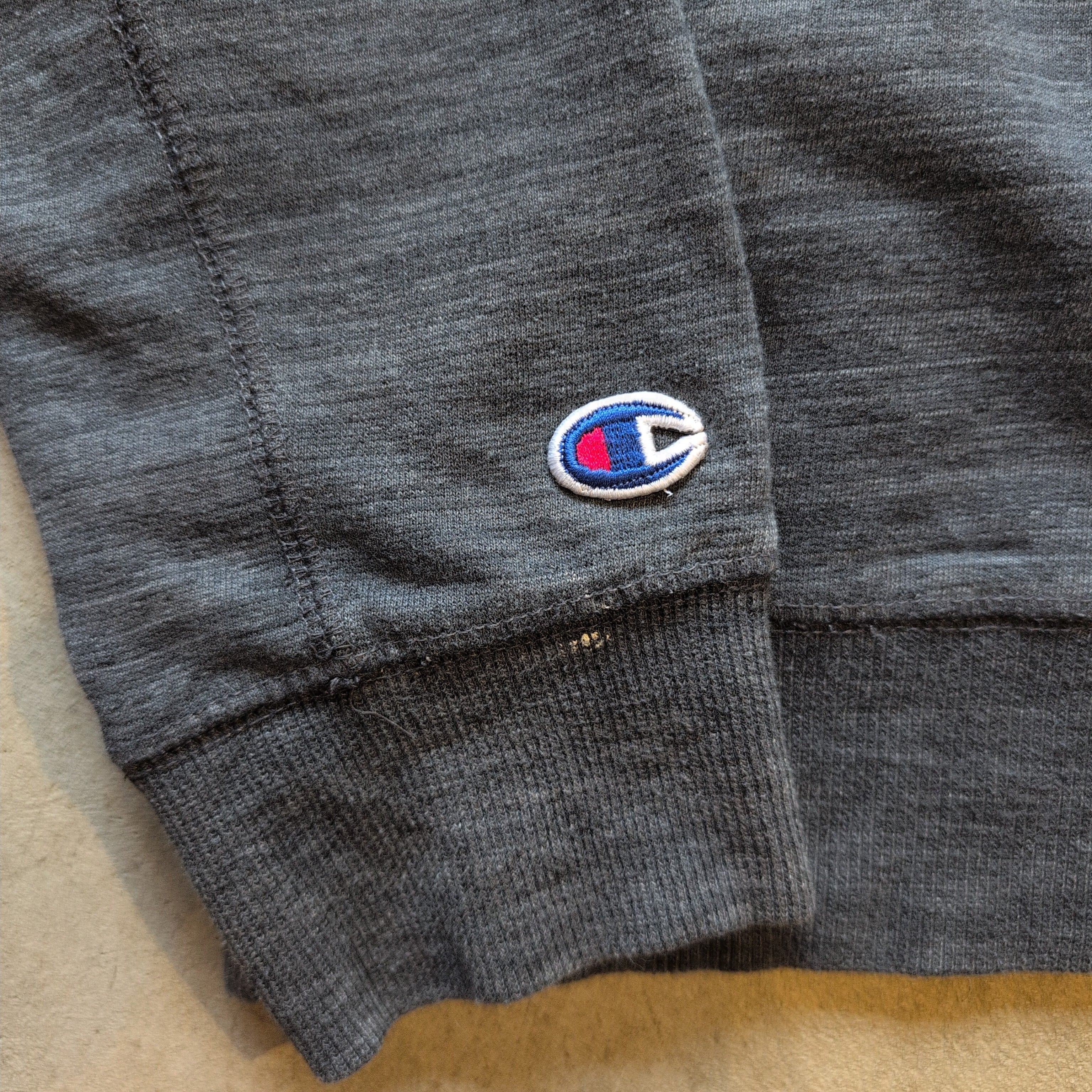 チャコールグレーの生地にデザインは袖元のロゴのみとシンプルな1枚です