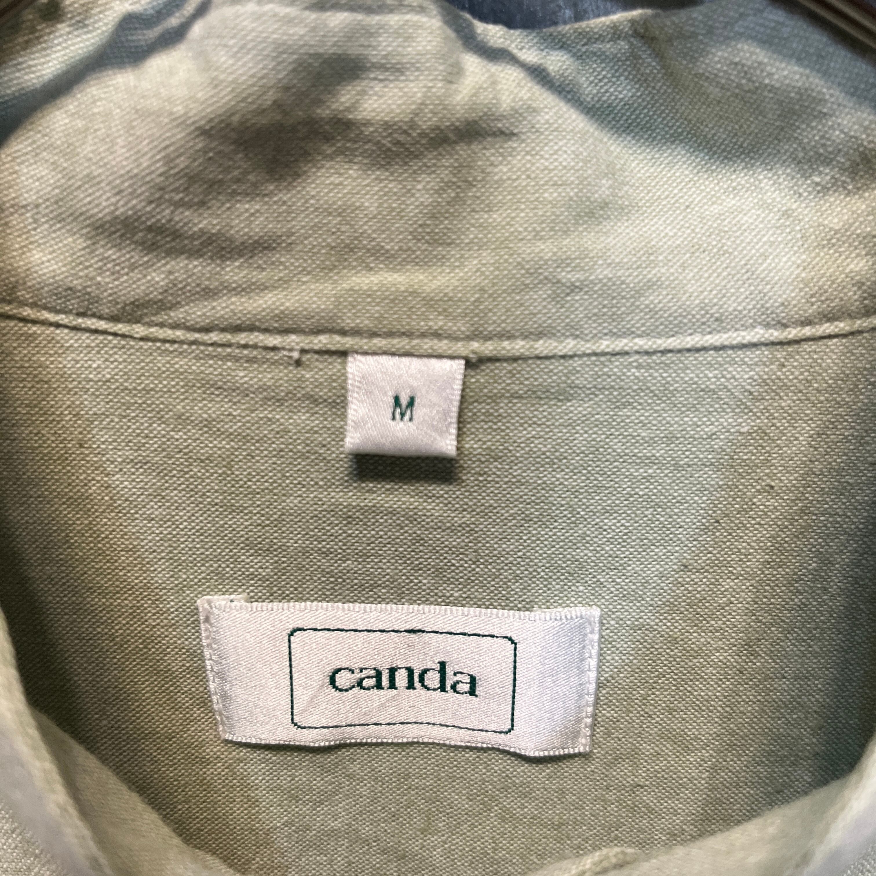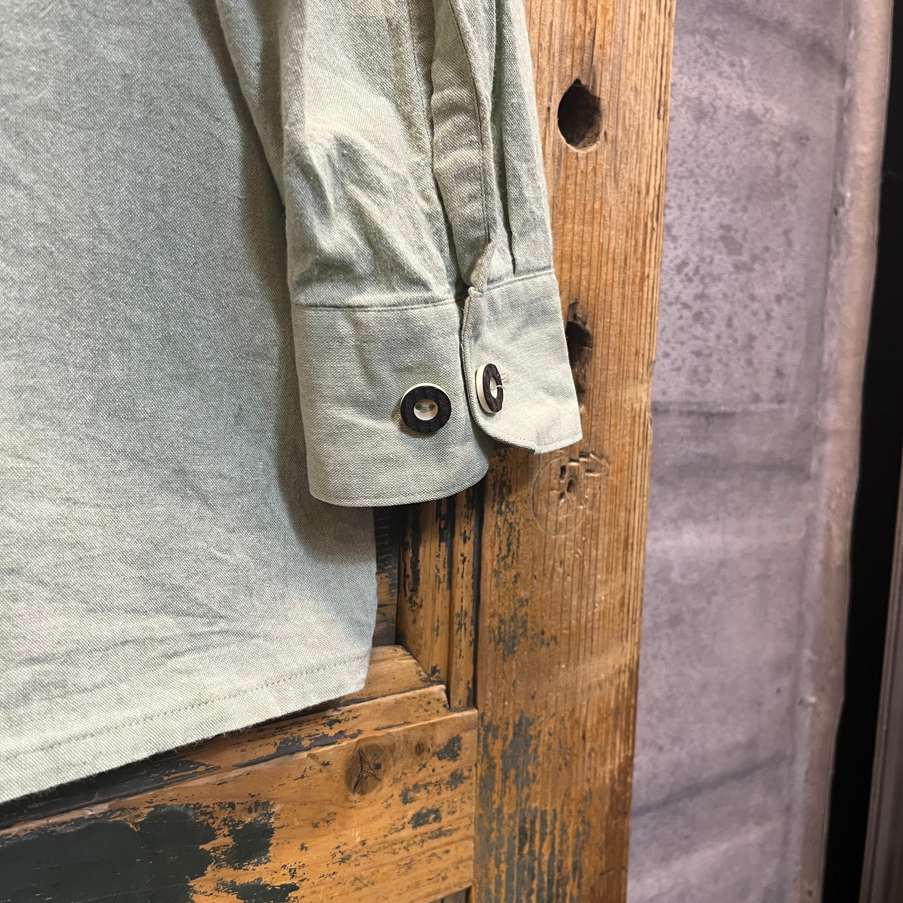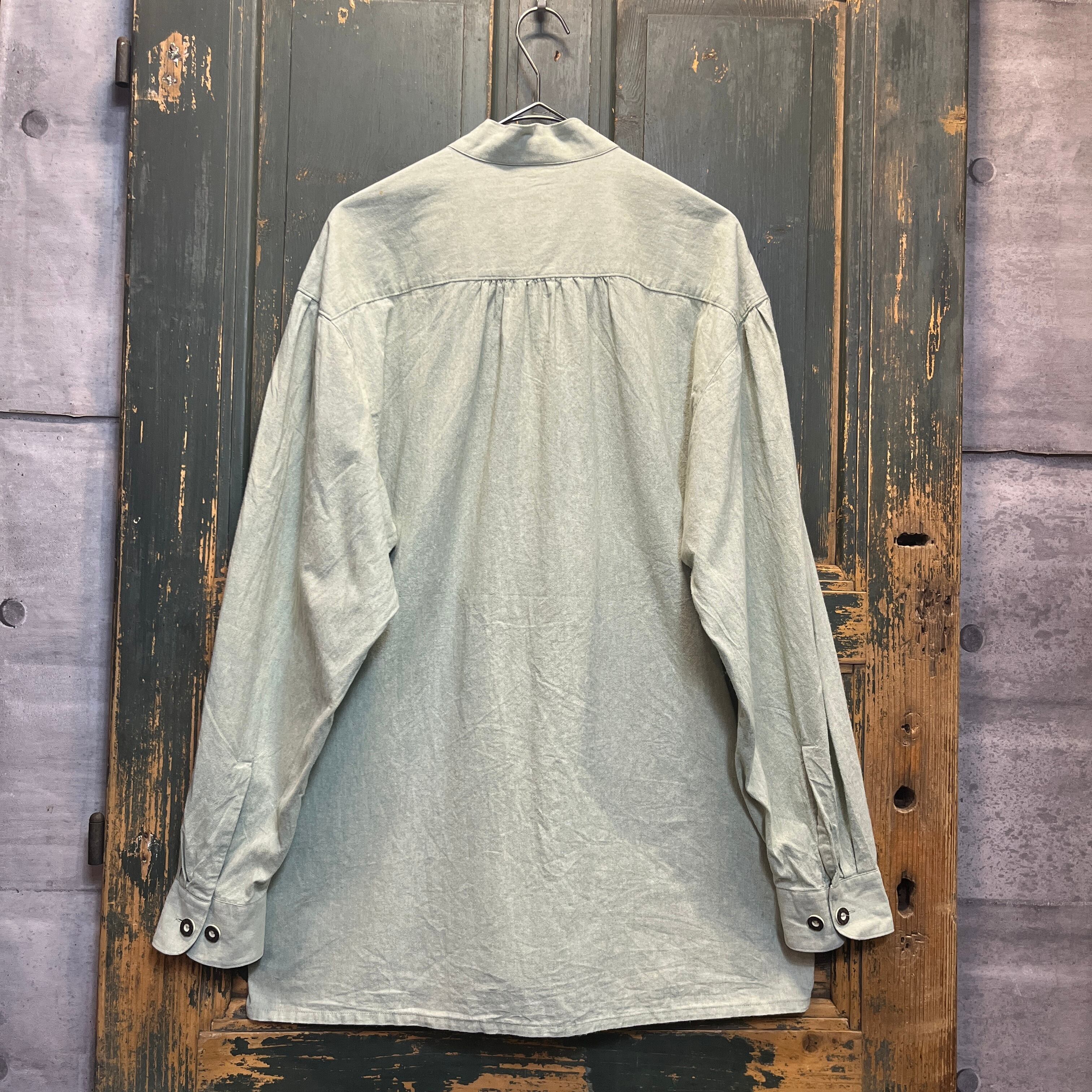 ボタンは比翼仕様、襟はバンドカラーのシュッとしたディテールです