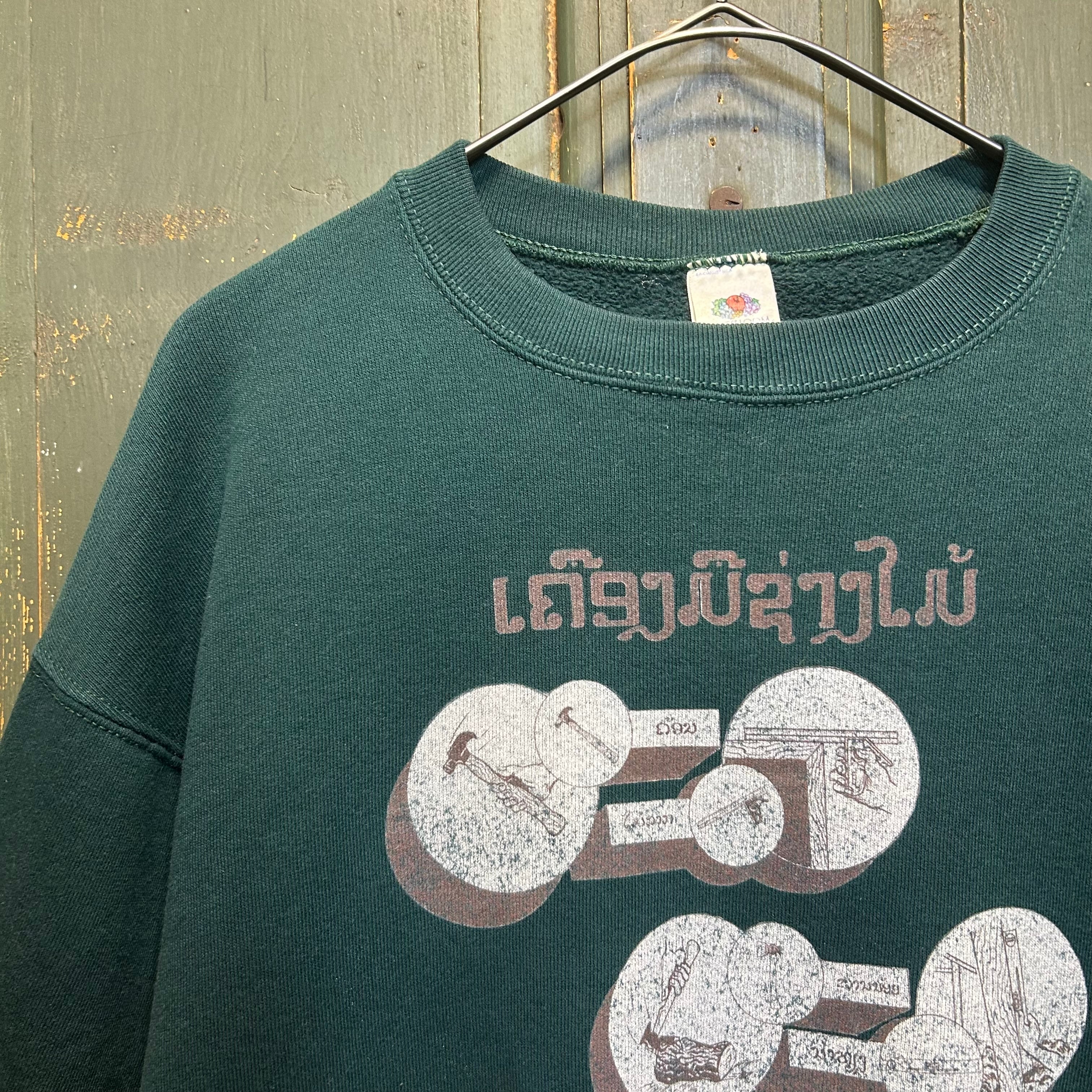ラオス語で「木工道具」を意味する文字と、木工道具のイラストが描かれたスウェットです。