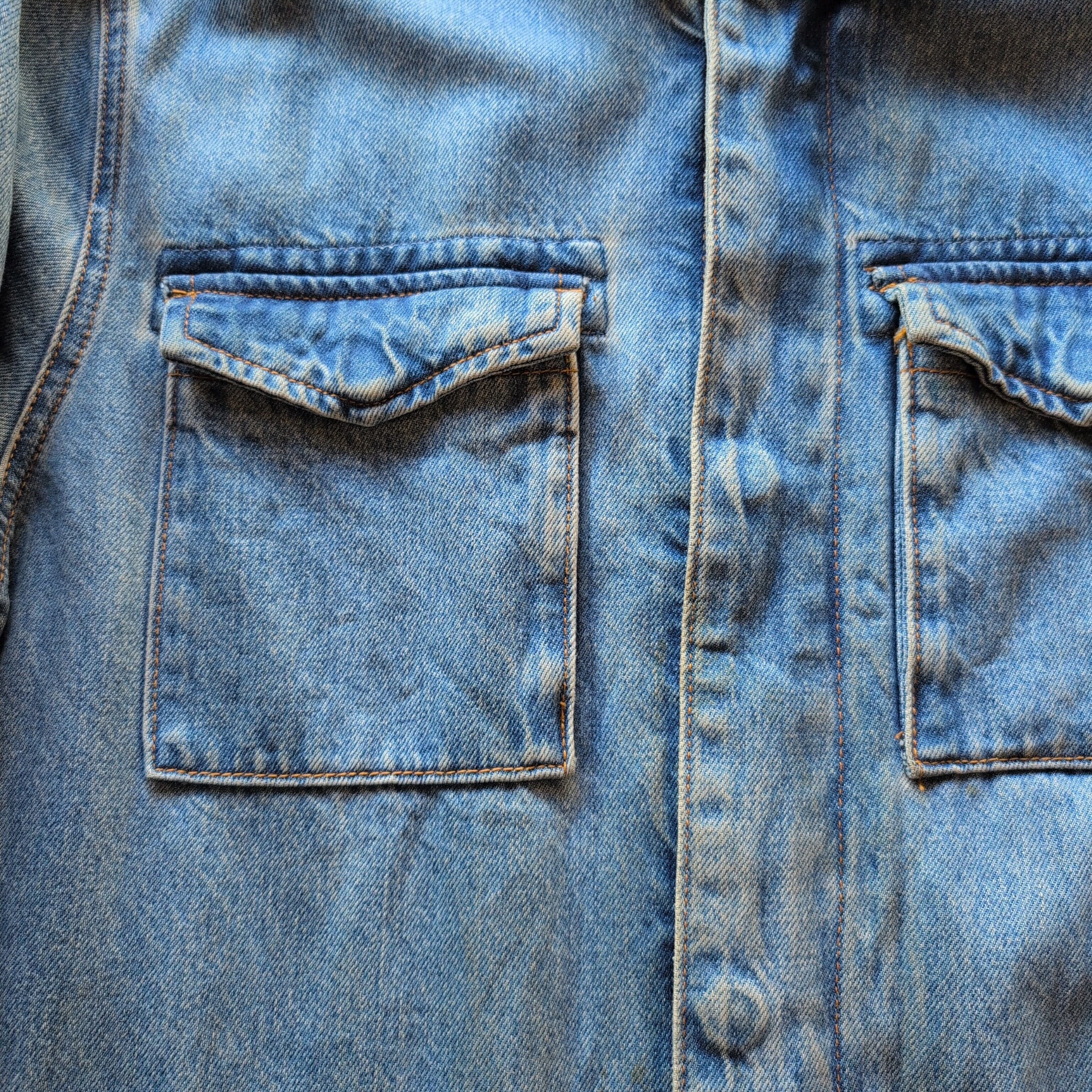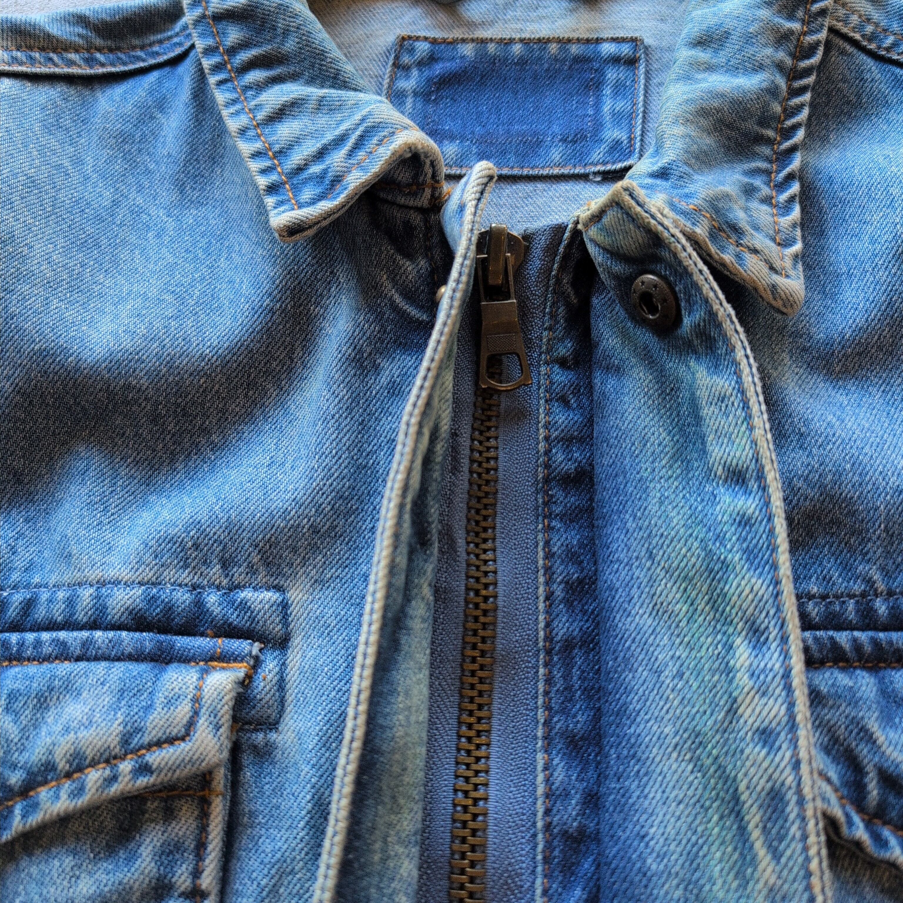 フロント部分に4つのポケットが付いたデニムジャケットです