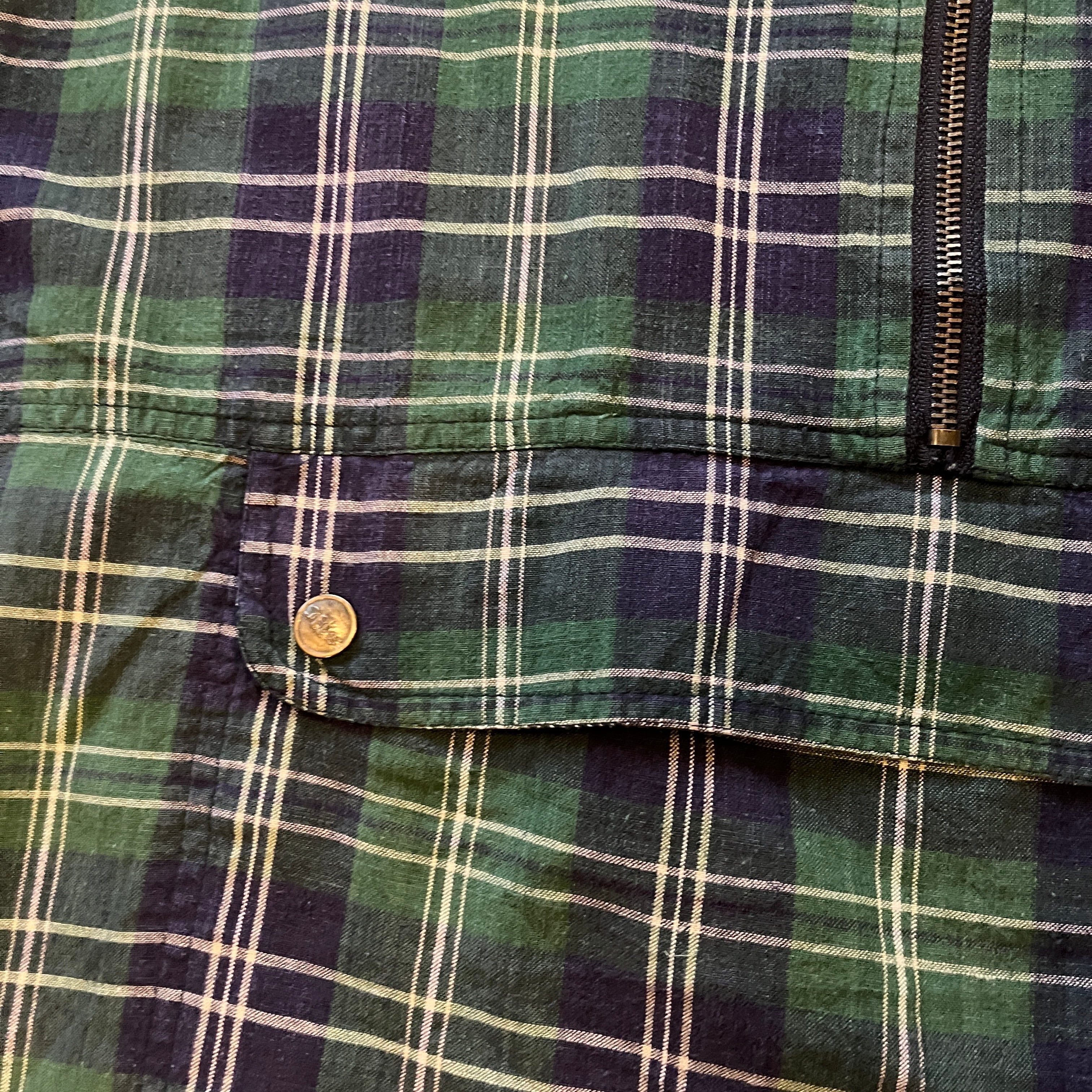 クラシックなグリーンとネイビーのチェック柄が印象的な1枚です