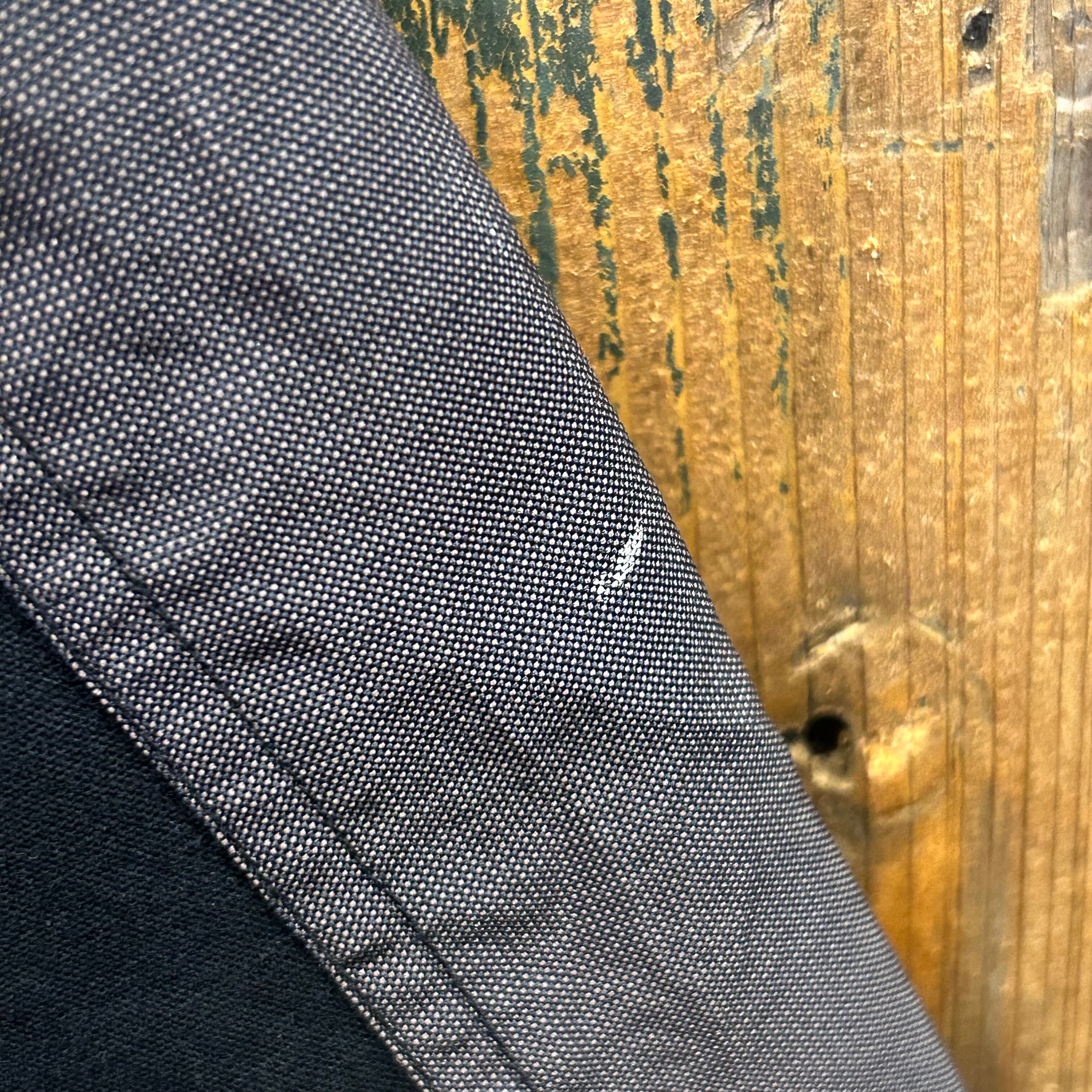 ブラックとチャコールのツートンになっていて、しっかり個性のあるデザインながらもコーデにも落とし込みやすい一着になっています。