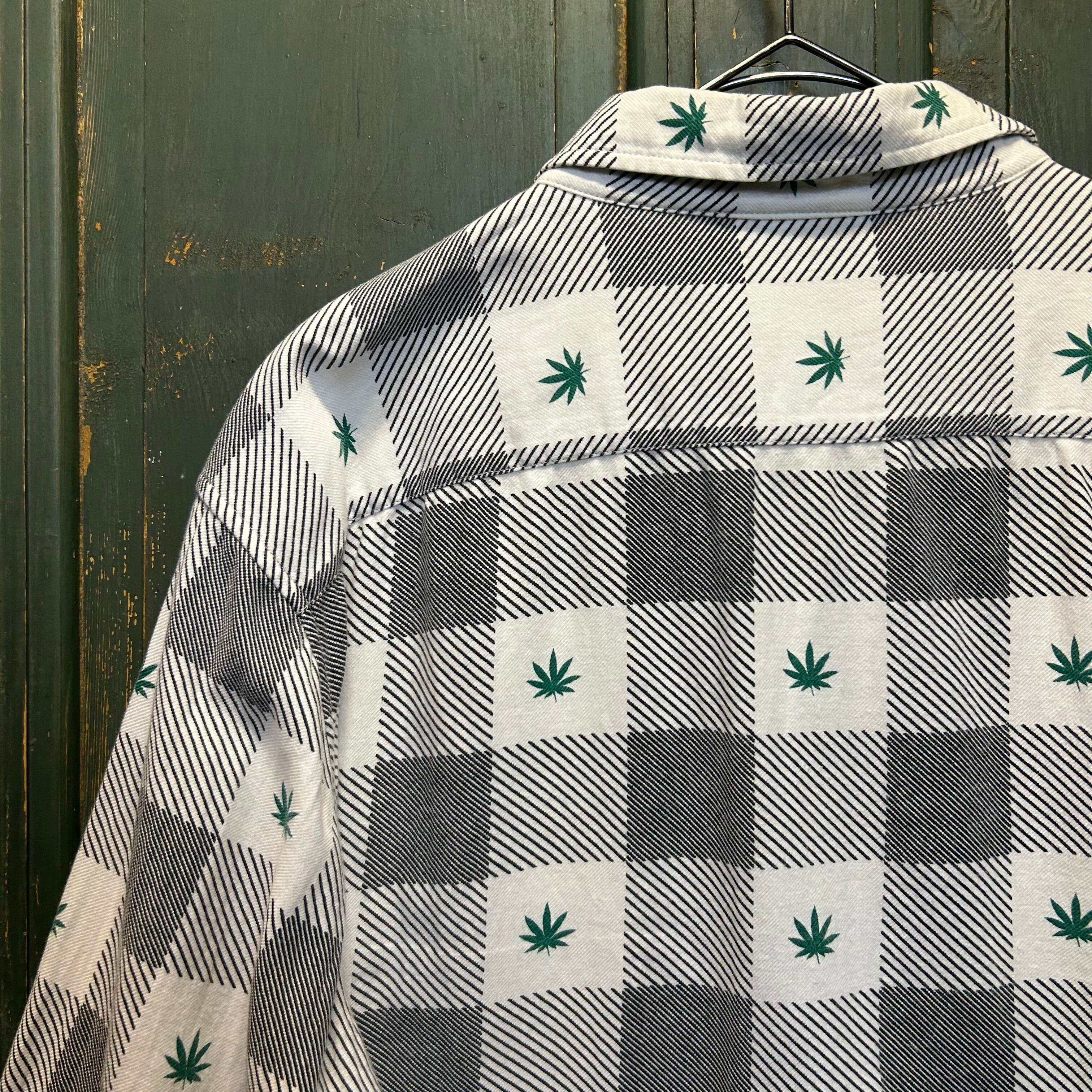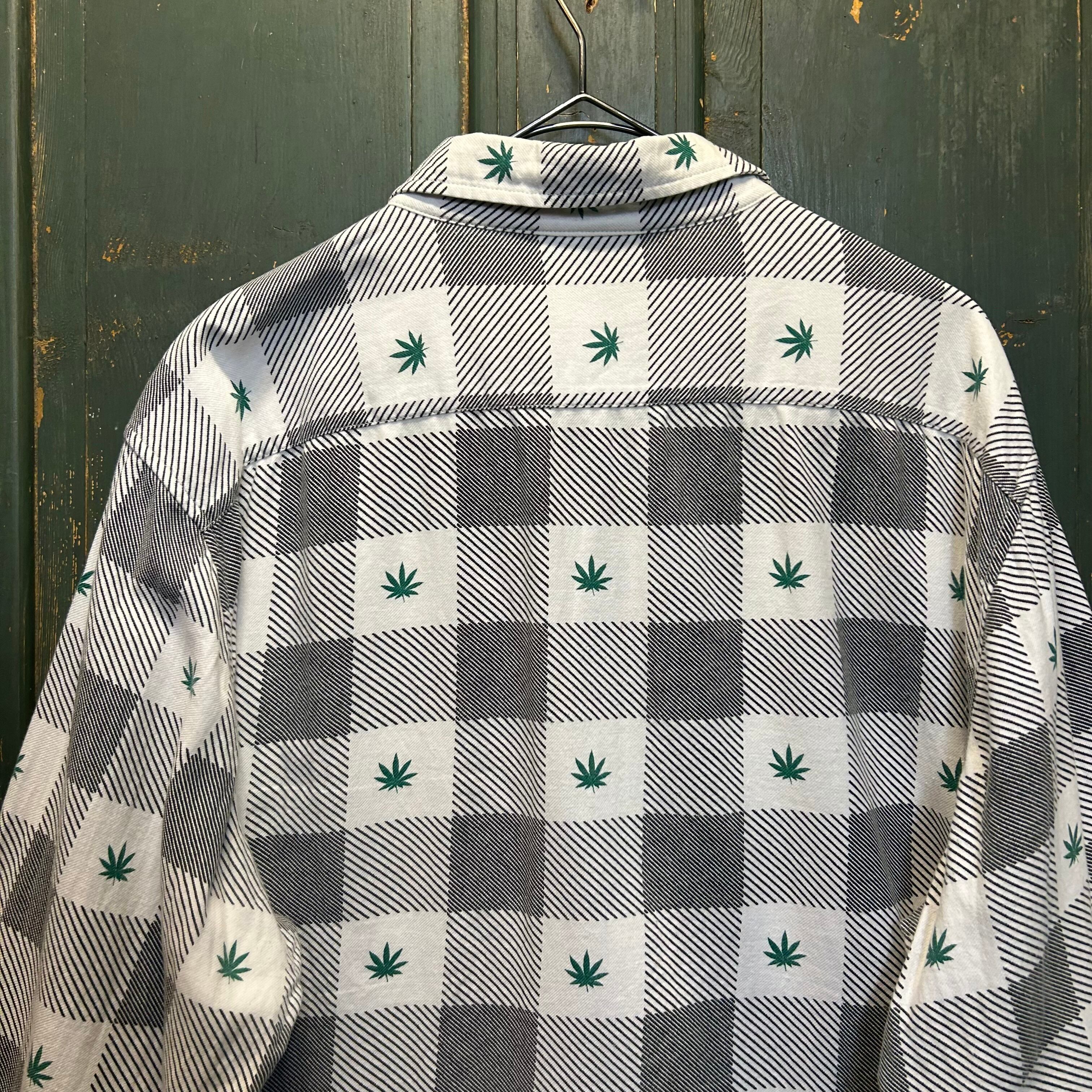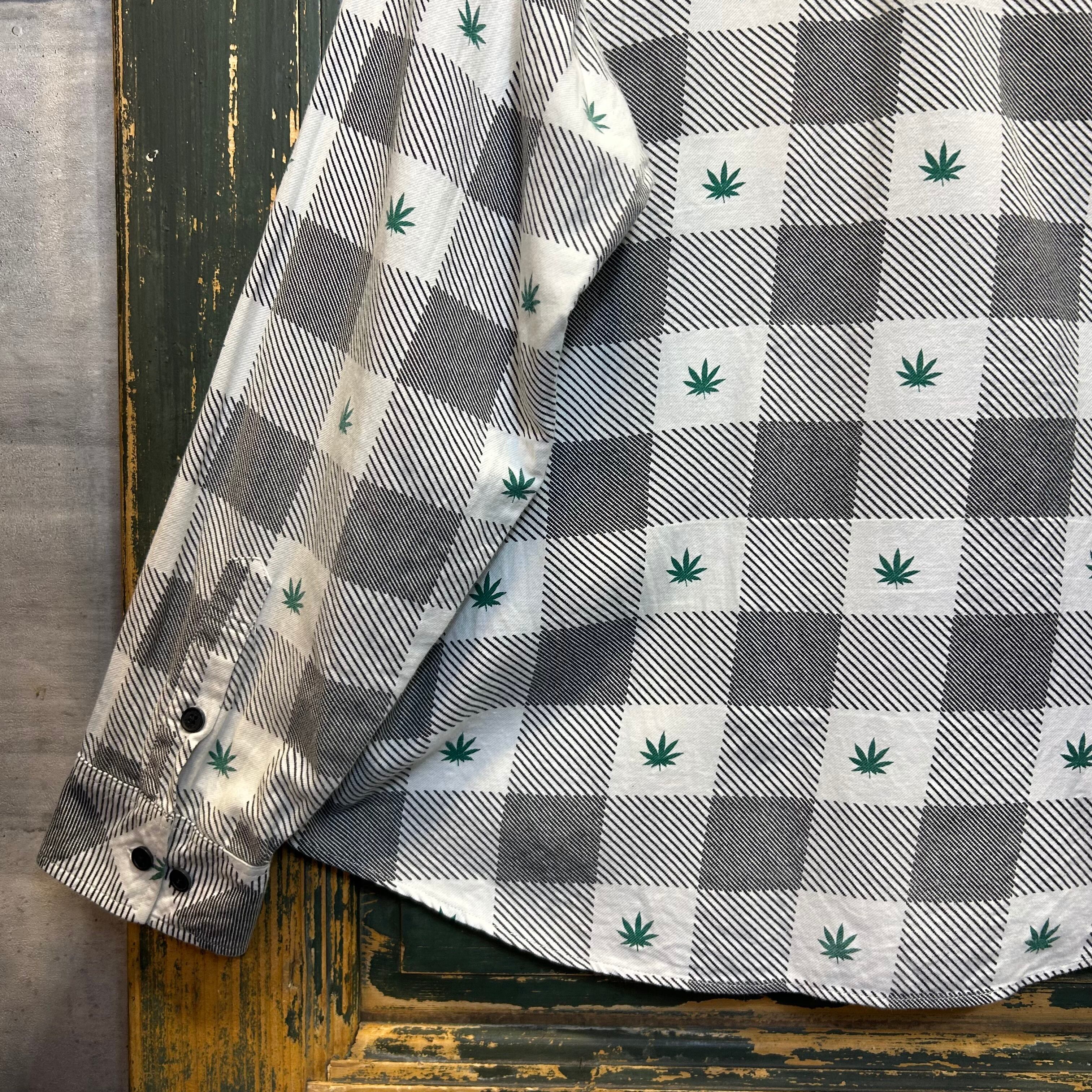 チェック柄の中に、ストリートブランドらしいイリーガルな雰囲気の漂う葉っぱのデザインが施されて、目を引く一着です。