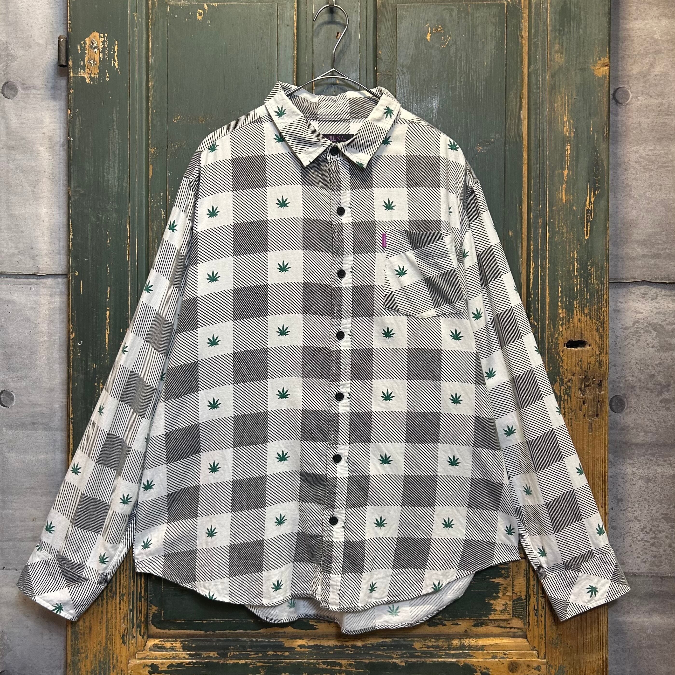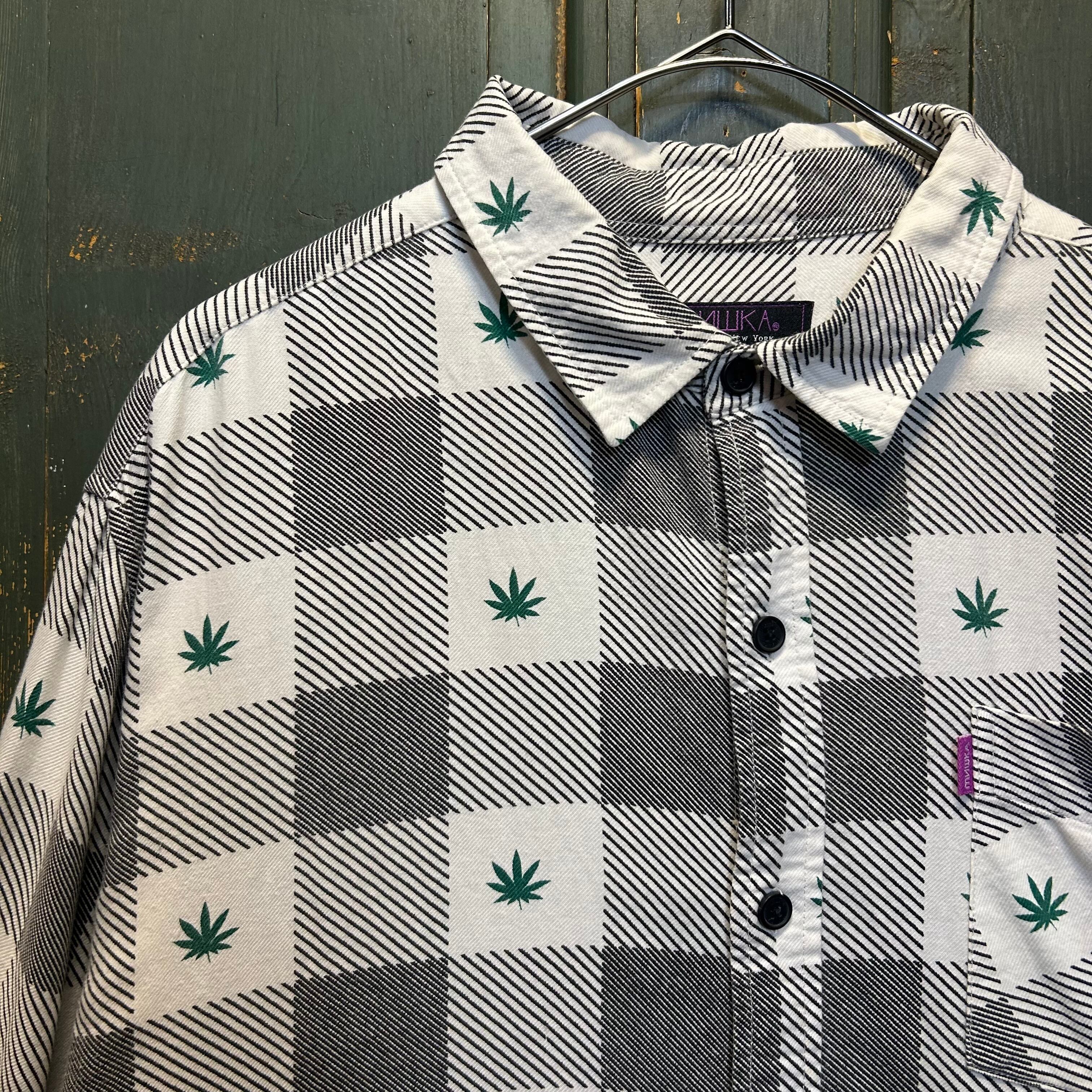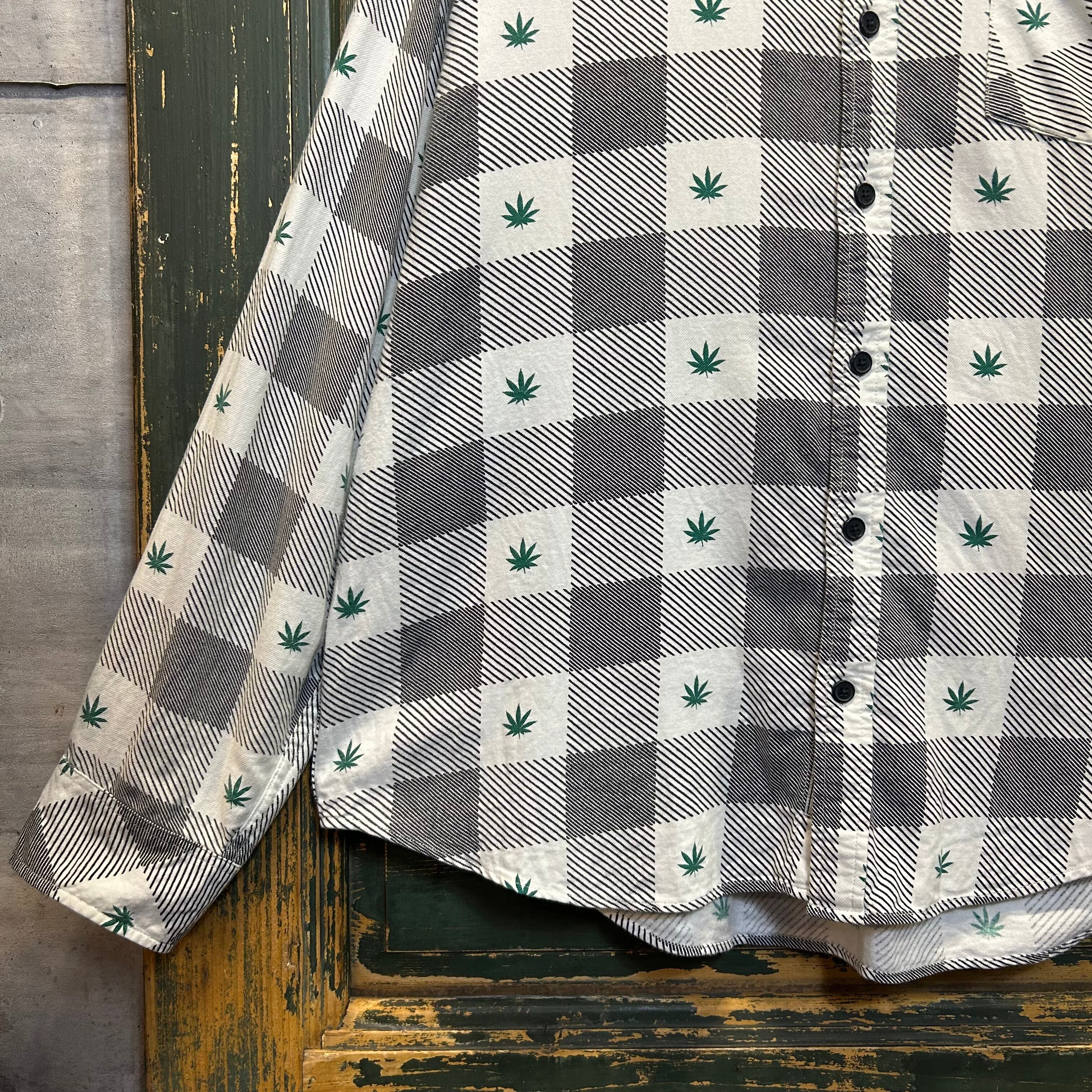 チェック柄の中に、ストリートブランドらしいイリーガルな雰囲気の漂う葉っぱのデザインが施されて、目を引く一着です。