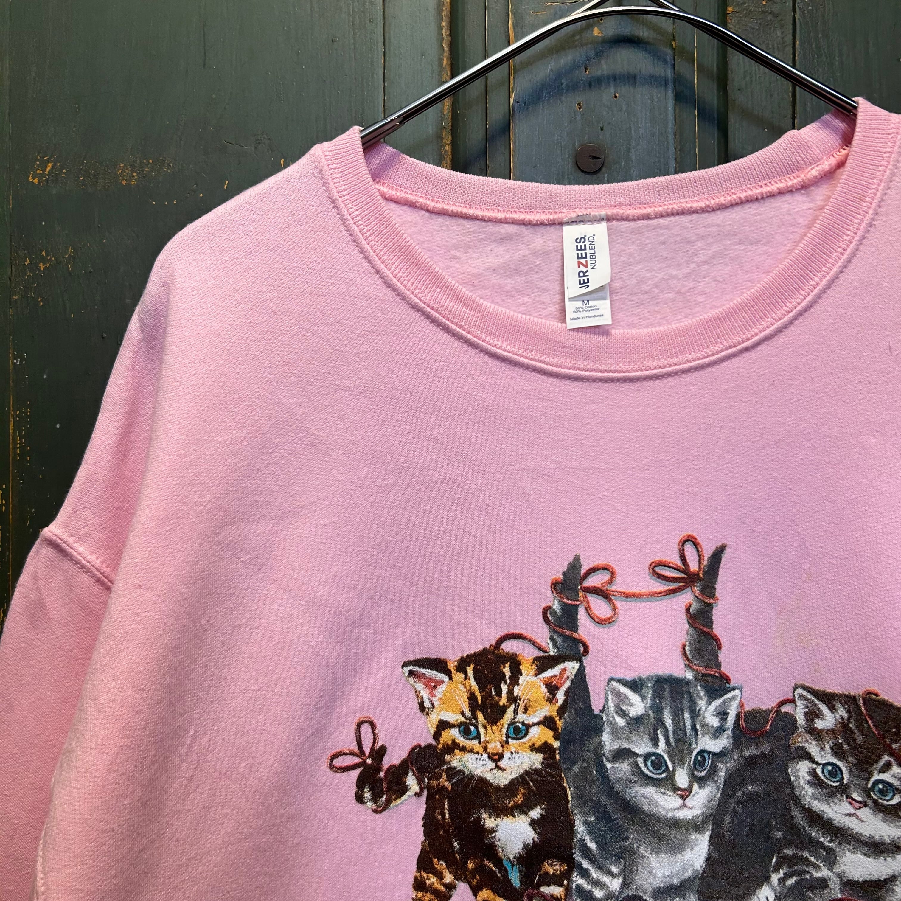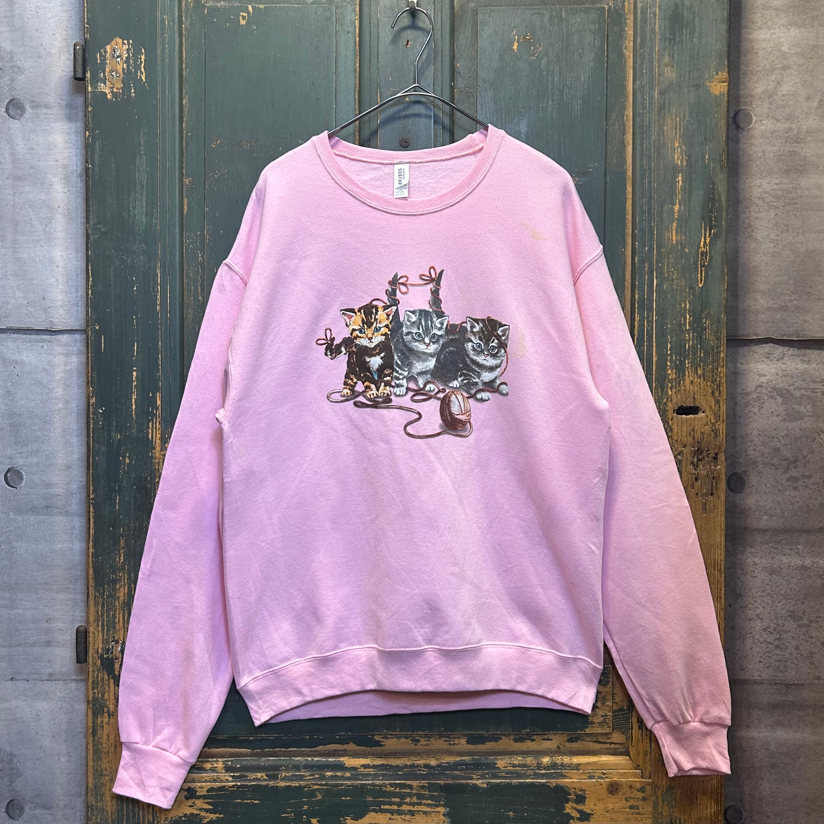 3匹の子猫が毛糸玉と遊んでいる様子が描かれたスウェットです。