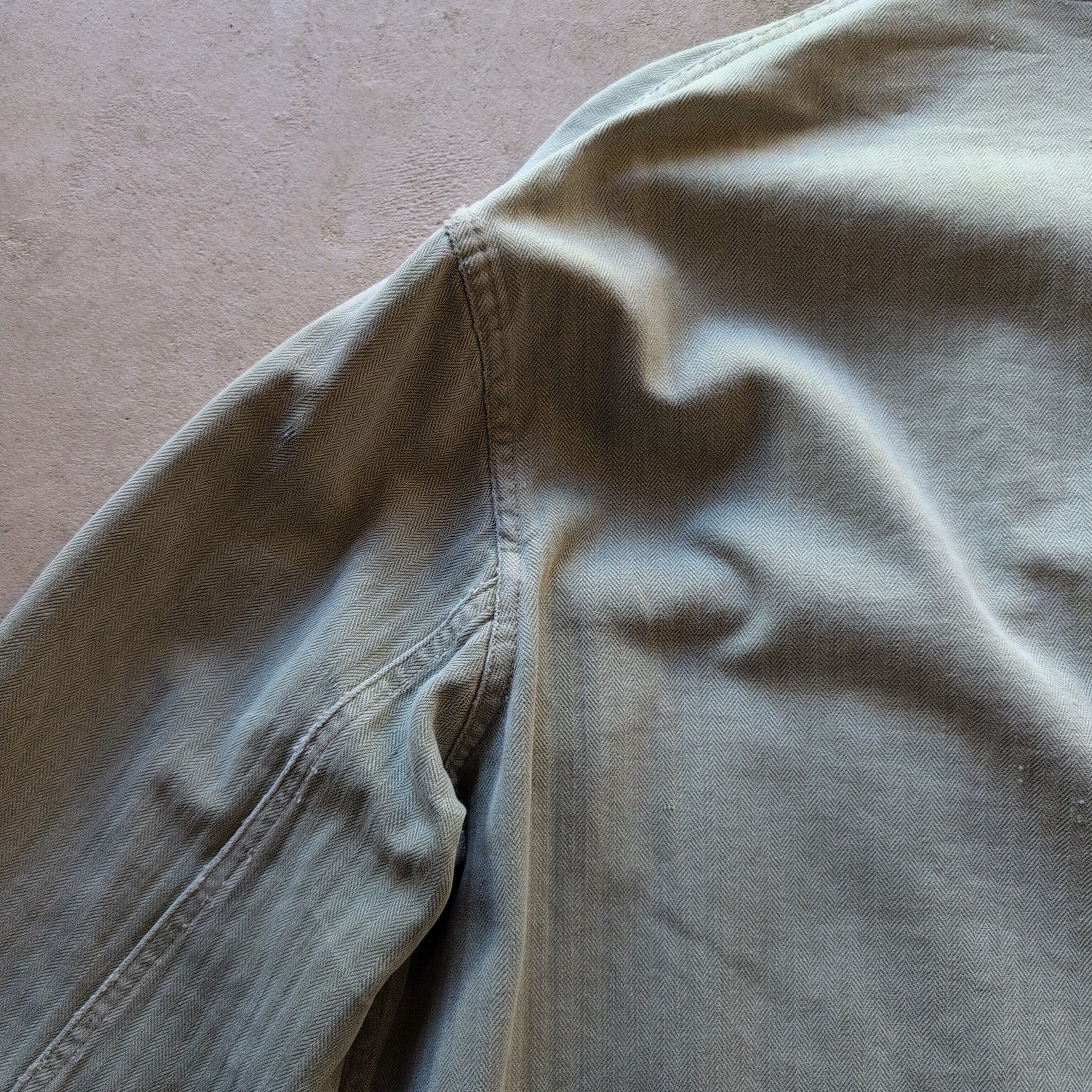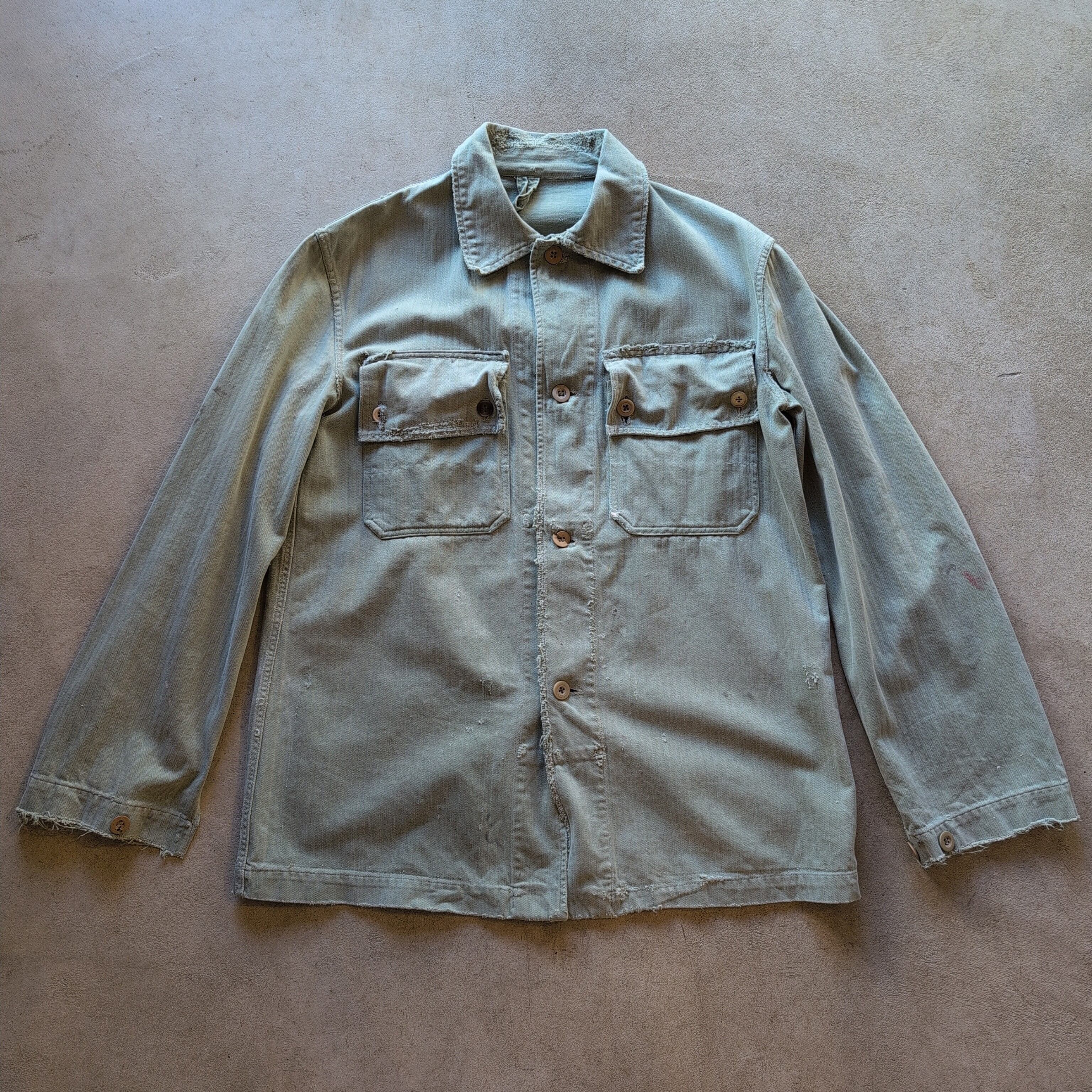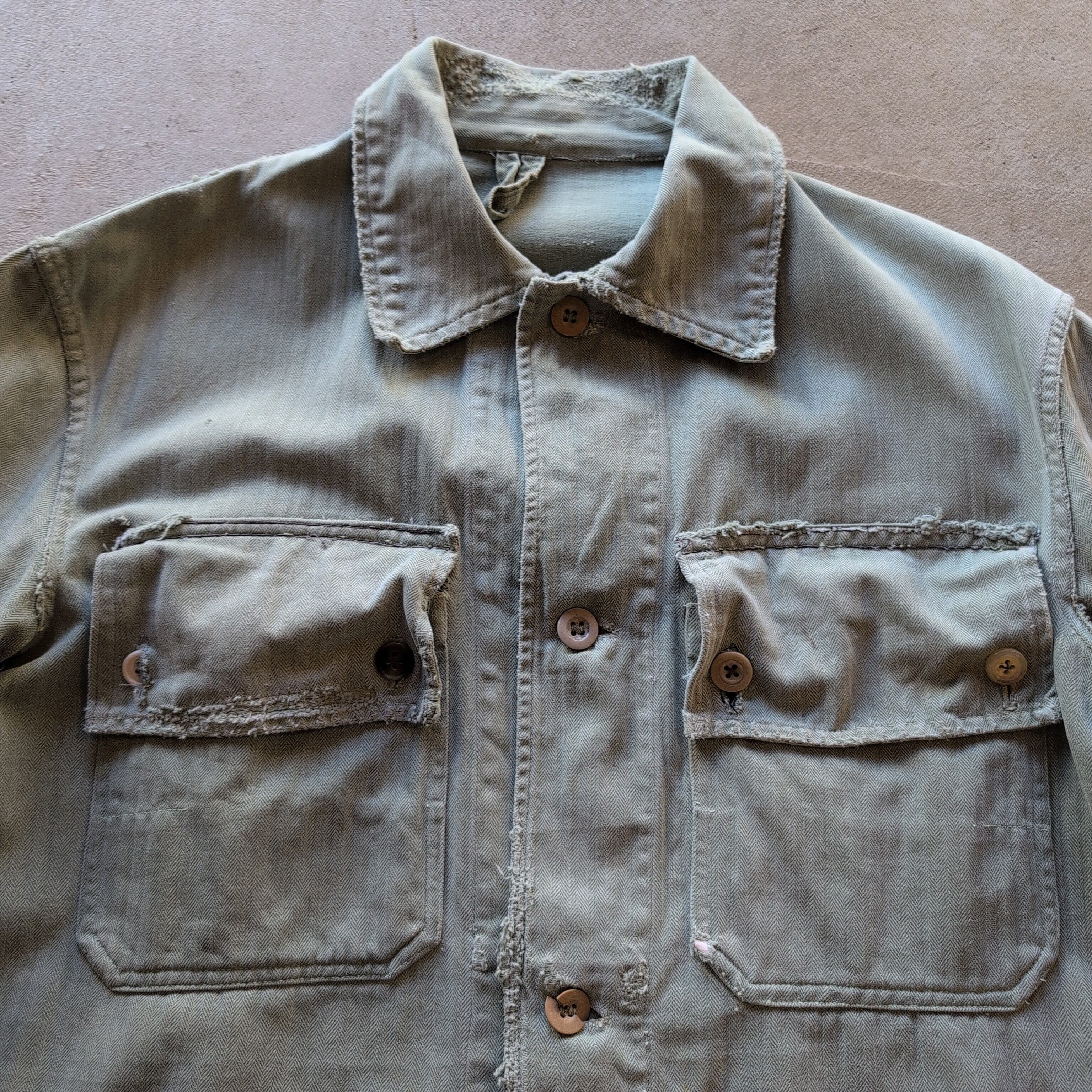 ミリタリージャケットぽい形と、ダメージや汚れが相まってヴィンテージ感の漂う1枚です