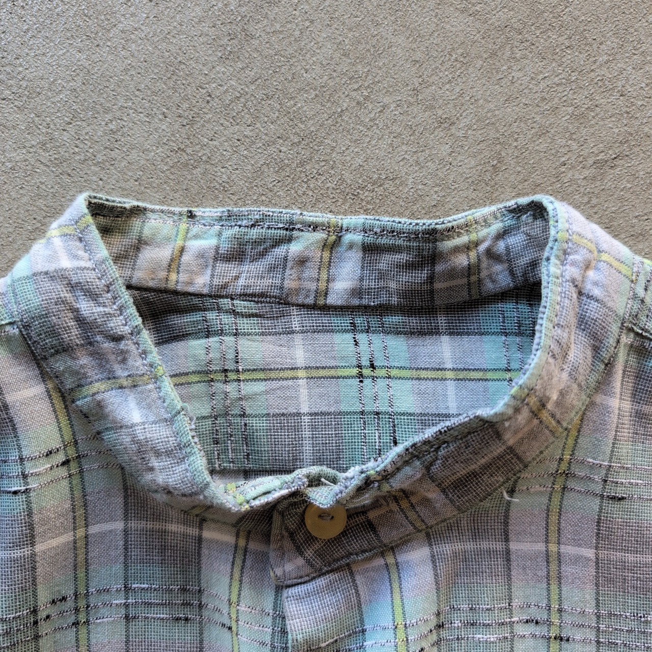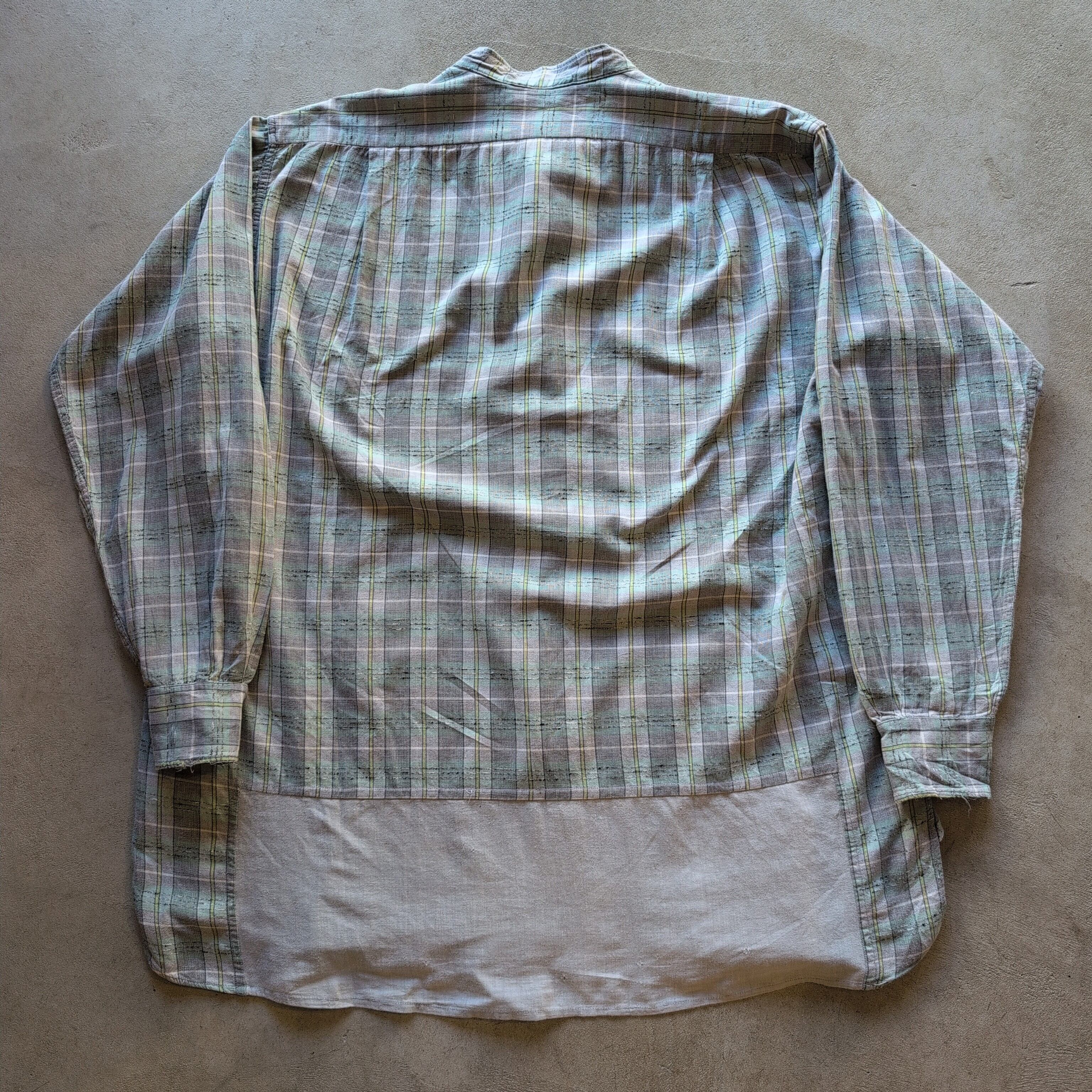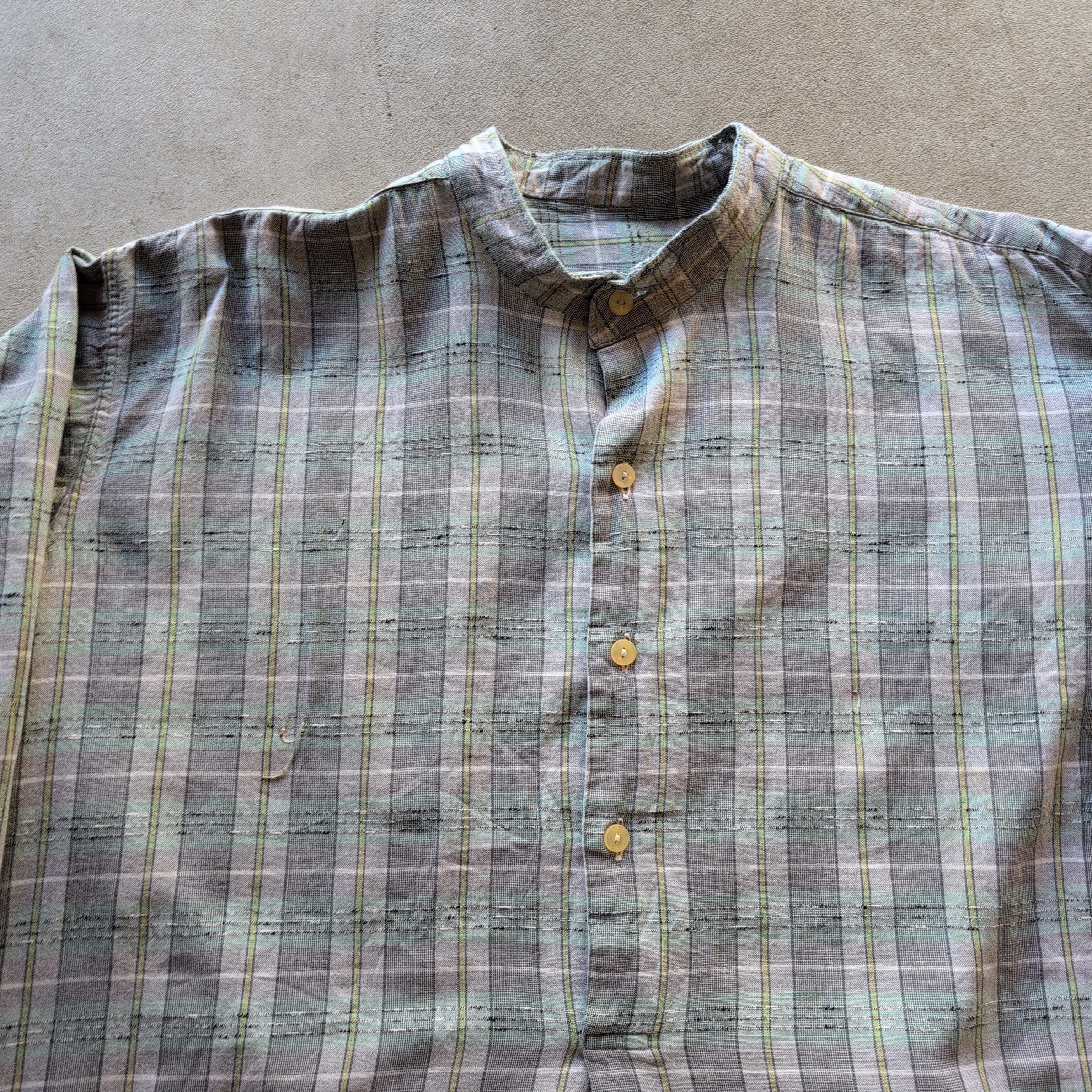 "Stand Collar Type Plaid Pattern Design L/S Shirt"