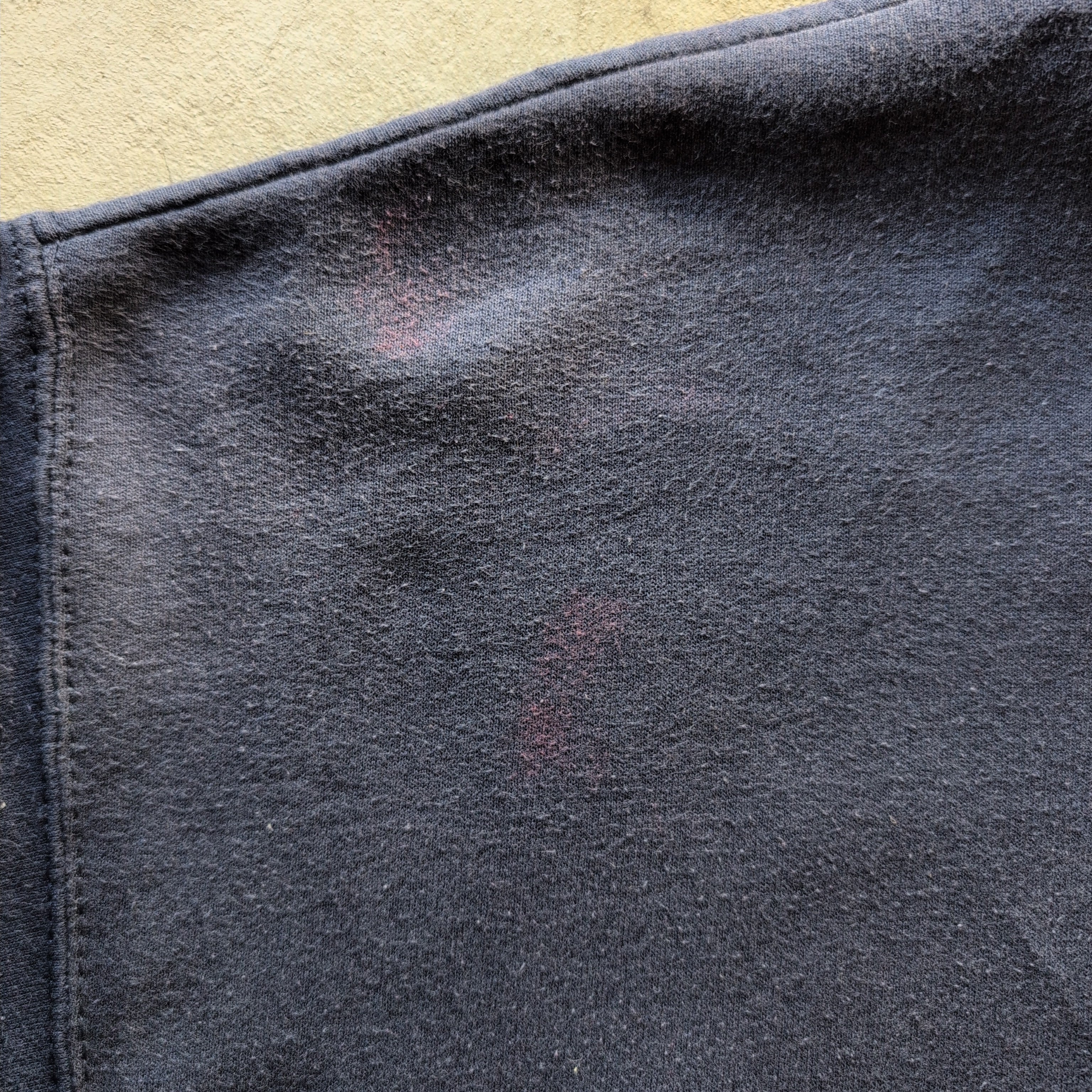 落ち着いたダークカラーにオレンジで描かれている文字が映え、古着らしい雰囲気がある1枚だと思います