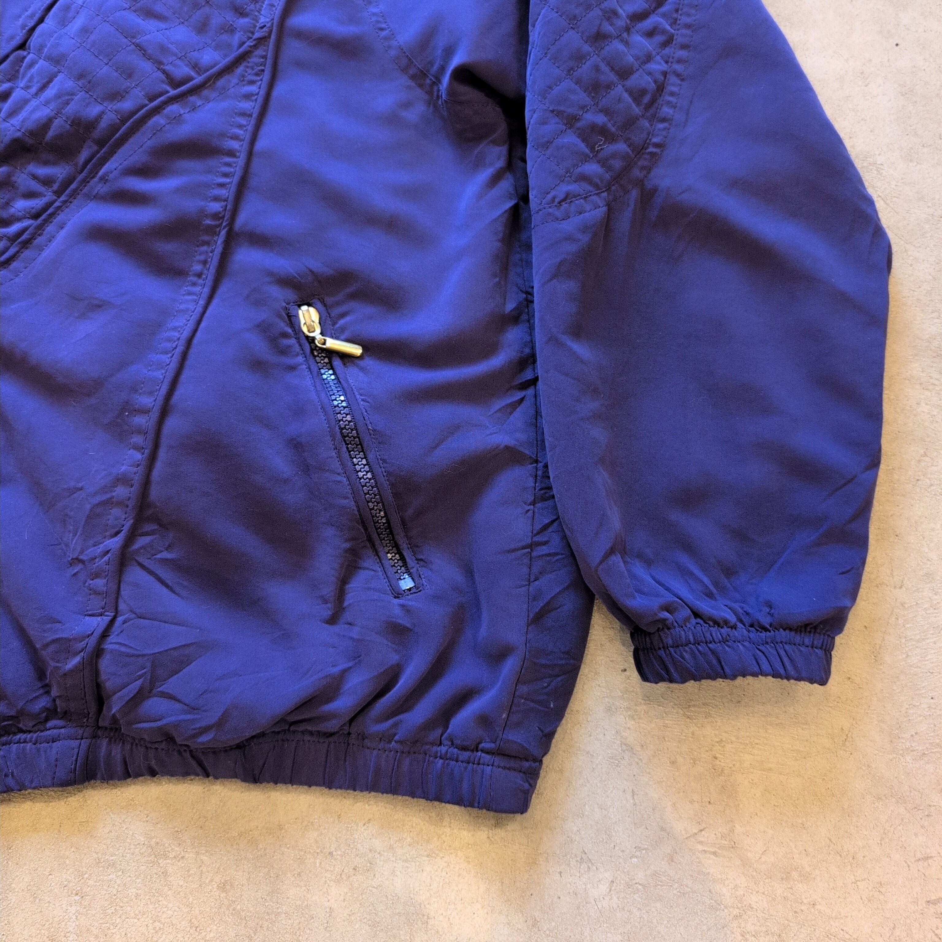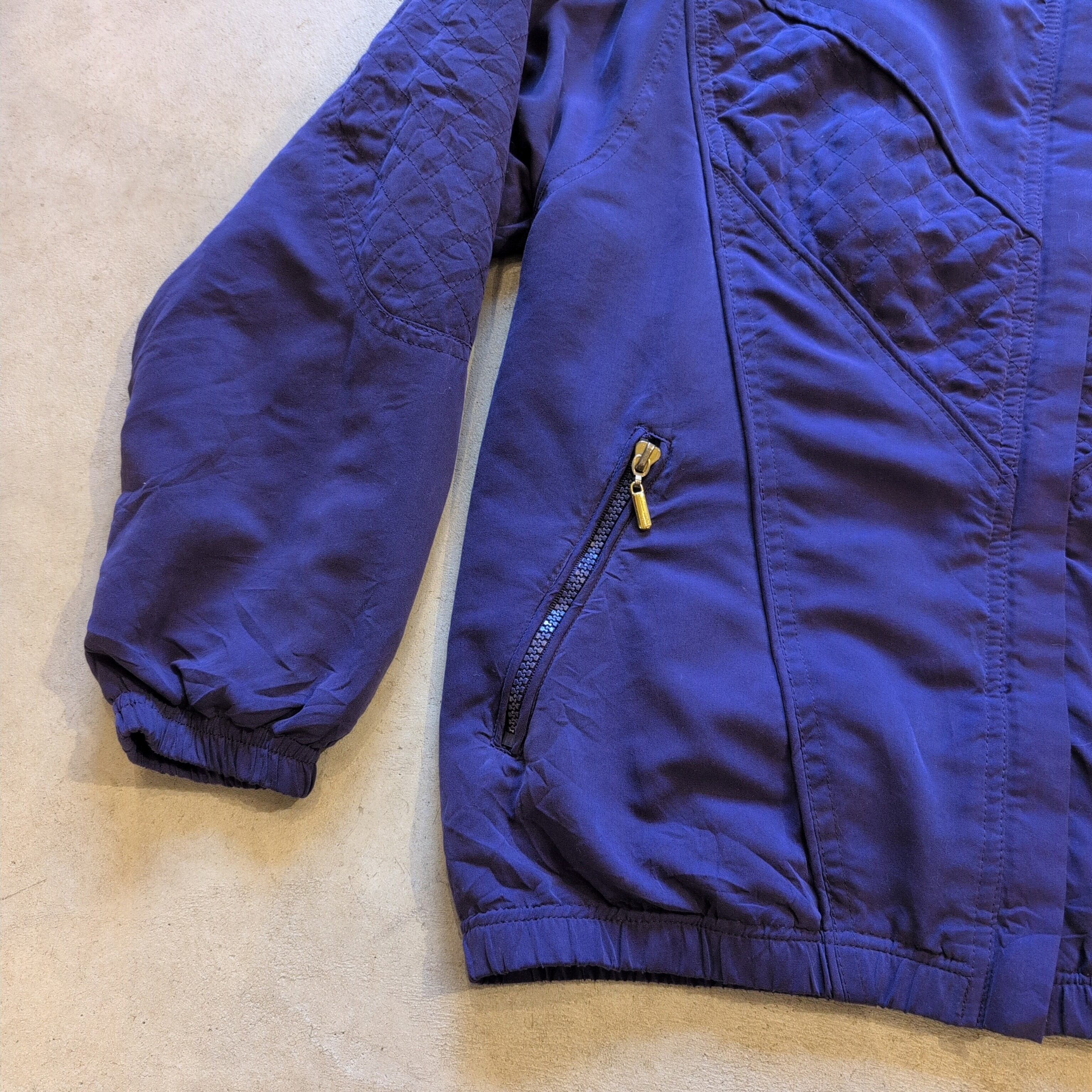 独特のキルティングデザインと金色のジッパーが特徴的で映える1枚です