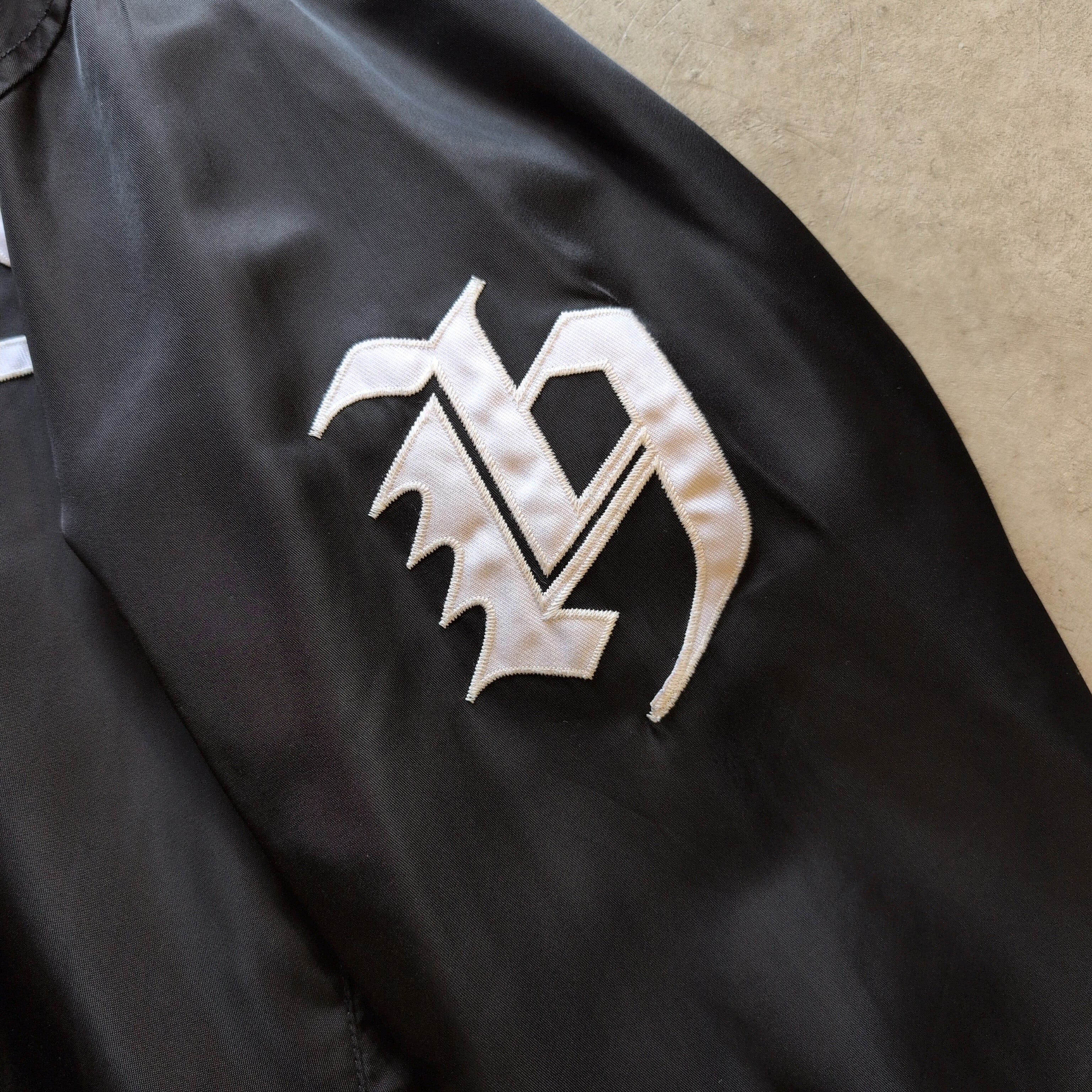 王道のスポーティさと洗練された雰囲気を両立し、フロントの大胆な刺繍デザインが目を引く1枚だと思います