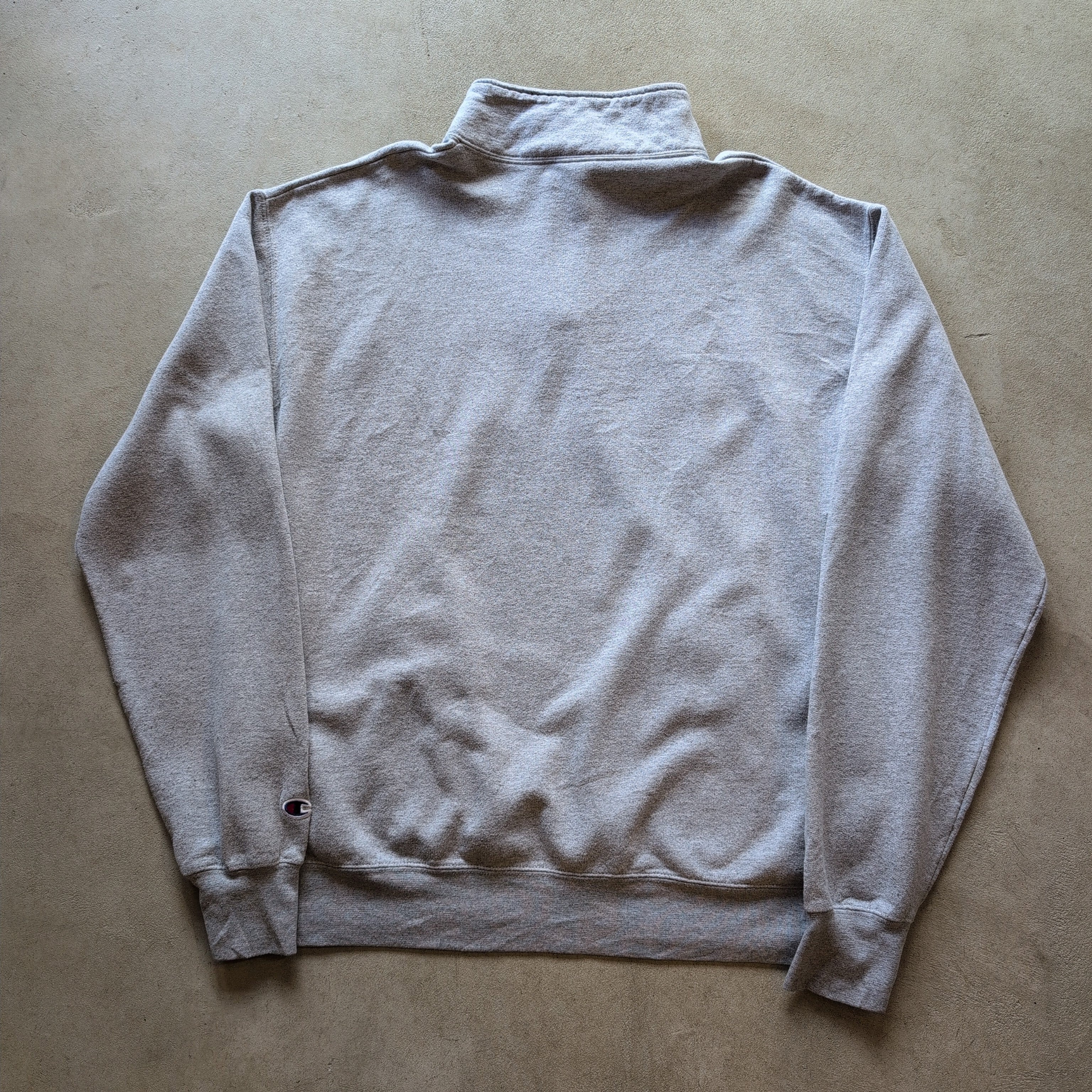 チャンピオンのグレーのハーフジップタイプのスウェットです