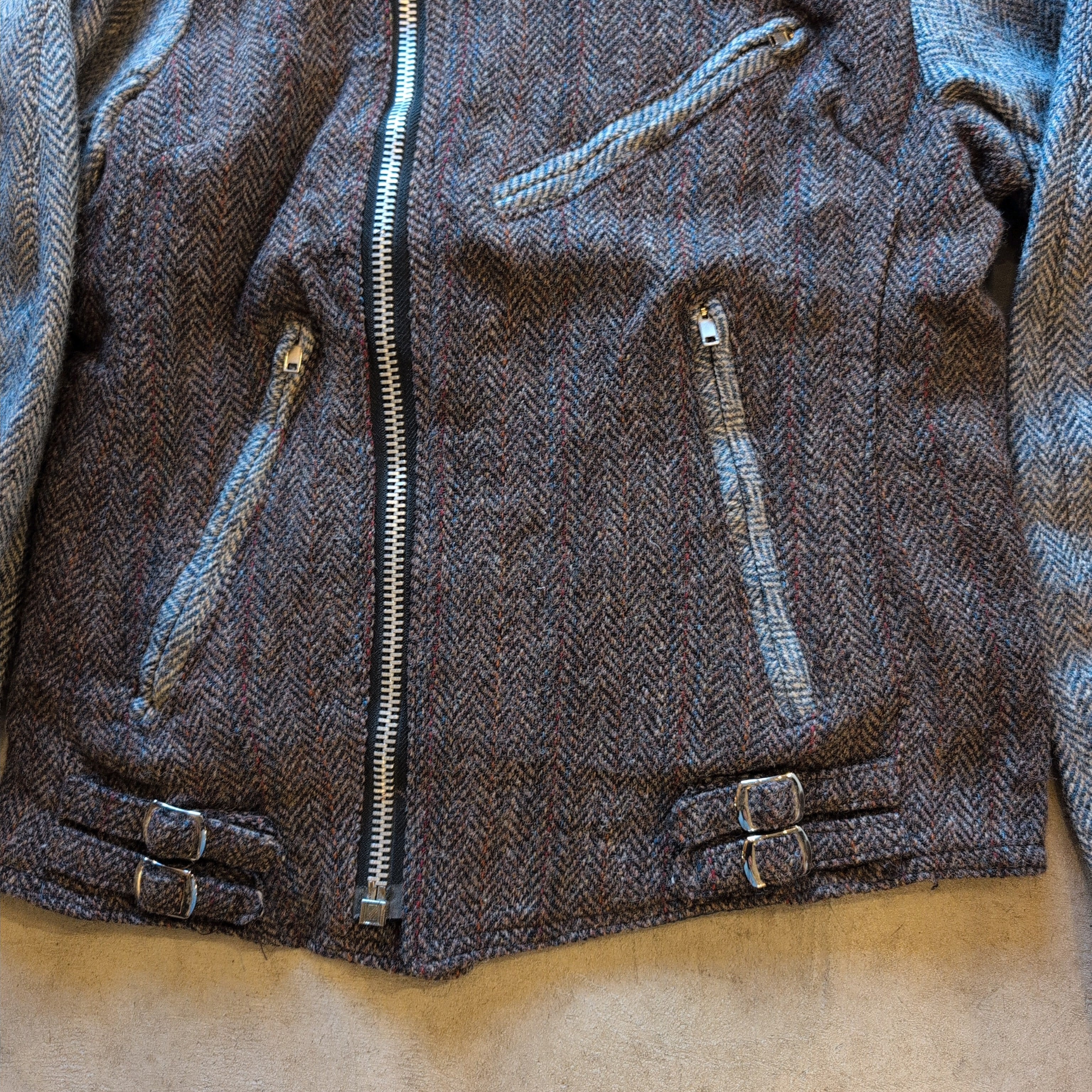 ウールのような素材でヘリンボーン柄のダブルライダースジャケットです
