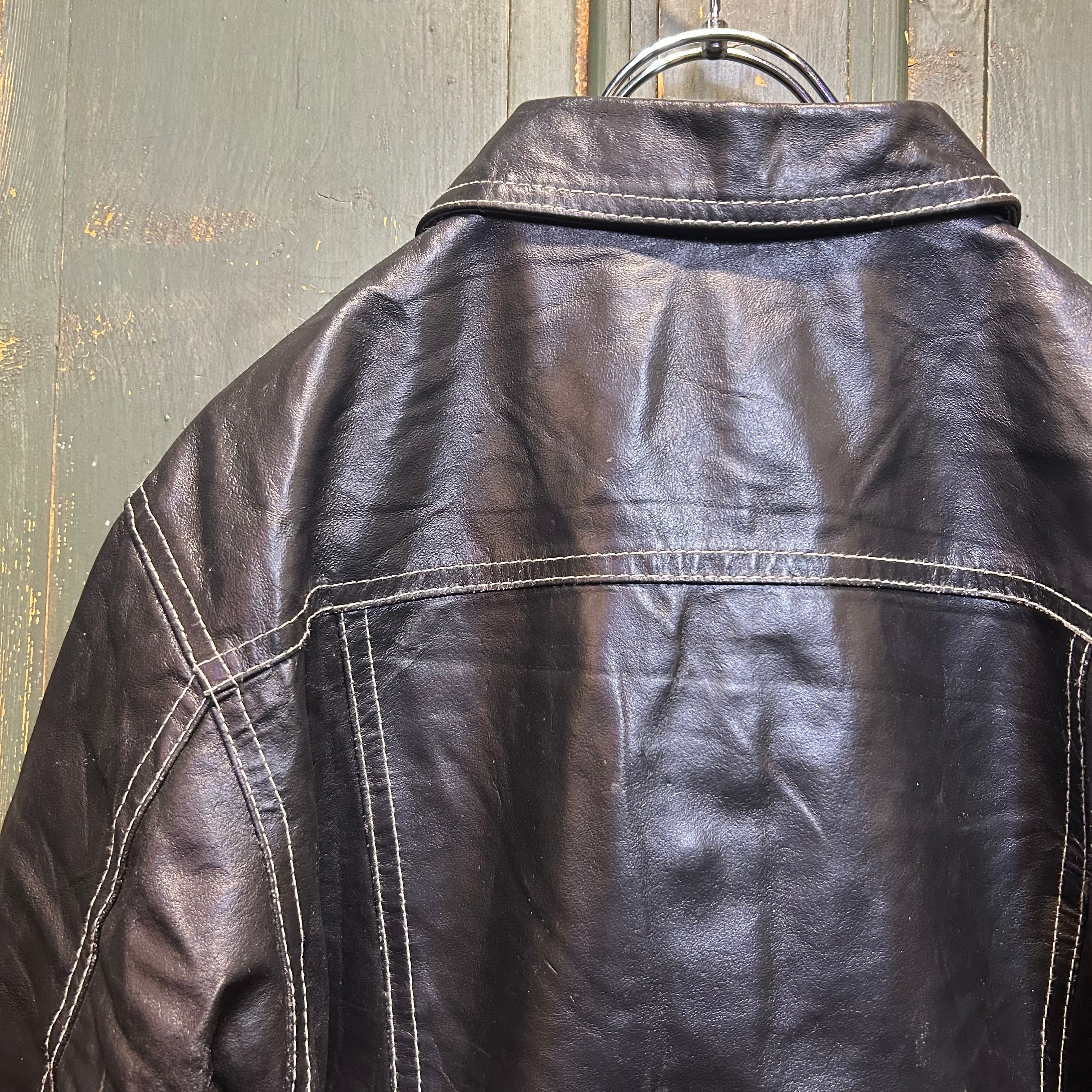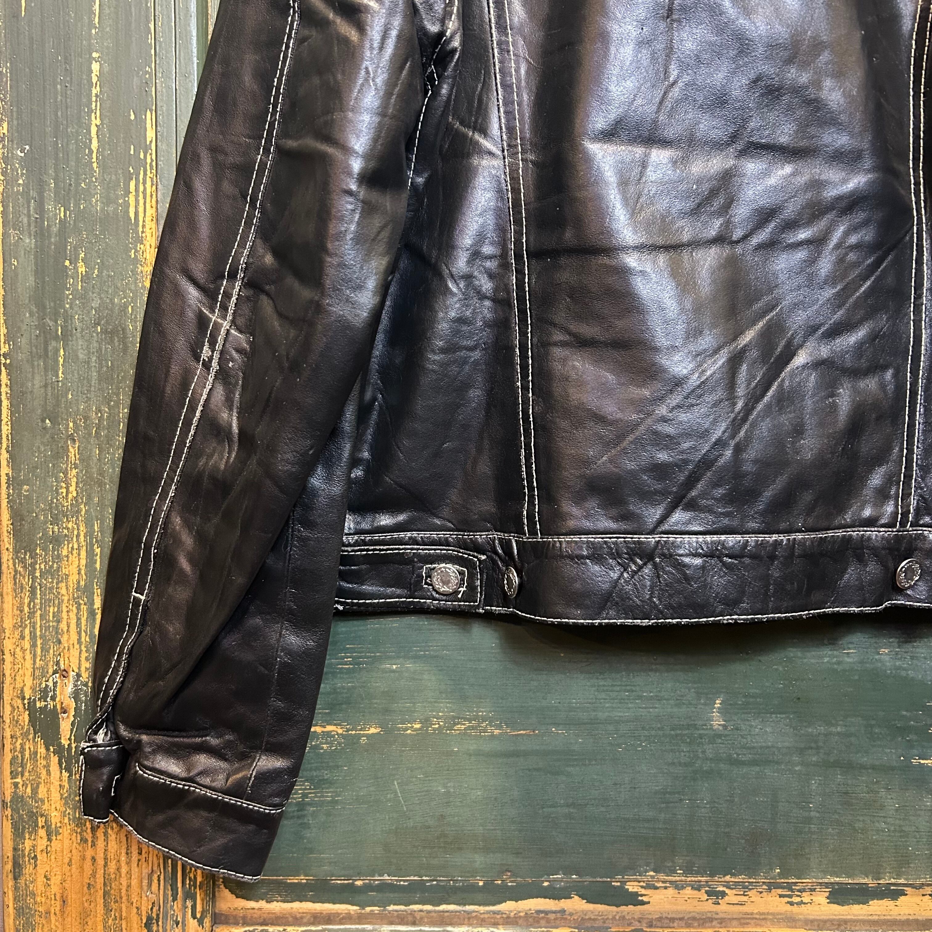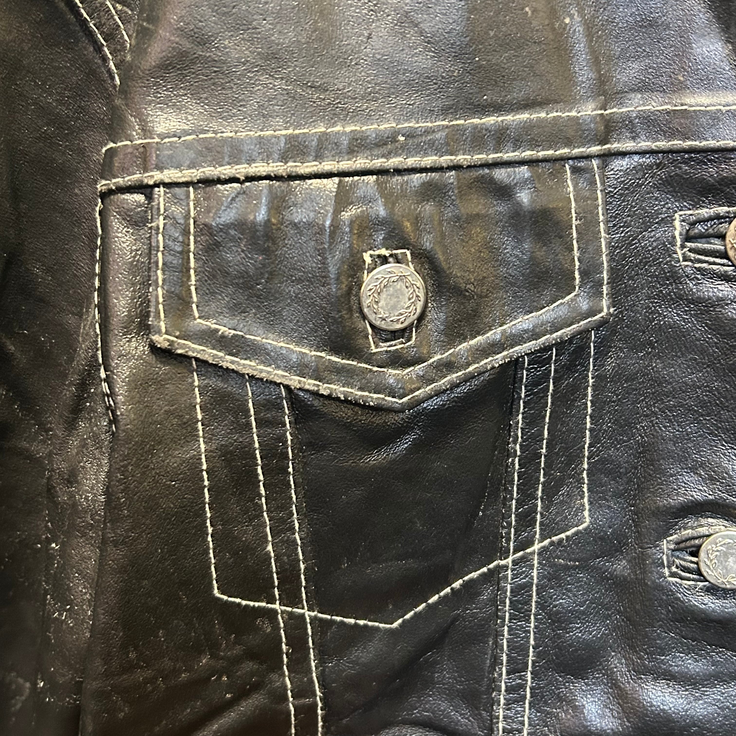 デニム素材の多い形のジャケットですが、こちらはレザー素材になっていて、あまり見かけない変わり種の一着。
