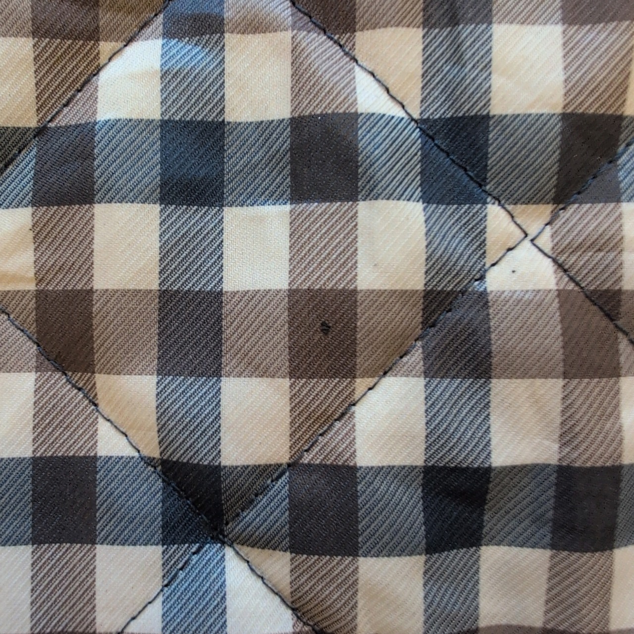 アースカラーを基調にしたチェック柄のキルティングジャケットです