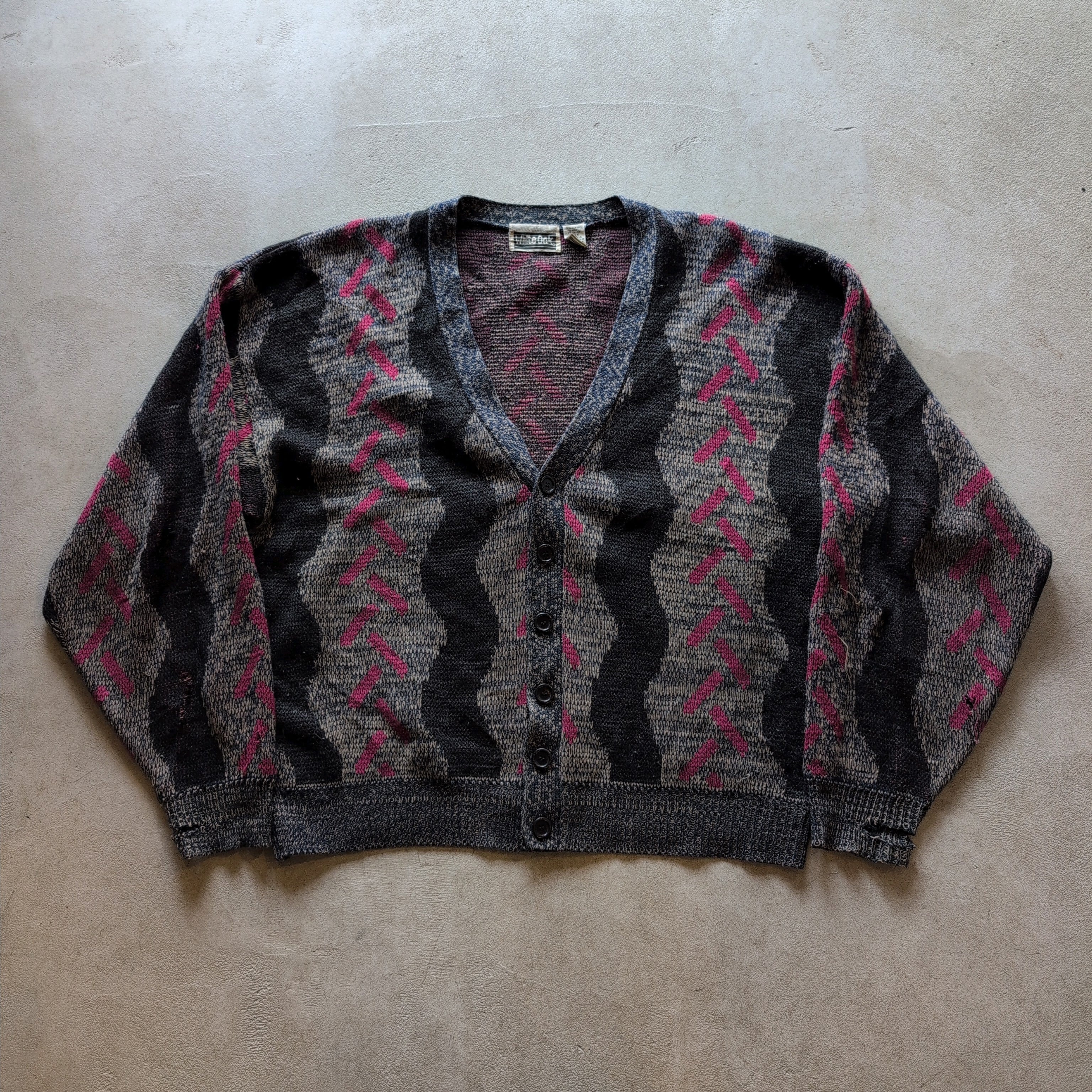 黒や赤で描かれている波のような総柄デザインが魅力的な1枚です