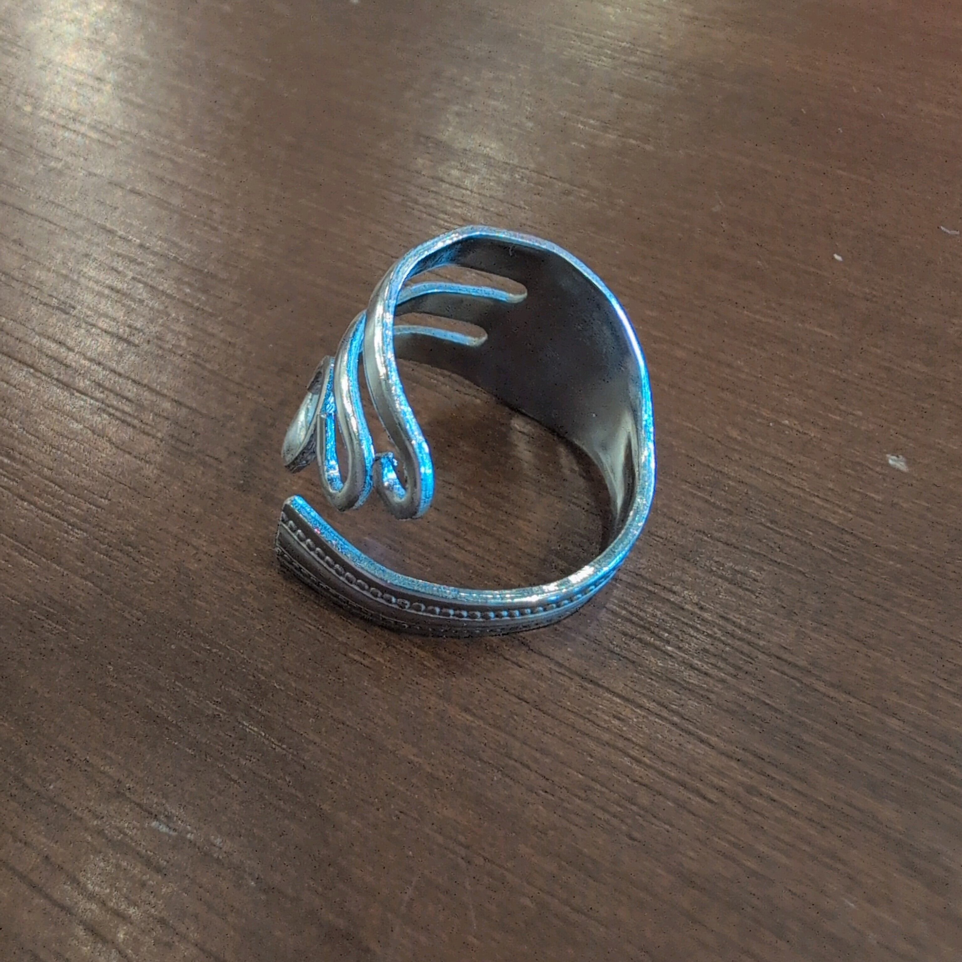フォークを曲げて作られたリングです