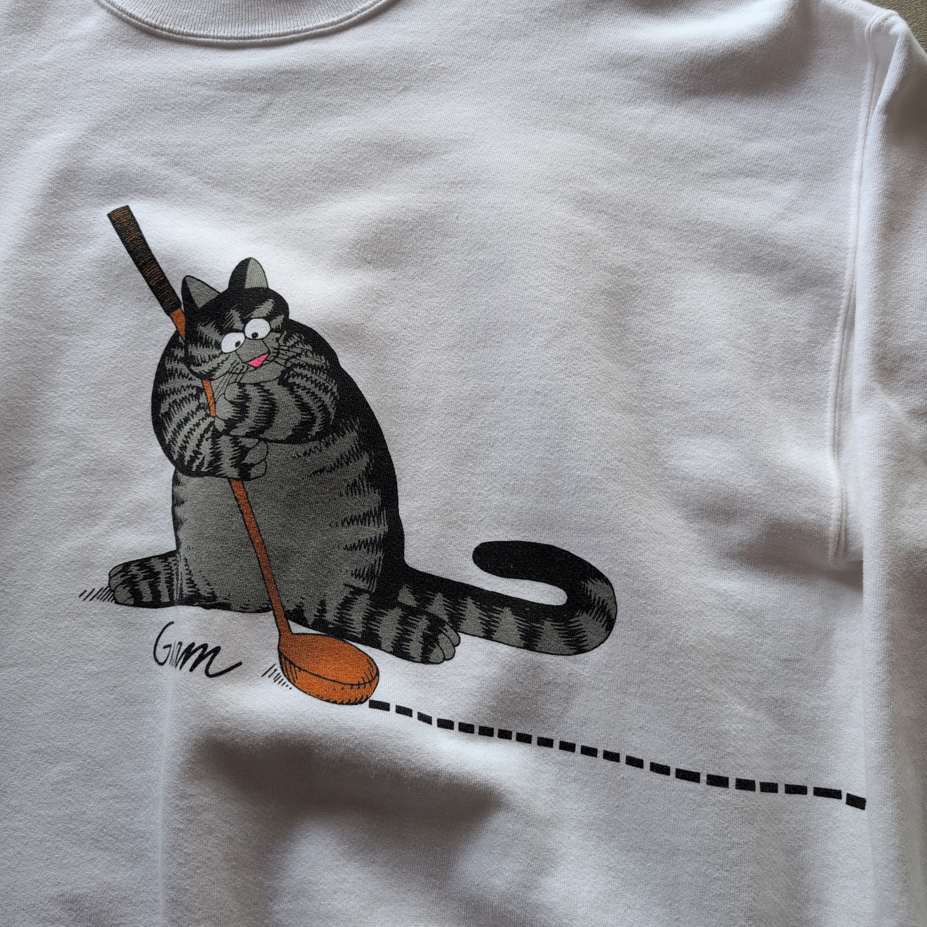 クラブを構えるクリバンキャットのゆるい表情と、どこか力の抜けたタッチがたまらない1枚です