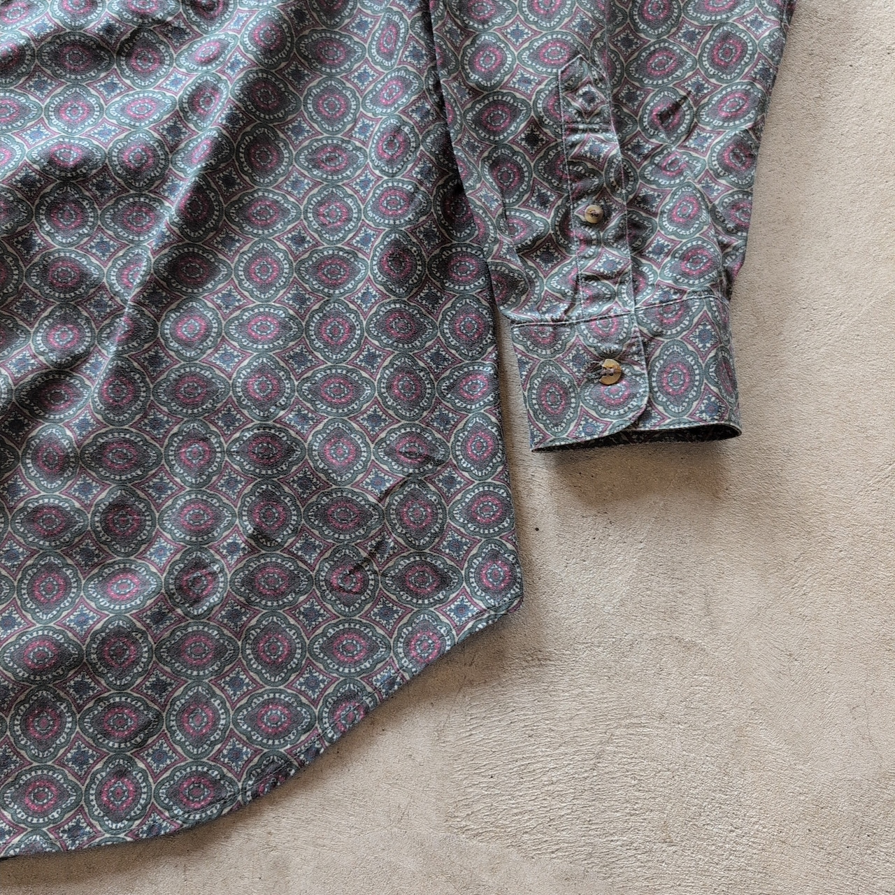 "dark color all over pattern design L/S shirt"