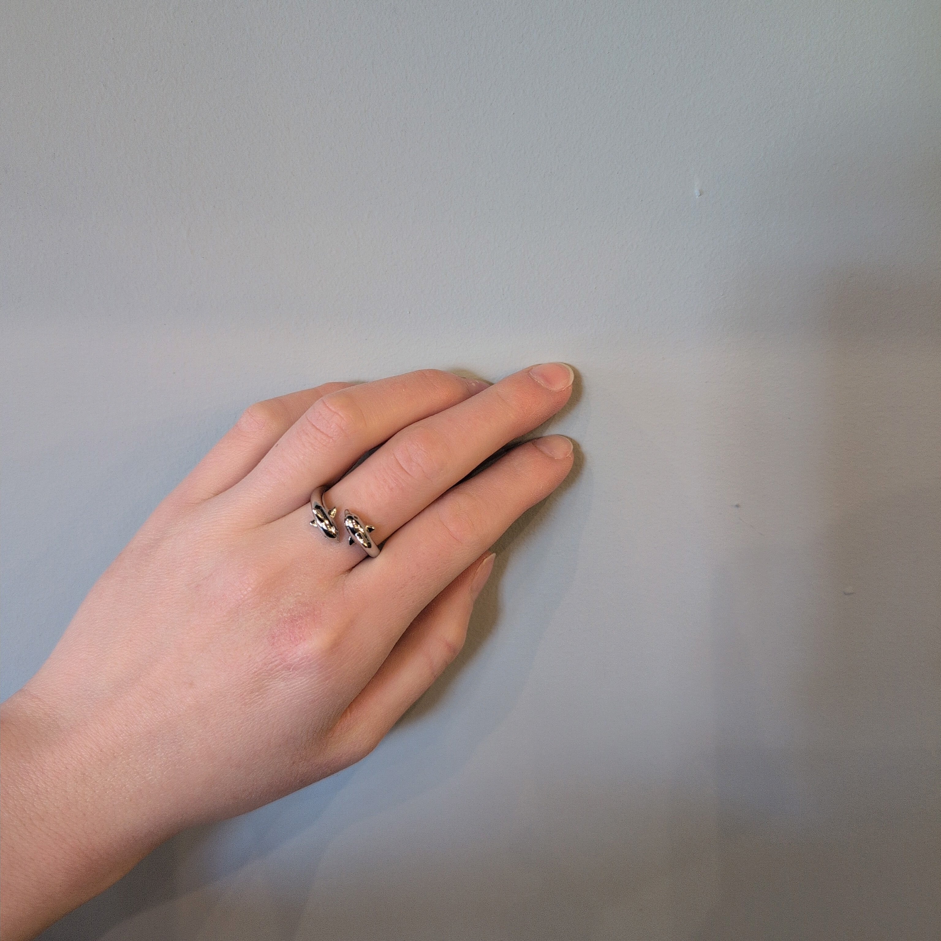 サイズにもよりますが、女性の中指でも余裕のあるサイズ感です